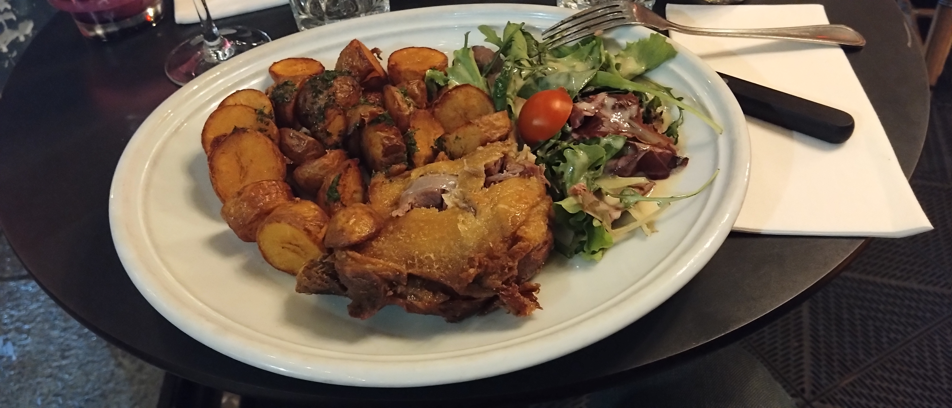 Expérience pour diner après 23 heures : Accueil puis service à la fois aimable et efficace. restaurations de brasserie correcte, en photo un bon confi de canard et ses supers pommes de terre ...