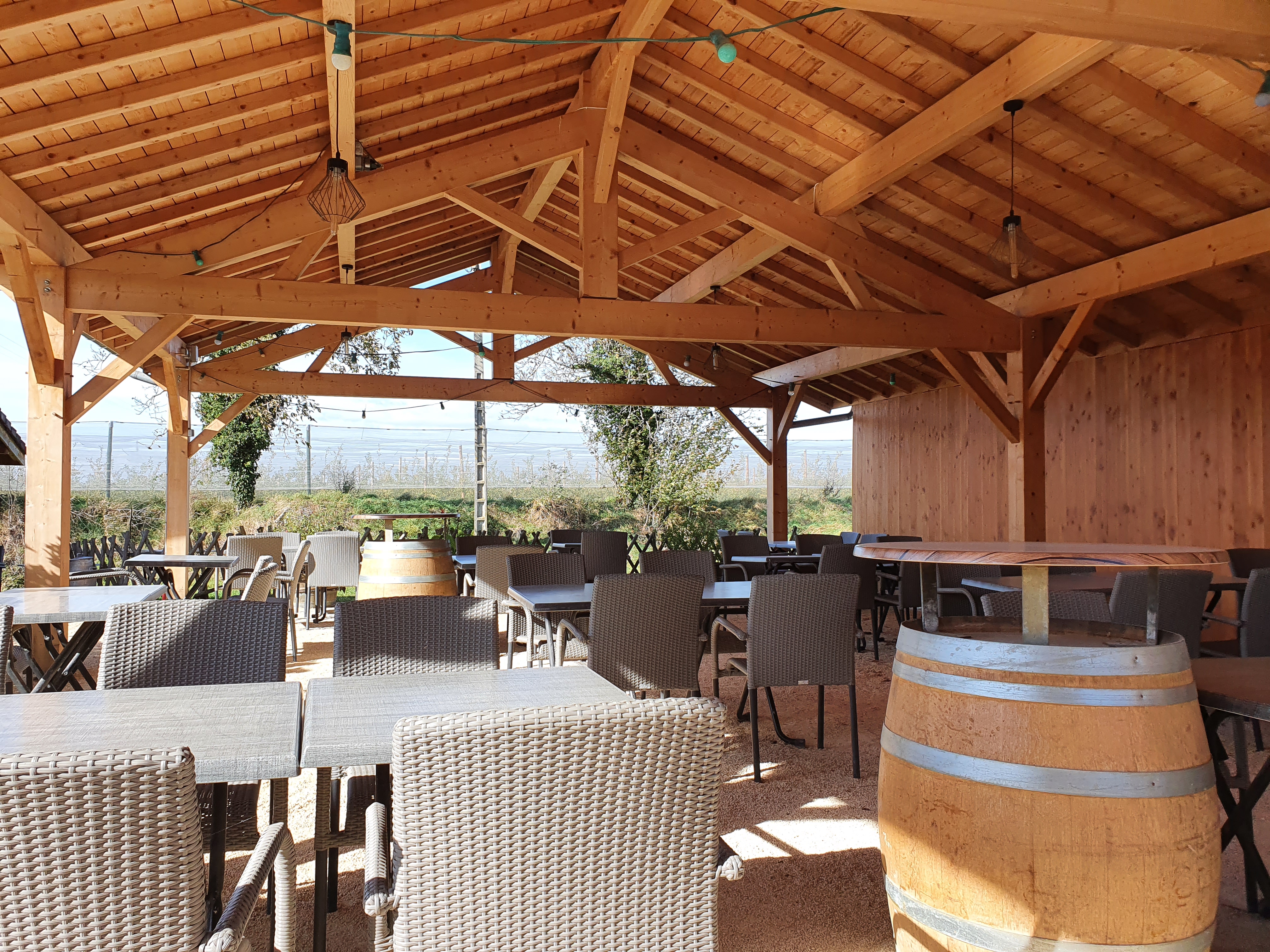 Pour les 100ans du Patriarche: une cuisine saine et locale, une affaire familiale père et fille .une terrasse extérieure couverte sous une magnifique charpente.