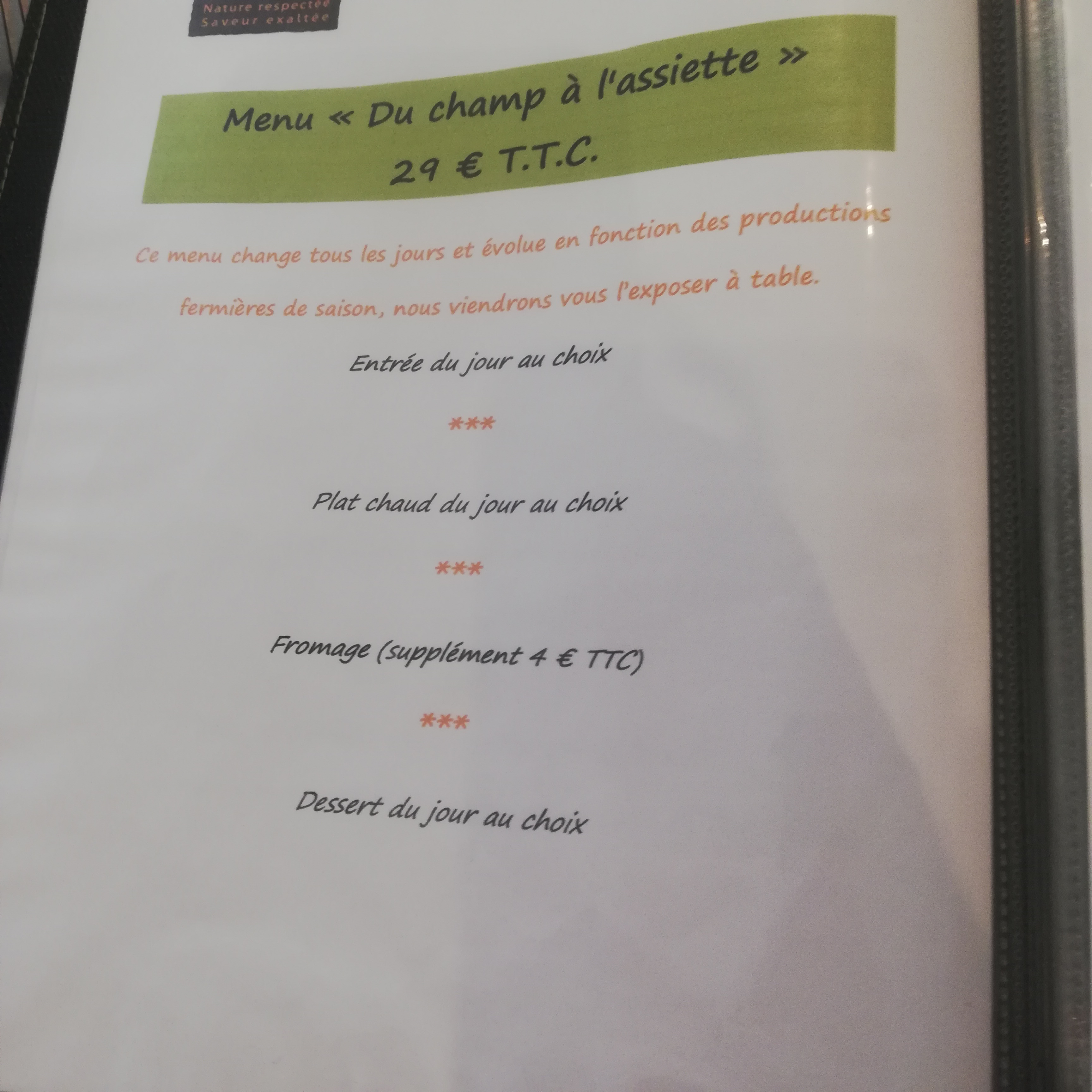 Accueil convivial, Repas excellent, Gros coup de cœur, Avec des produits de qualité et paysan, belle assiette, dans un cadre campagne, produits circuits courts. Je recommande ❤️