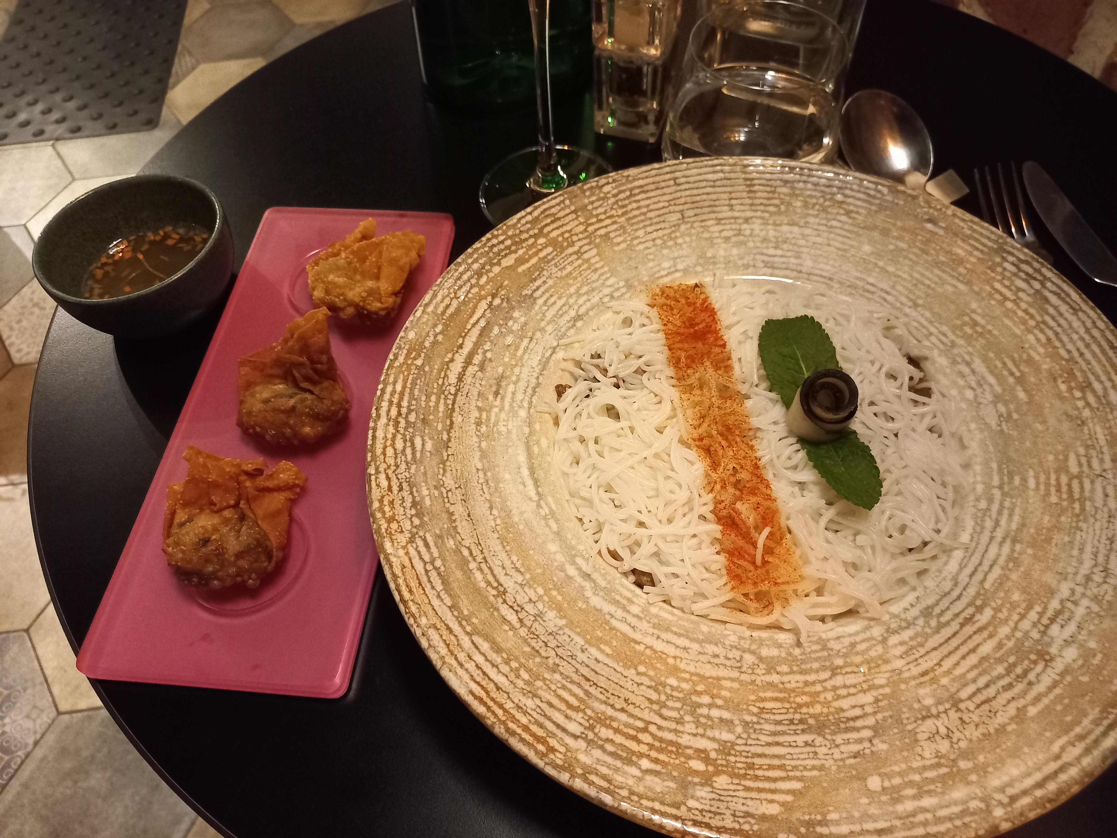 Magnifique lieu et hyper bon! J’ai pris le Carpacio de Boeuf et le Bo Bun