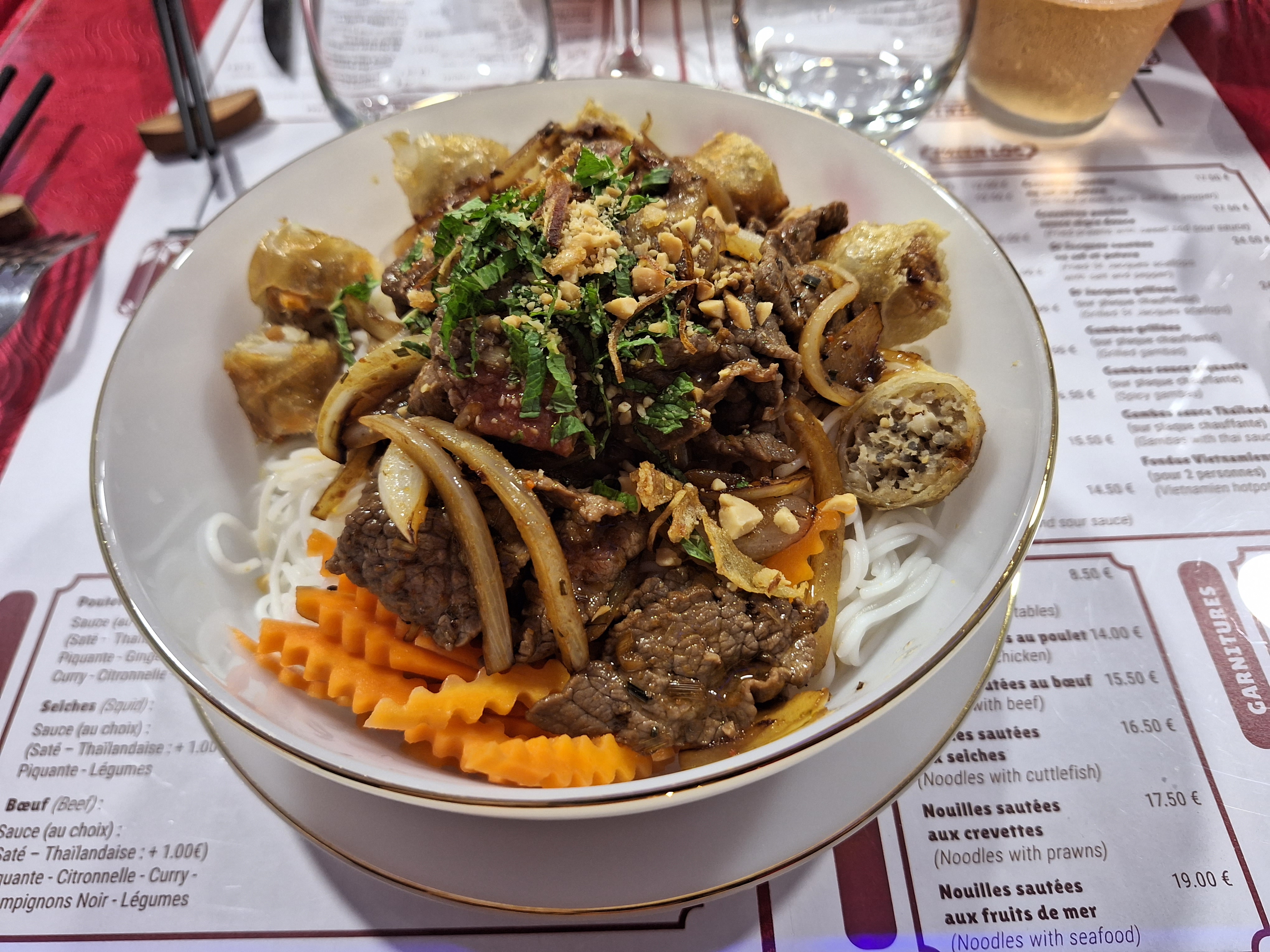 Un tres bon acceuil De bon plats copieux Pas mal de soupes a gouter Petit bemol Le nuoc mam est bon certes mais trop dilue encore,manque de force,de puissance