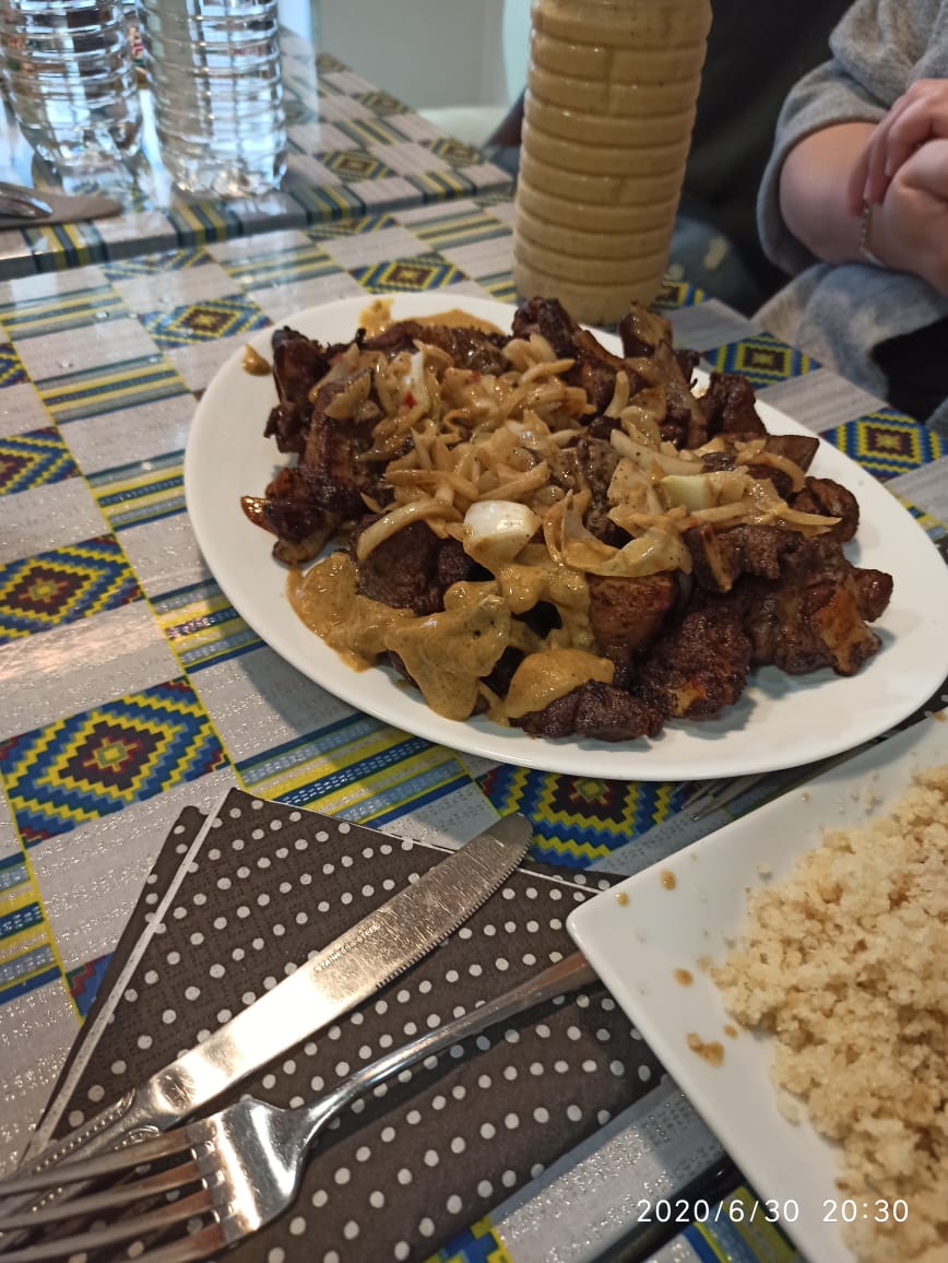 Le Dibi viandes et le mafé sont excellent. Un vrai régal pour les papilles. Petite suggestion, pour le dibi prévoyez un accompagnement soit frites ou salades voir les deux. Ce qui en ferait un plat complet, car avoir uniquement de la viande et des oignons, ça manque un accompagnement principal. J'ai enlevé deux étoile pour la déco et surtout car la serveuse n'est pas très accueillante voir adopte une attitude et un langage un peu trop familié avec la clientèle. Je pense qu'il faut revoir le côté professionnel de l'équipe de service car cela laisse à desirer. Surtout si vous souhaitez elargir votre clientèle. C'est dommage surtout que le restaurant est vraiment délicieux.