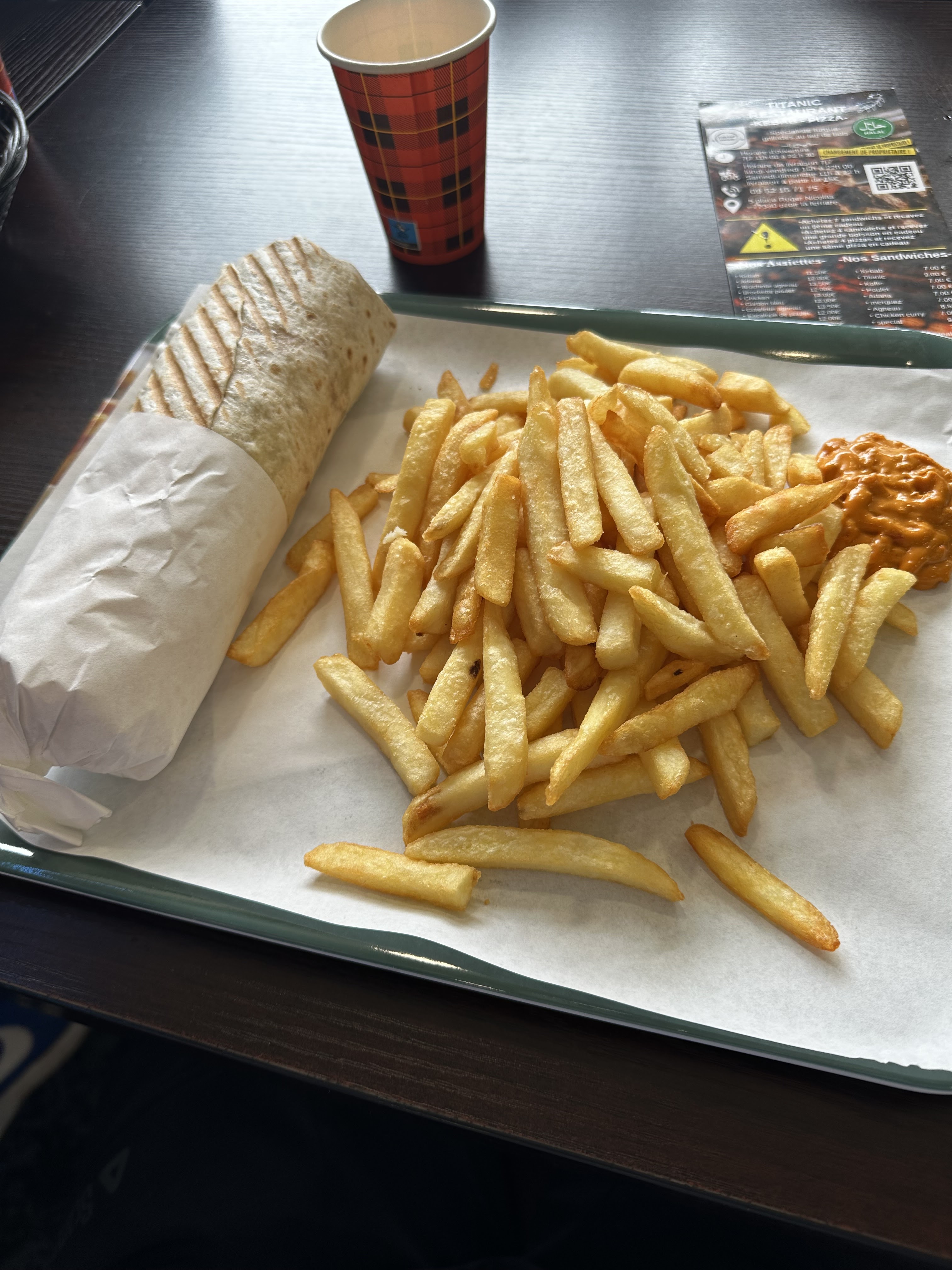 Sincèrement c'est un délice, c'est un restaurant propre; convivial où le client est magnifiquement considéré. Ce qui me marque le plus c'est le sens de l'accueil qui s'y trouve, l'aspect frais des viandes cuisinées ( pas de surgelés ) et la rapidité dans l'exécution de la commande...je vais m'arrêter la je vous laisser aller découvrir et être conquis comme moi. Merci à toute l'équipe Titanic 👌🏽👌🏽