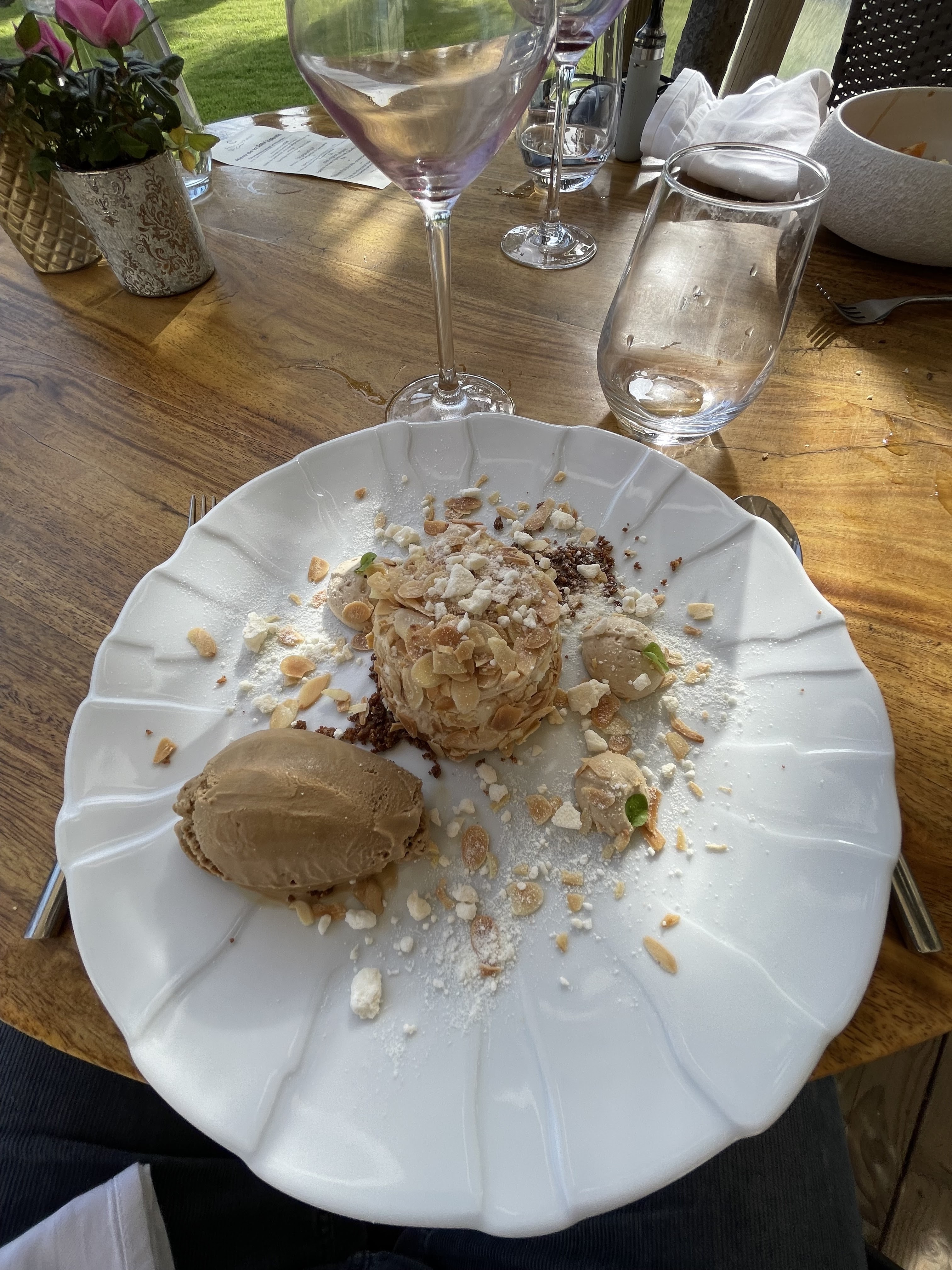 Dans un cadre très agréable en extérieur Repas délicieux et raffiné ce midi Parfait en tout point de vue Une très belle surprise de l accueil..au dessert Merci A très vite