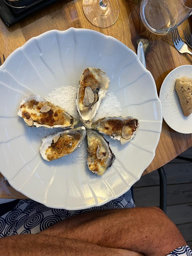 Belle vue depuis le rooftop sur la mer , Permet de prendre l'apéritif en musique Repas dans le jardin très agréable, Les huîtres gratinées excellentes