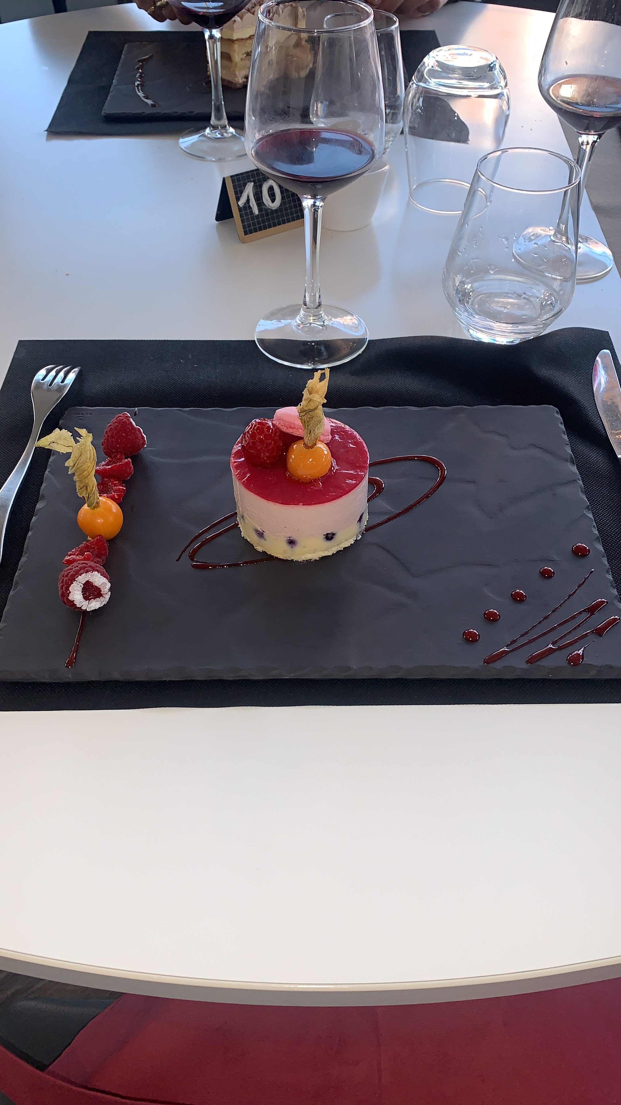 Dommage pour le vin rouge un peu froid. Pour le reste rien à dire. Continuez. Bon courage à toute l équipe. Une première. Nous reviendrons avec plaisir
