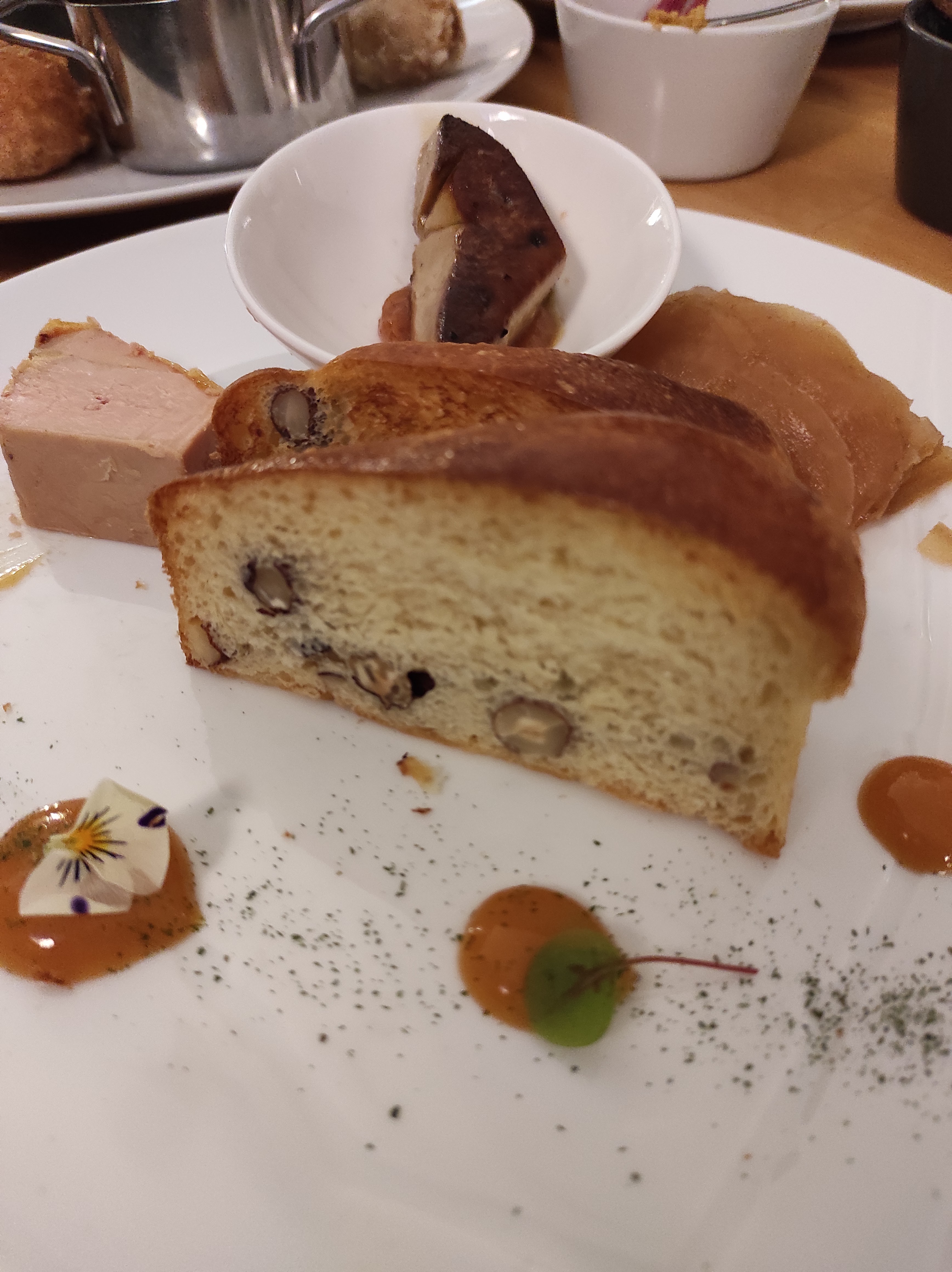Service impeccable, manqué juste de l'eau. Pour le suprême de volaille aux cèpes j'ai trouvé ça dommage de mettre des poivrons ça cassé tout le goût des champignons. Un peu chère 21€ pour un disque de fois gras et 14€ pour deux ravioles. Sinon dans l'ensemble c'était bon.