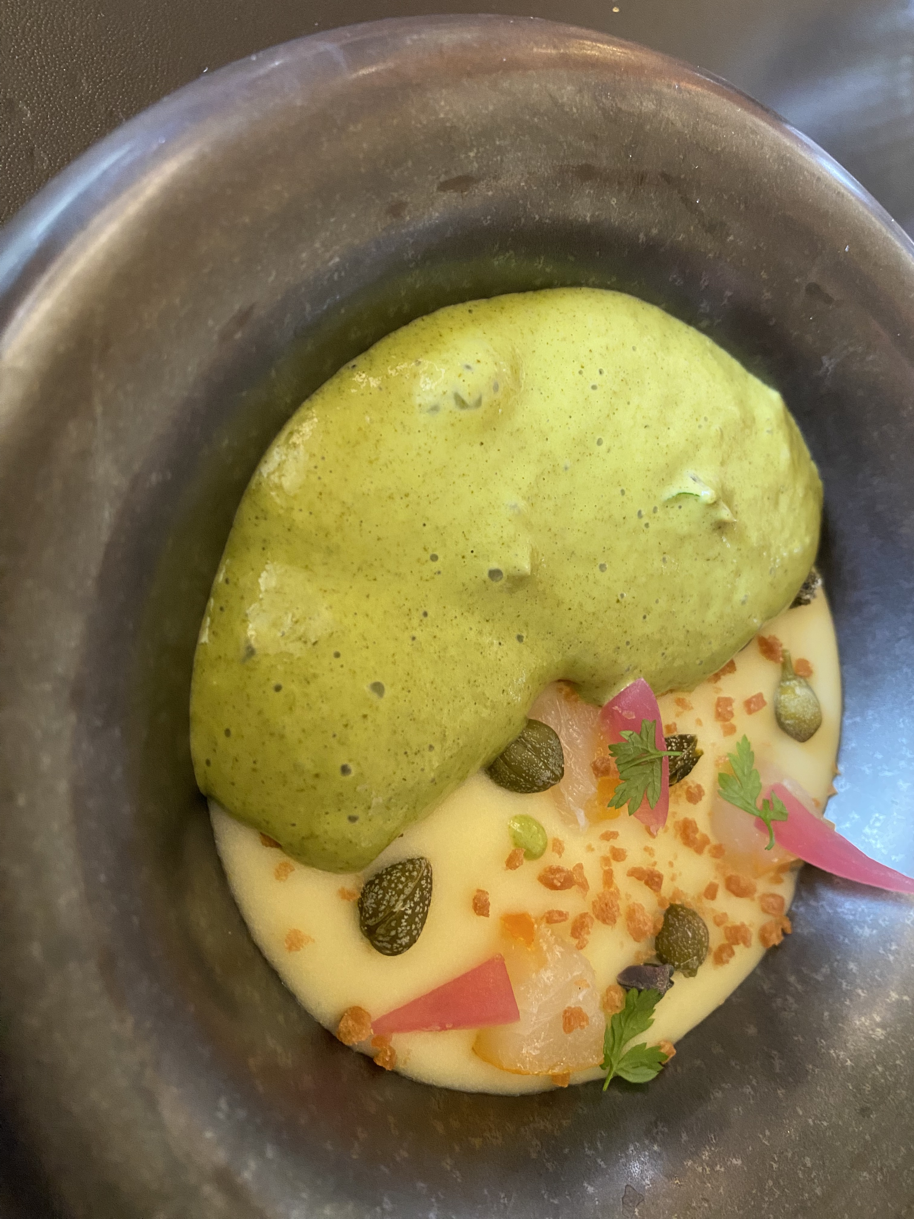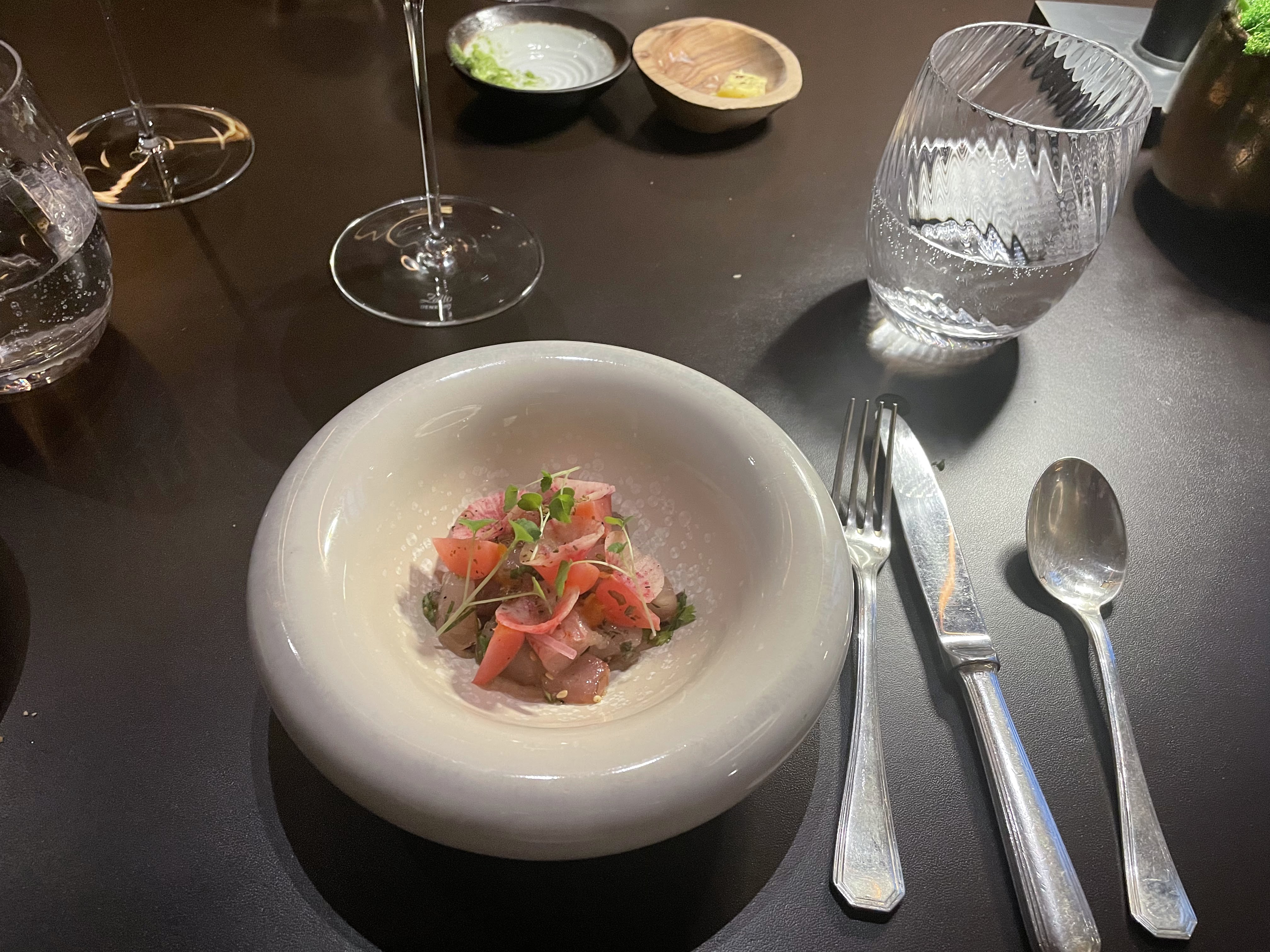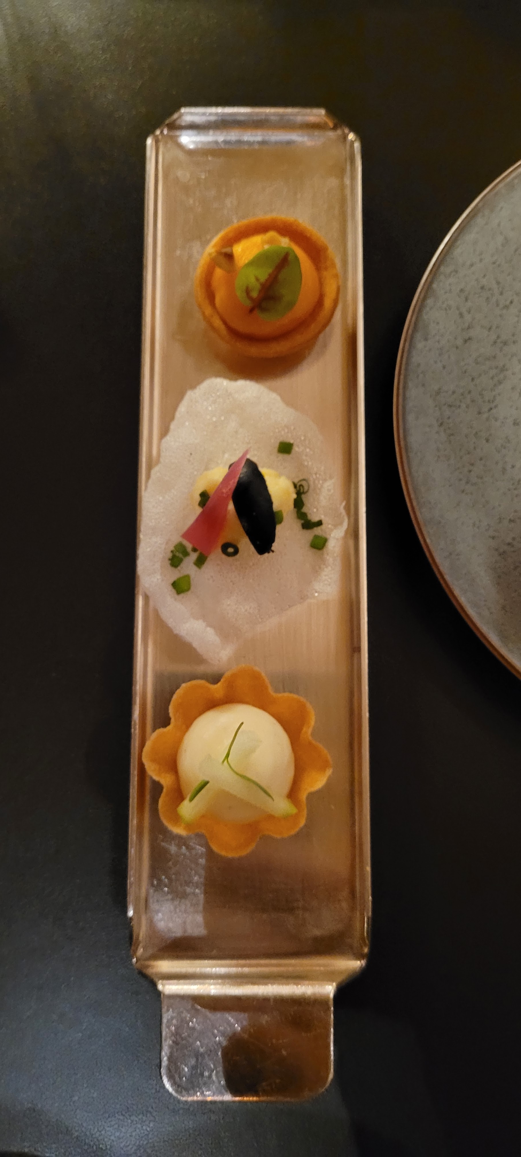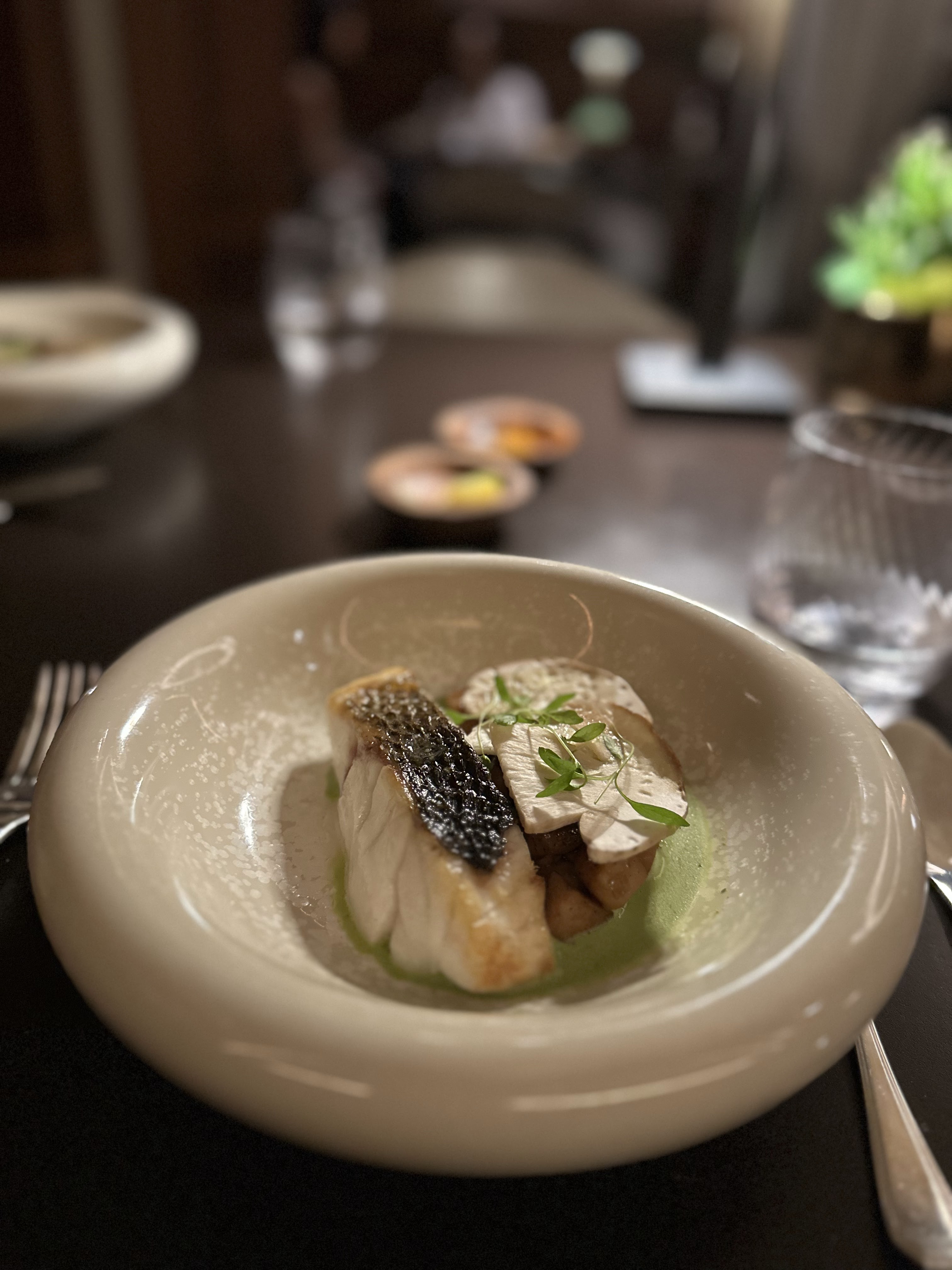 Pourquoi est-il désormais acceptable d'autoriser les bébés qui crient dans les restaurants Michelin ? Quand est-ce arrivé? J'ai de nouveau été justifié que ce n'était pas le cas : j'ai regardé un mari savourer ses assiettes, tandis que sa femme nourrissait la nourriture pour bébé hurlante qu'elle avait apportée dans son sac, touchant à peine sa propre nourriture. Je crois que les compagnies aériennes de Singapour ont des sections spéciales pas de bébé disponibles, pour cette raison exacte. Mais le décor était par ailleurs impressionnant et le service excellent pour mon déjeuner à prix fixe. J'ai particulièrement apprécié la poulpe, confit-rôti et maïs, et rien que pour ça j'y retournerai. / Why is it now acceptable to allow screaming babies in Michelin restaurants? When did it happen? I was again vindicated that this was not the case: I watched a husband enjoy his plates, while his wife fed the screaming baby food she had brought in her bag, barely touching her own food. I believe Singapore airlines have special no babies sections available, for this exact reason. But the decor was otherwise impressive and the service excellent for my prix fixe lunch. I particularly enjoyed the octopus, confit-roast and corn, and for that alone I will go back. 2022 10 08. M1.