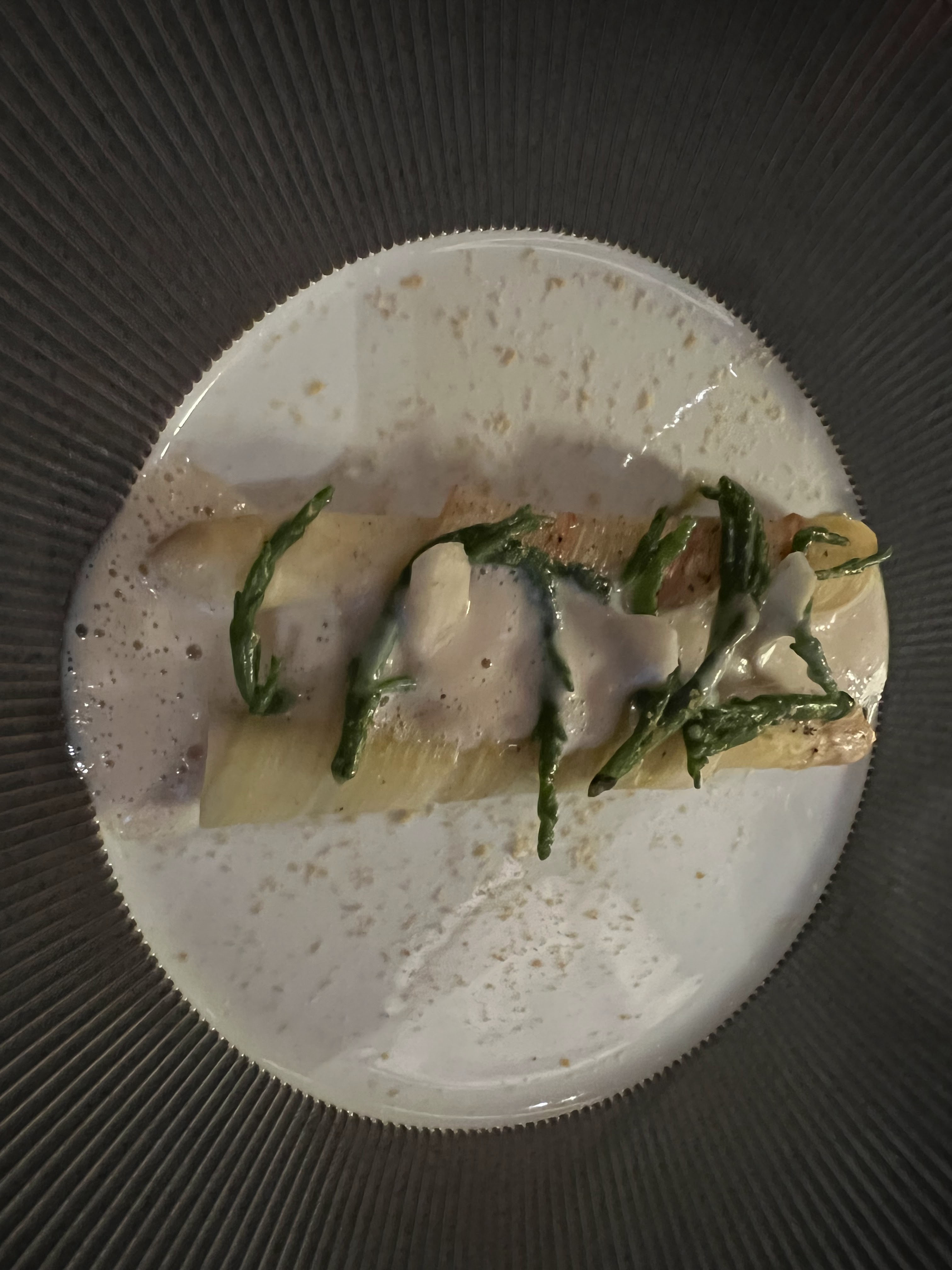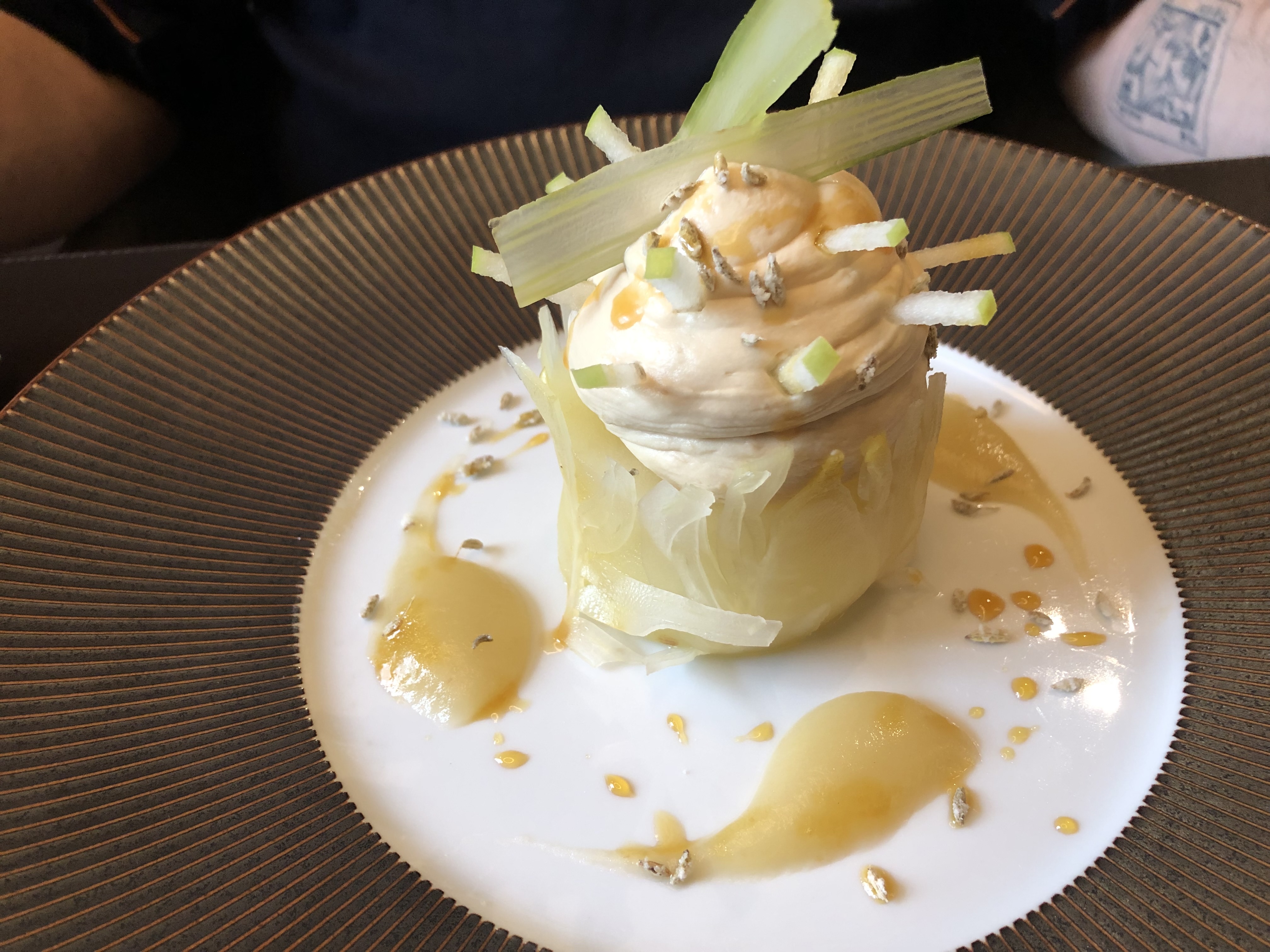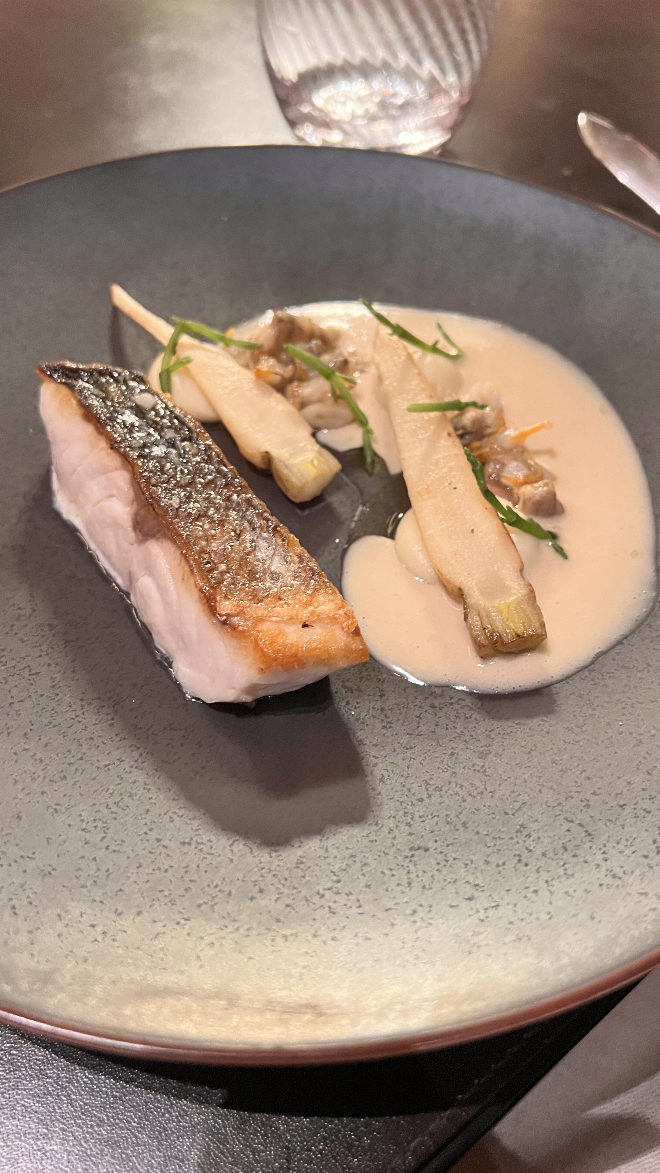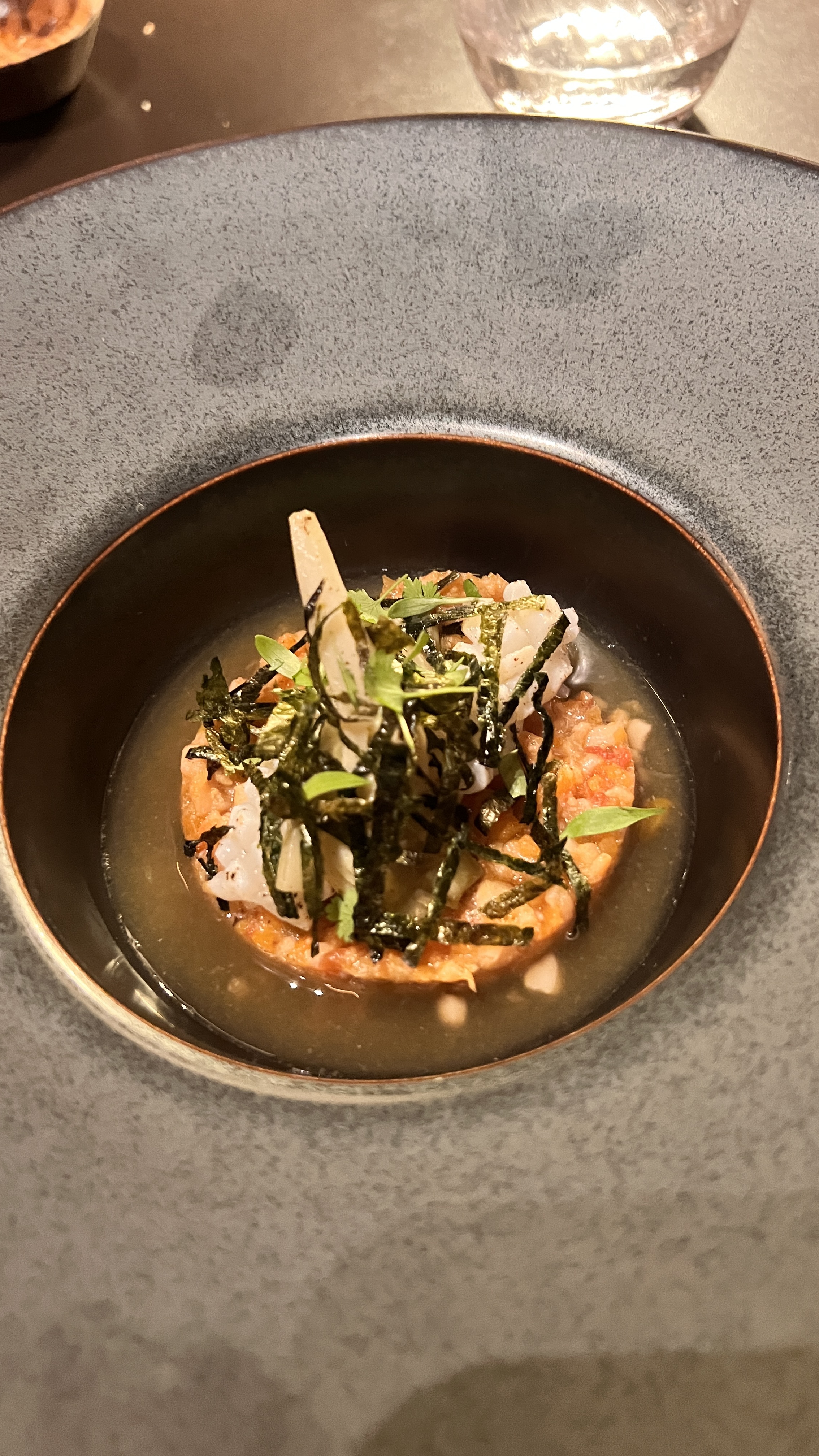 Pourquoi est-il désormais acceptable d'autoriser les bébés qui crient dans les restaurants Michelin ? Quand est-ce arrivé? J'ai de nouveau été justifié que ce n'était pas le cas : j'ai regardé un mari savourer ses assiettes, tandis que sa femme nourrissait la nourriture pour bébé hurlante qu'elle avait apportée dans son sac, touchant à peine sa propre nourriture. Je crois que les compagnies aériennes de Singapour ont des sections spéciales pas de bébé disponibles, pour cette raison exacte. Mais le décor était par ailleurs impressionnant et le service excellent pour mon déjeuner à prix fixe. J'ai particulièrement apprécié la poulpe, confit-rôti et maïs, et rien que pour ça j'y retournerai. / Why is it now acceptable to allow screaming babies in Michelin restaurants? When did it happen? I was again vindicated that this was not the case: I watched a husband enjoy his plates, while his wife fed the screaming baby food she had brought in her bag, barely touching her own food. I believe Singapore airlines have special no babies sections available, for this exact reason. But the decor was otherwise impressive and the service excellent for my prix fixe lunch. I particularly enjoyed the octopus, confit-roast and corn, and for that alone I will go back. 2022 10 08. M1.