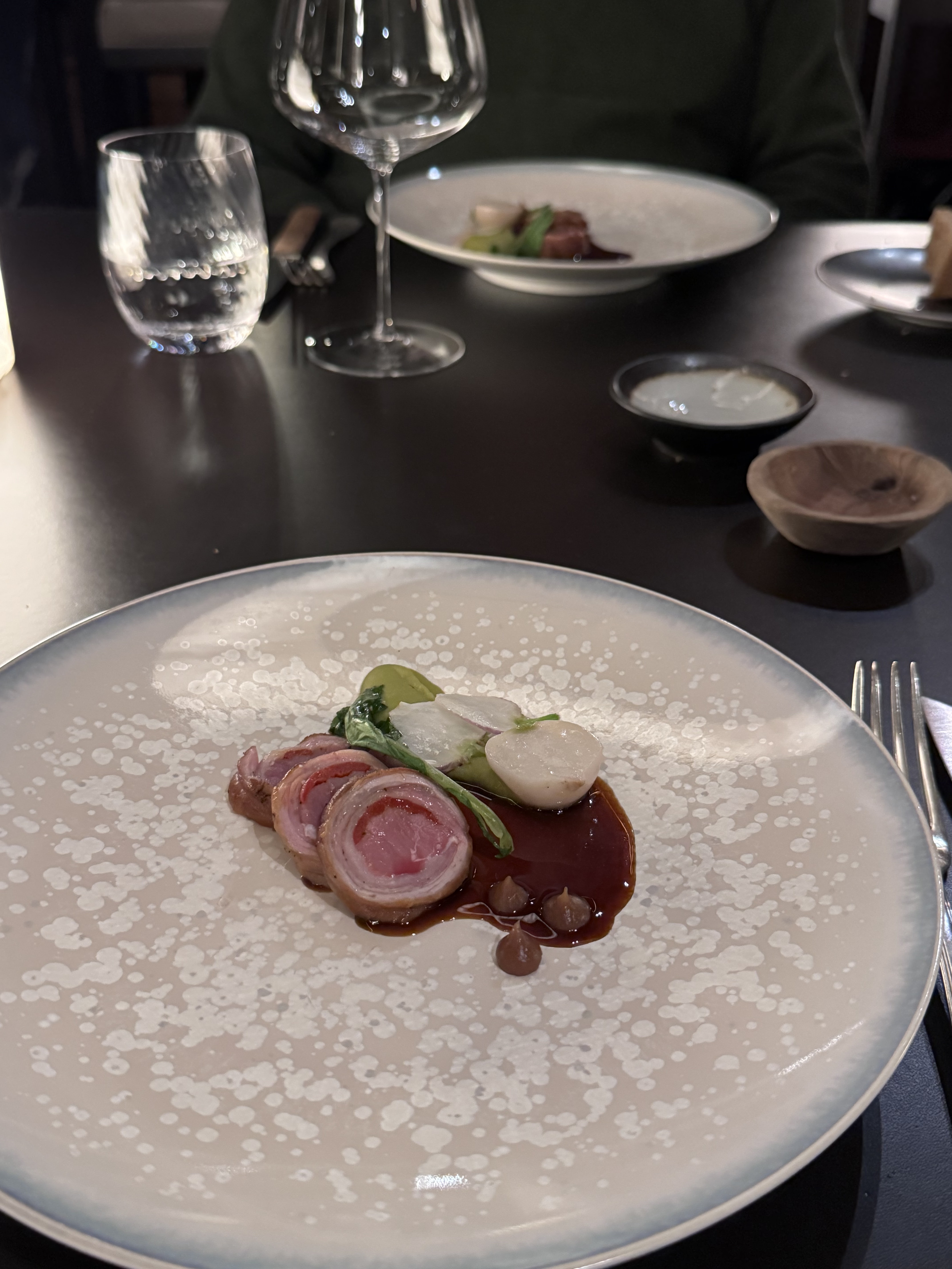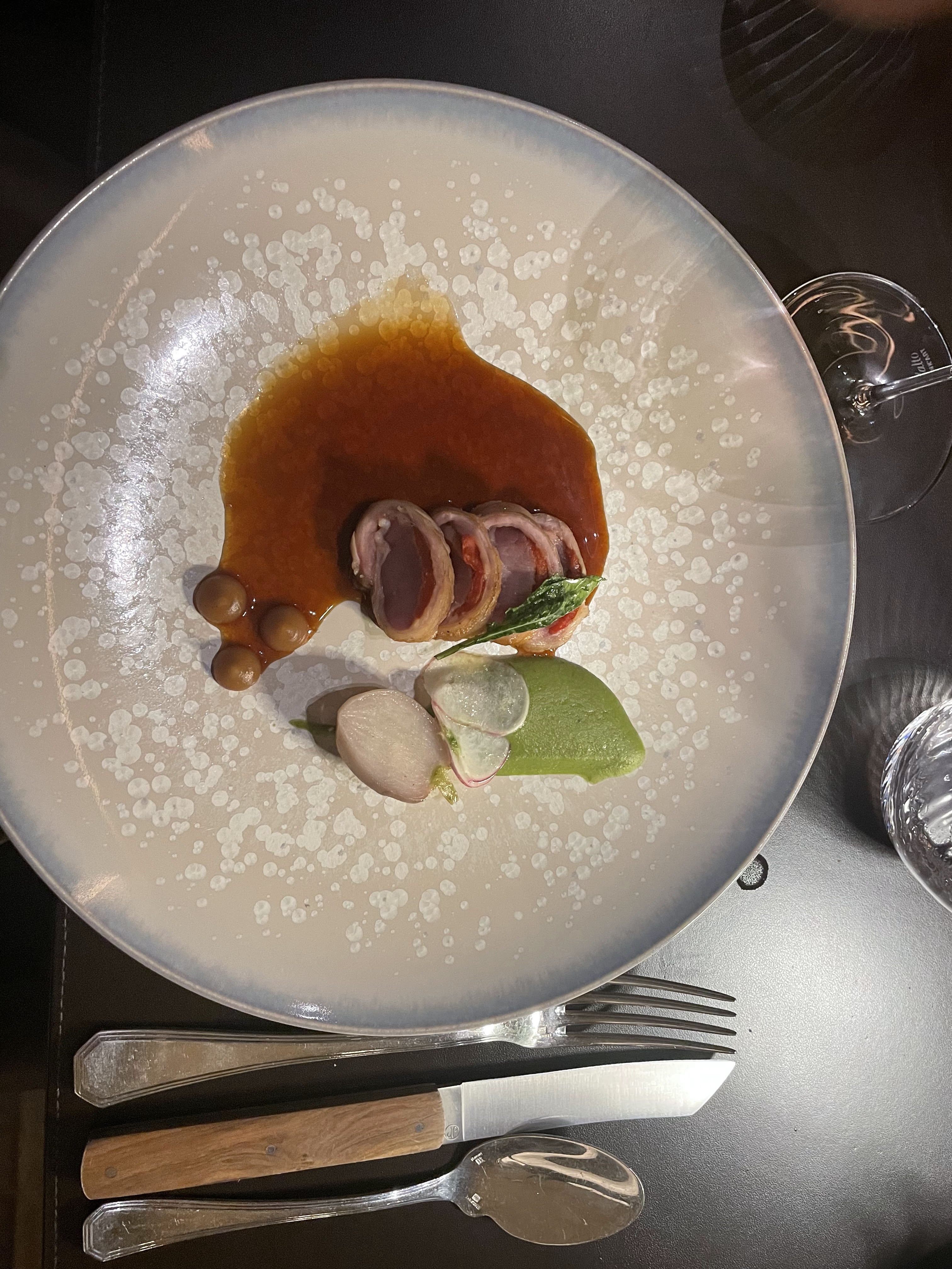 Le service ne valait pas un restaurant 1 étoile. Nous avons dû vider nos vins et nous arroser nous-mêmes, et lorsque nous leur avons posé des questions sur la cuisson de notre pigeon, nous avons reçu une réponse légèrement arrogante. De plus, le plat principal était plus froid que chaud. Je connais beaucoup de restaurants qui n'ont pas d'étoile Michelen et qui sont bien meilleurs ! J'avais hâte de découvrir cet endroit mais ce fut plutôt une déception !