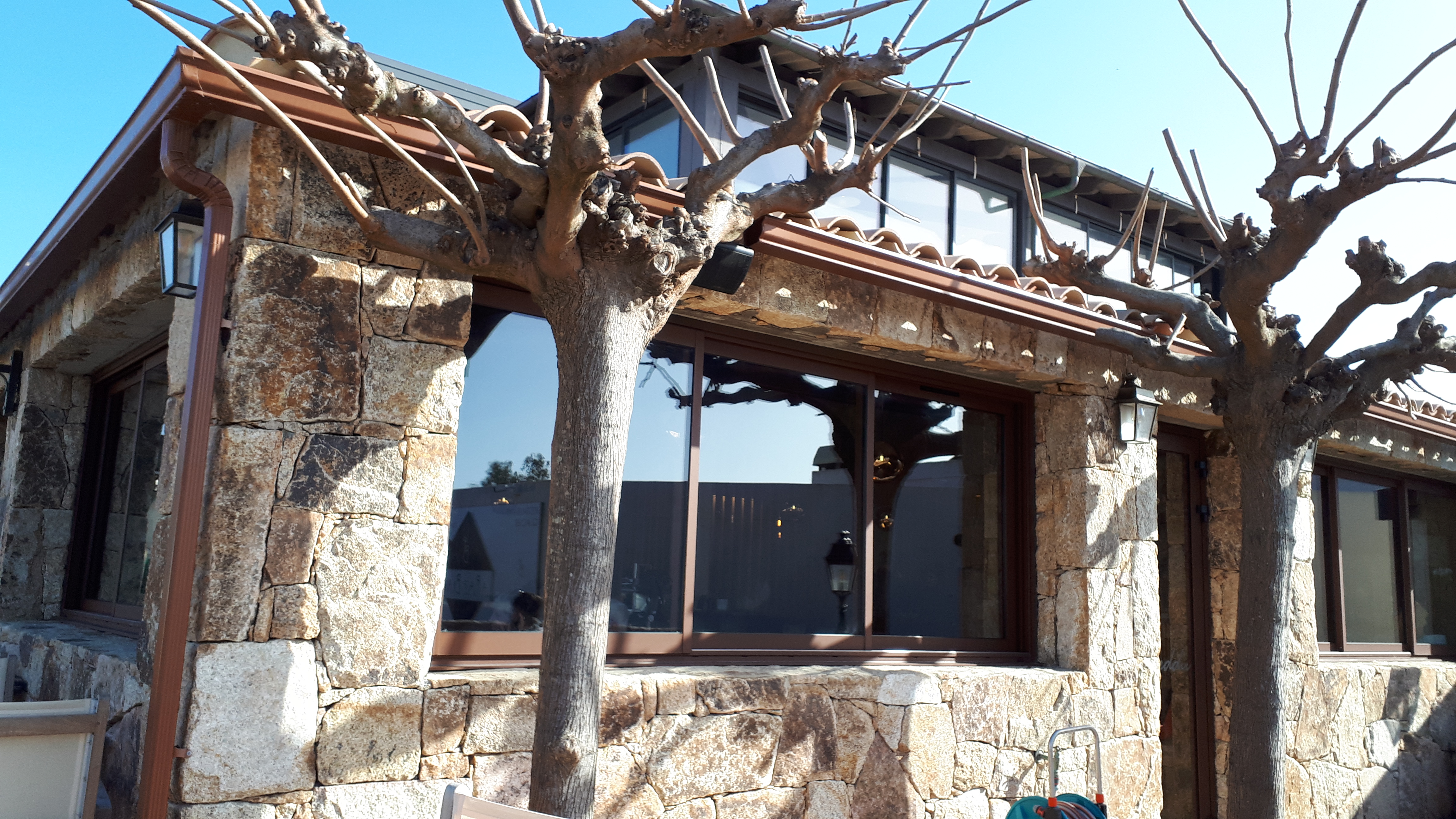 Bon petit resto à l'ombre des mûriers et protégé du vent.