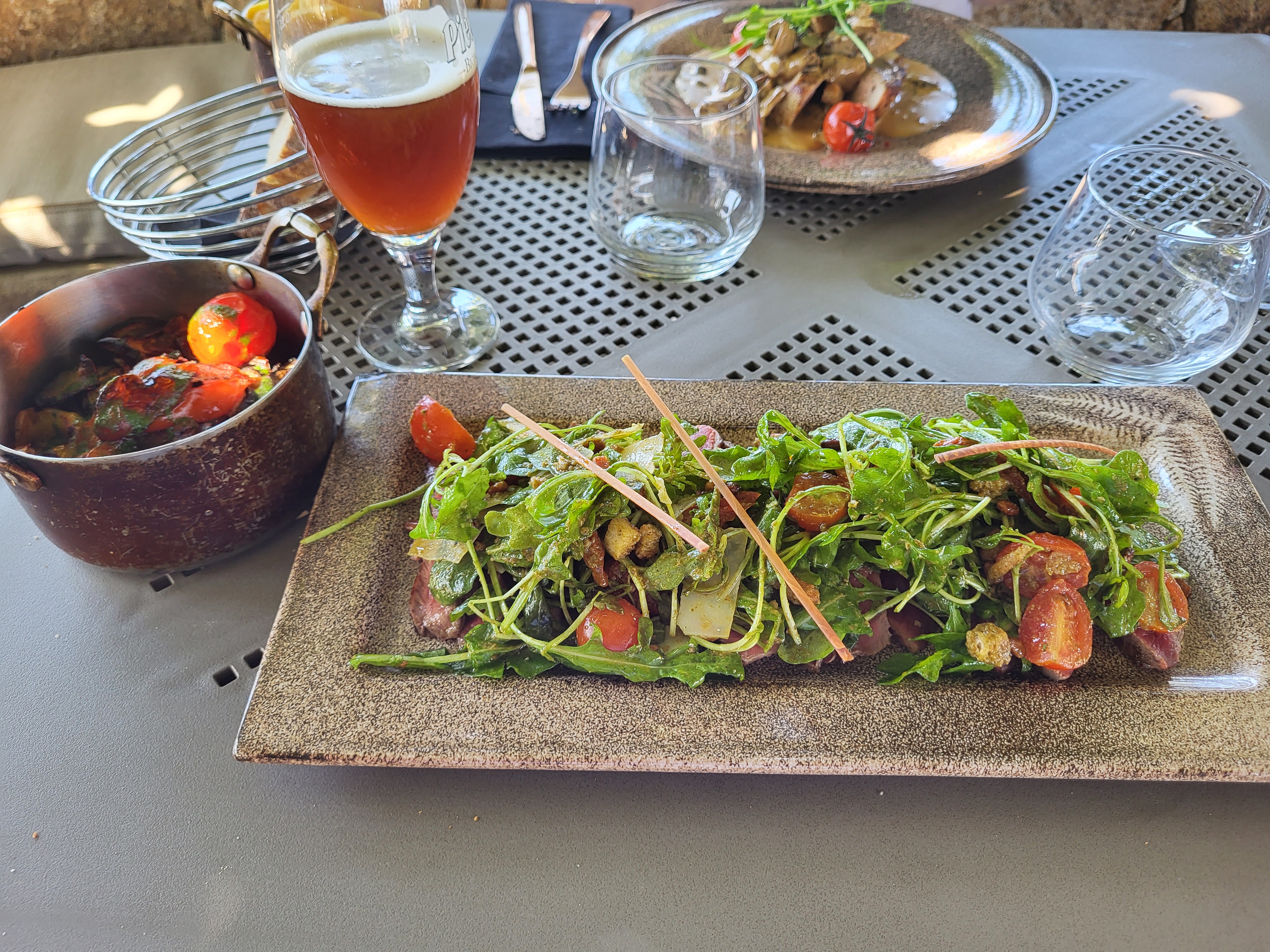 Cadre sympa, assiette copieuse. Planche de charcuterie bonne mais tout de même 19€. Salade copieuse mais manque d’assaisonnement. Pokeball passable. Assez cher pour le goût en bouche.