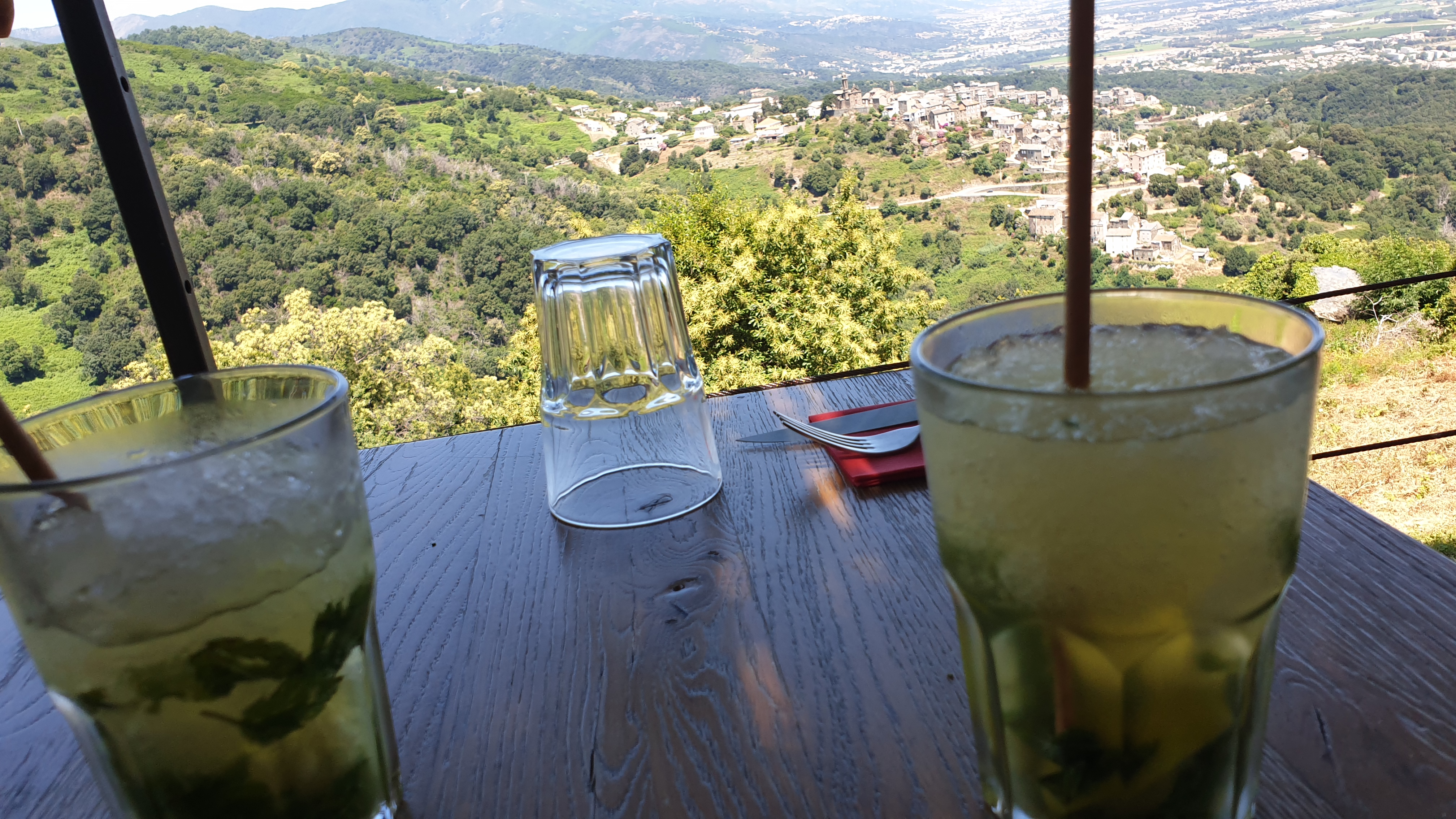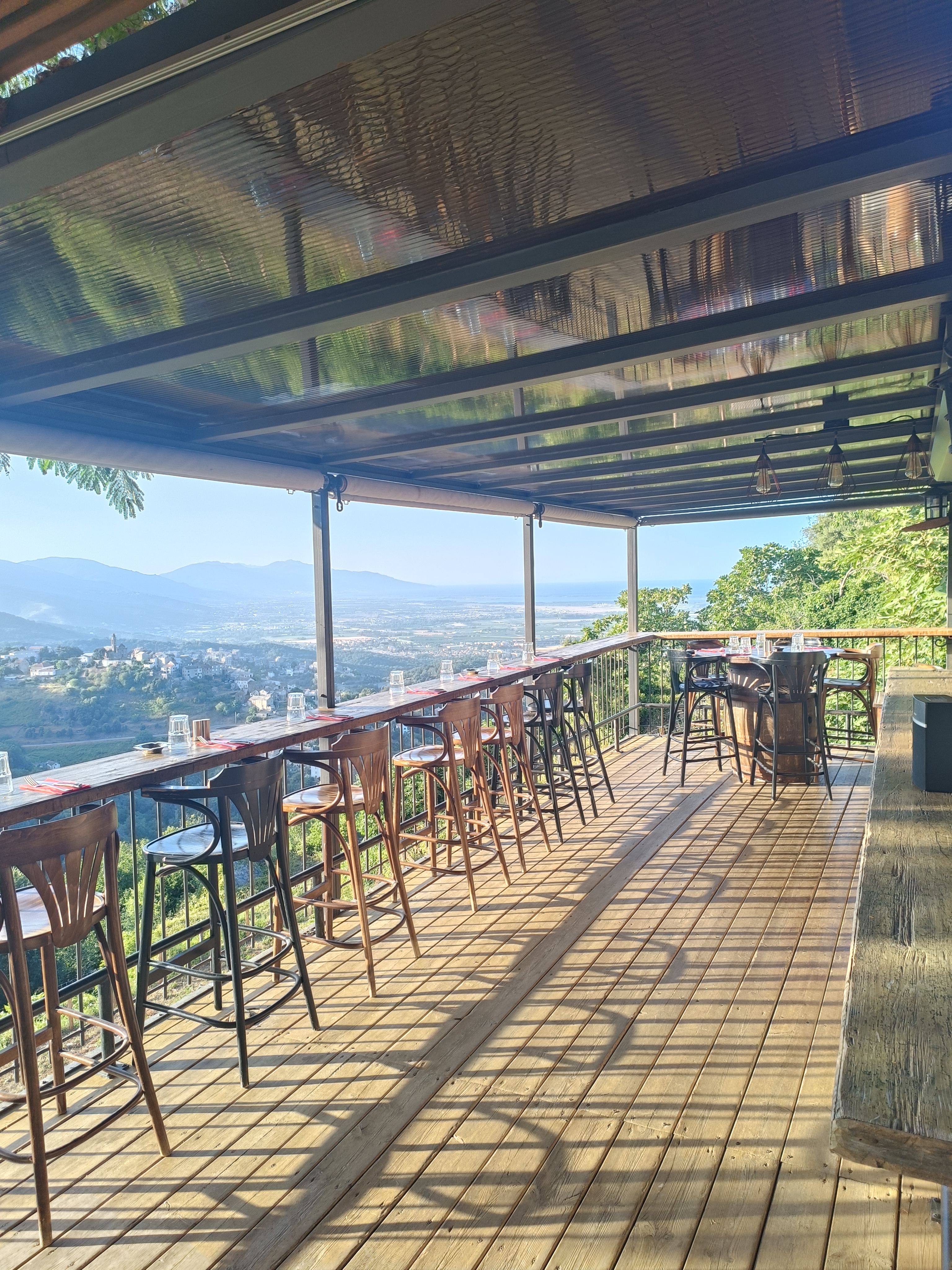 Petit apero avec vue imprenable sur un paysage contrasté entre montagne et mer. Au contact de la nature ce petit restaurant atypique et charmant est idéal lors d une étape dans le village de penta-di-Casinca. Je conseil le cocktail cap Corse pour les palais sucrée. Et pour que la vue soit imprenable n oubliez pas de vérifier la météo, que le ciel soit claire!