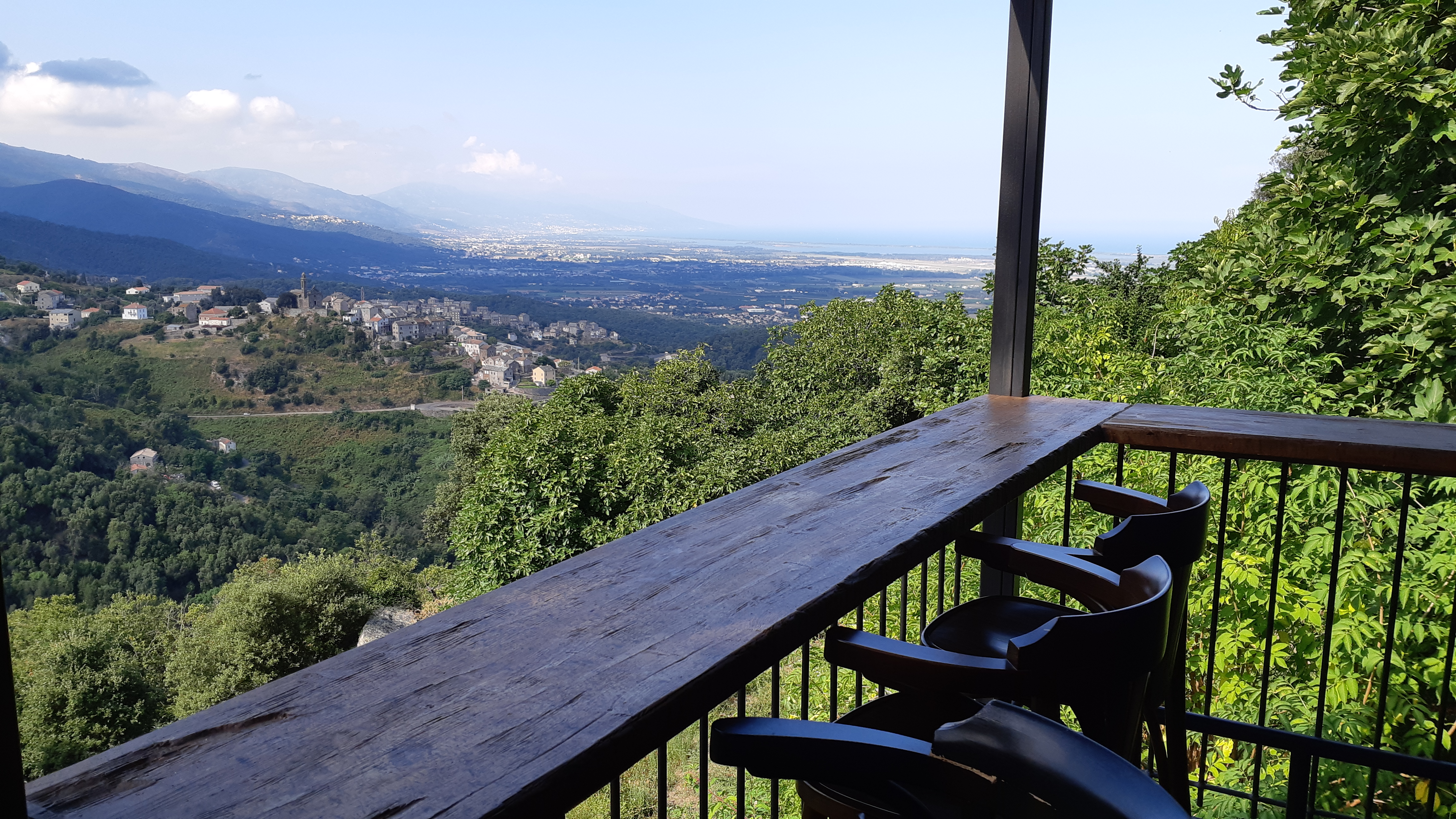 La vue est magnifique, la terrine de figatellu est excellente comme d’habitude, en revanche le service laisse à désirer. nous avons commandé une bière en apéritif ainsi que 3 cafés après le repas on les attends encore... Nous avons commandé 2 boissons pour les enfants et 2 bouteilles de vin, il a fallu attendre la fin des entées et l’opportunité d’interpeler une serveuse pour espérer boire, serveuse occupé à discuter, alors félicitations pour sa réussite au bac et son entrée à la faculté de Corte etc… Alors je me pose la question, faut-il être Corse pour être servis normalement, manque de chance pour nous, nous sommes Alsacien. Et pour finir 2 entrecôtes saignantes commandées, la mienne 2 fois plus petite que mon voisin et trop cuite, mauvaise transmission de commande nous ne le saurons jamais. Pour conclure nous sommes venus de nombreuses fois ces dernières années et ce sera la dernière, un ami Corse de Sorbo-Ocagnano m’avais mis en garde il avait raison !