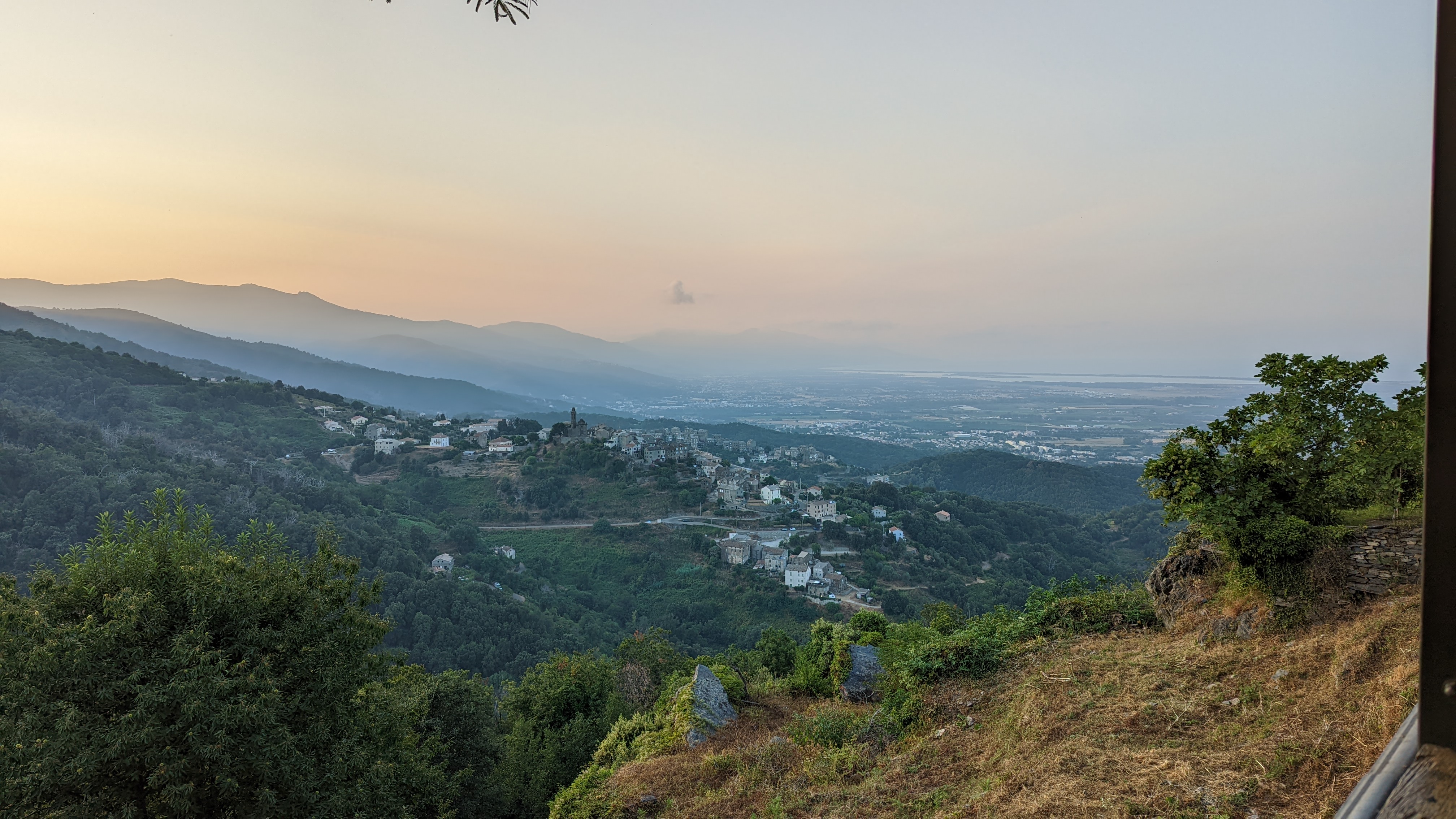 Excellente adresse, magnifique terrasse qui offre un très beau spectacle au coucher du soleil, une carte courte comme on les aime, de très bons plats locaux et généreux, un très bel accueil. Nous avons passé un excellent moment. La terrine au figatelu et le moelleux à la châtaigne n'y sont pas pour rien !