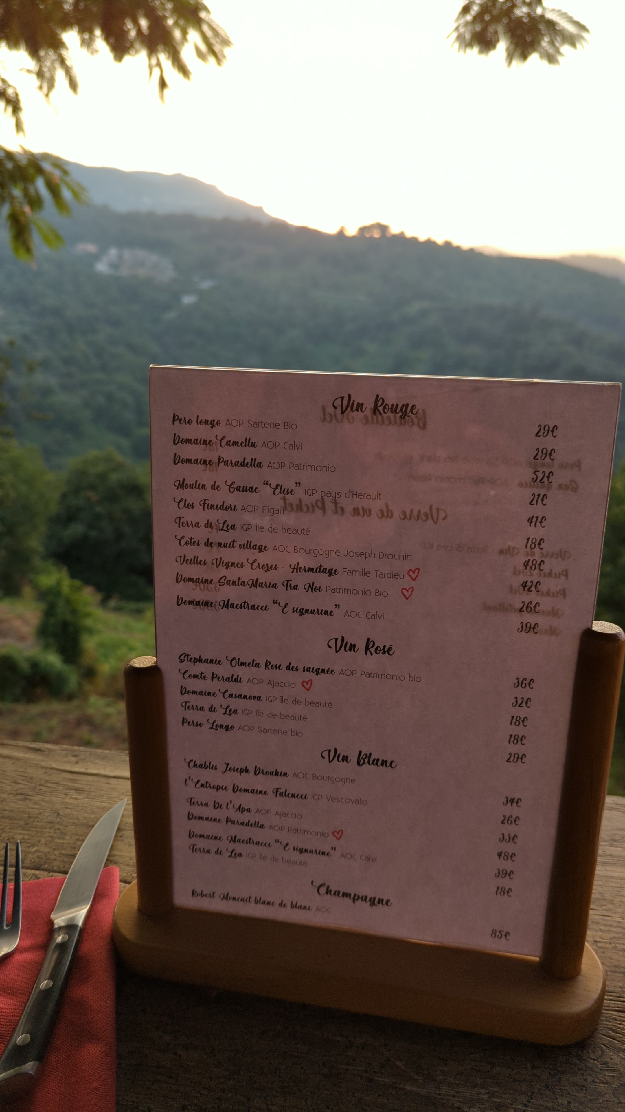 Simple et romantique combiné avec une bonne cuisine locale. Je recommande le filet de porc et les frites ! Le Negroni corse est également très bon !
