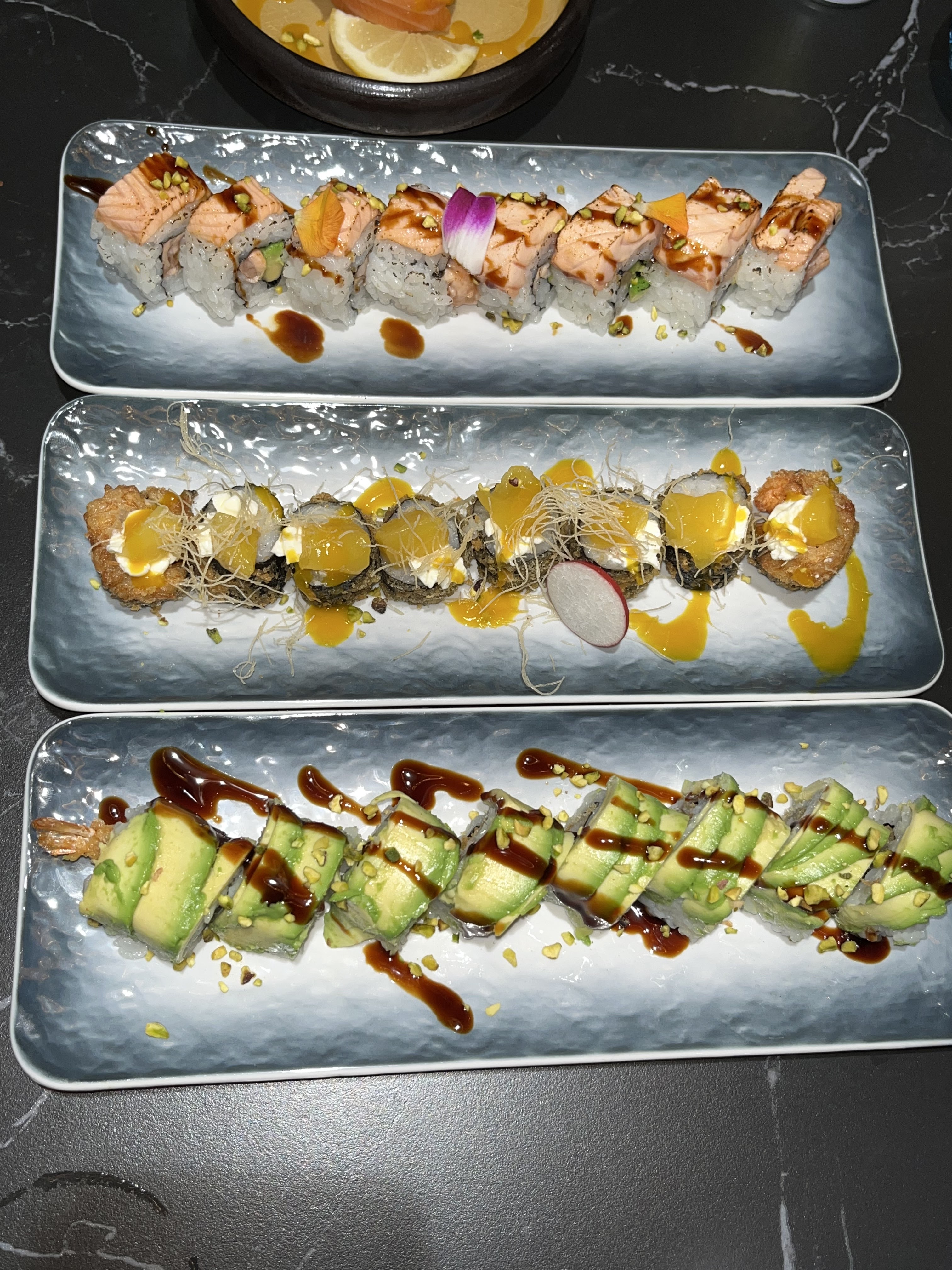Le restaurant propose beaucoup de choix dans le menu à volonté. Le saumon et l'avocat sont frais (entre autres). Je recommande les Las Vegas, Un vrai délice. Le personnel est agréable et le service est rapide. Nous y retournons souvent.