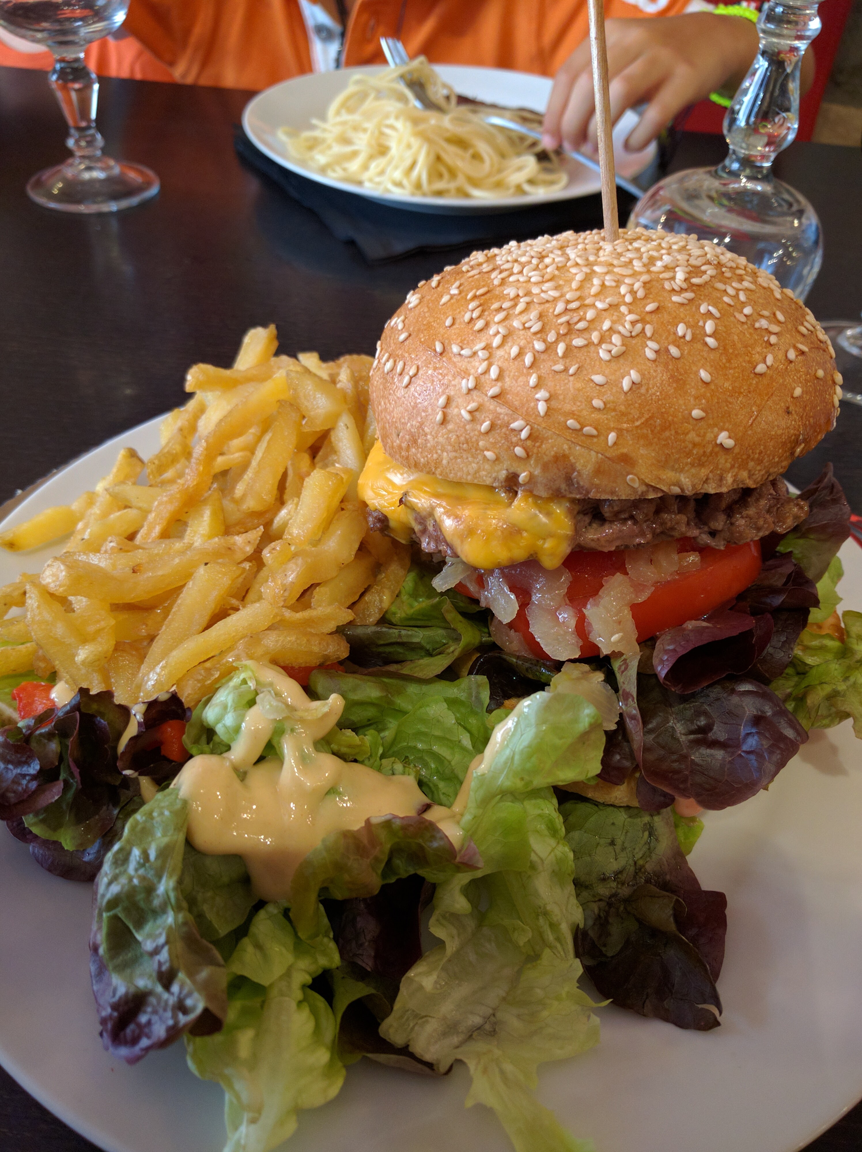 Restaurant à fuir à tout prix !! J’ai commandé un hamburger et ce fut une horreur, impossible de le découper ou de croquer dedans ! (tomates épaisses, salade à gogo, un gratin de fromage emmental râpé et fromage à hamburger même pas fondu . Et le steak grillé au dessus bouilli en-dessous… Quand au service il y en avait pas ! Ce restaurant est juste un attrape touriste pour faire du frique !