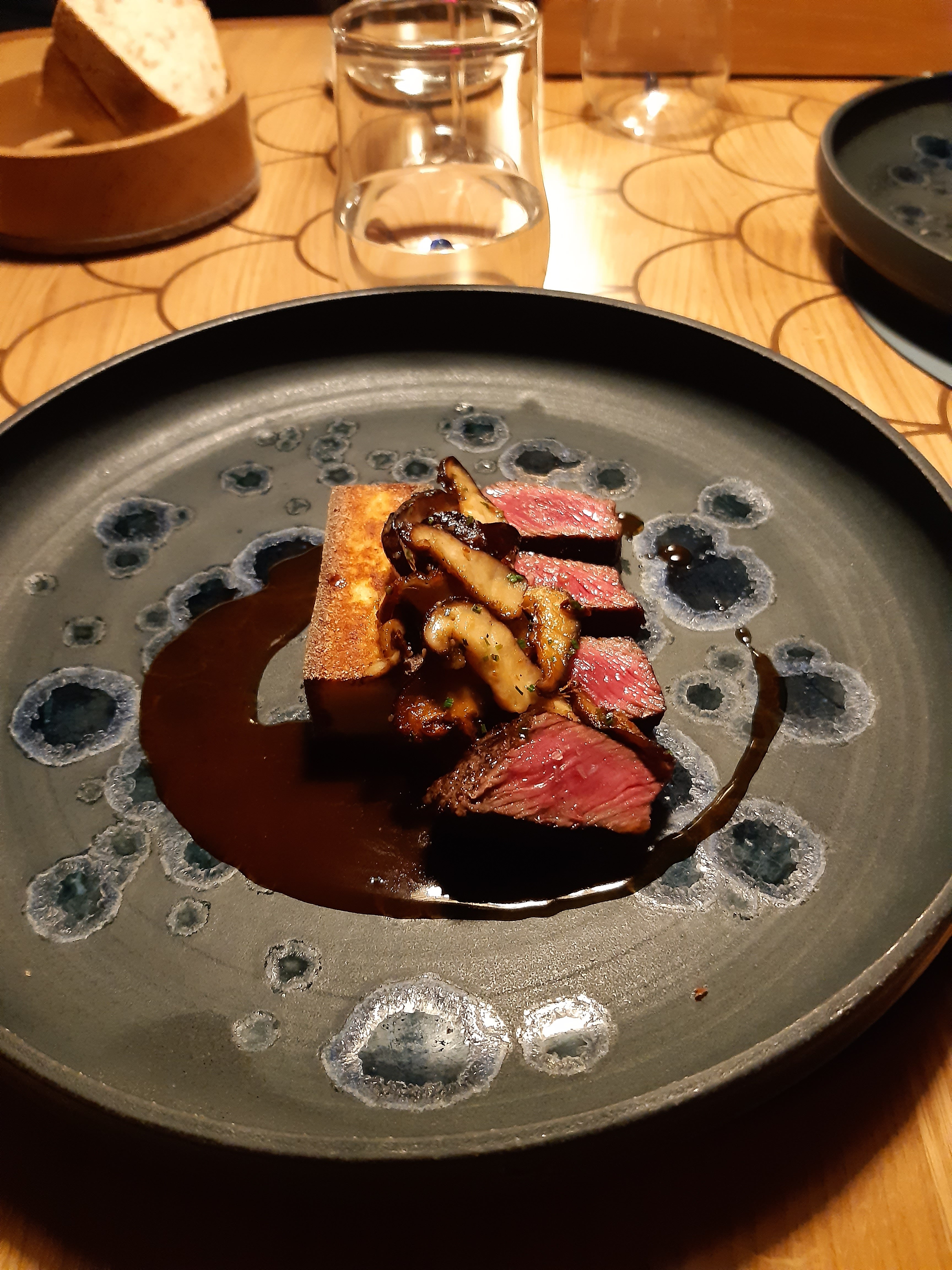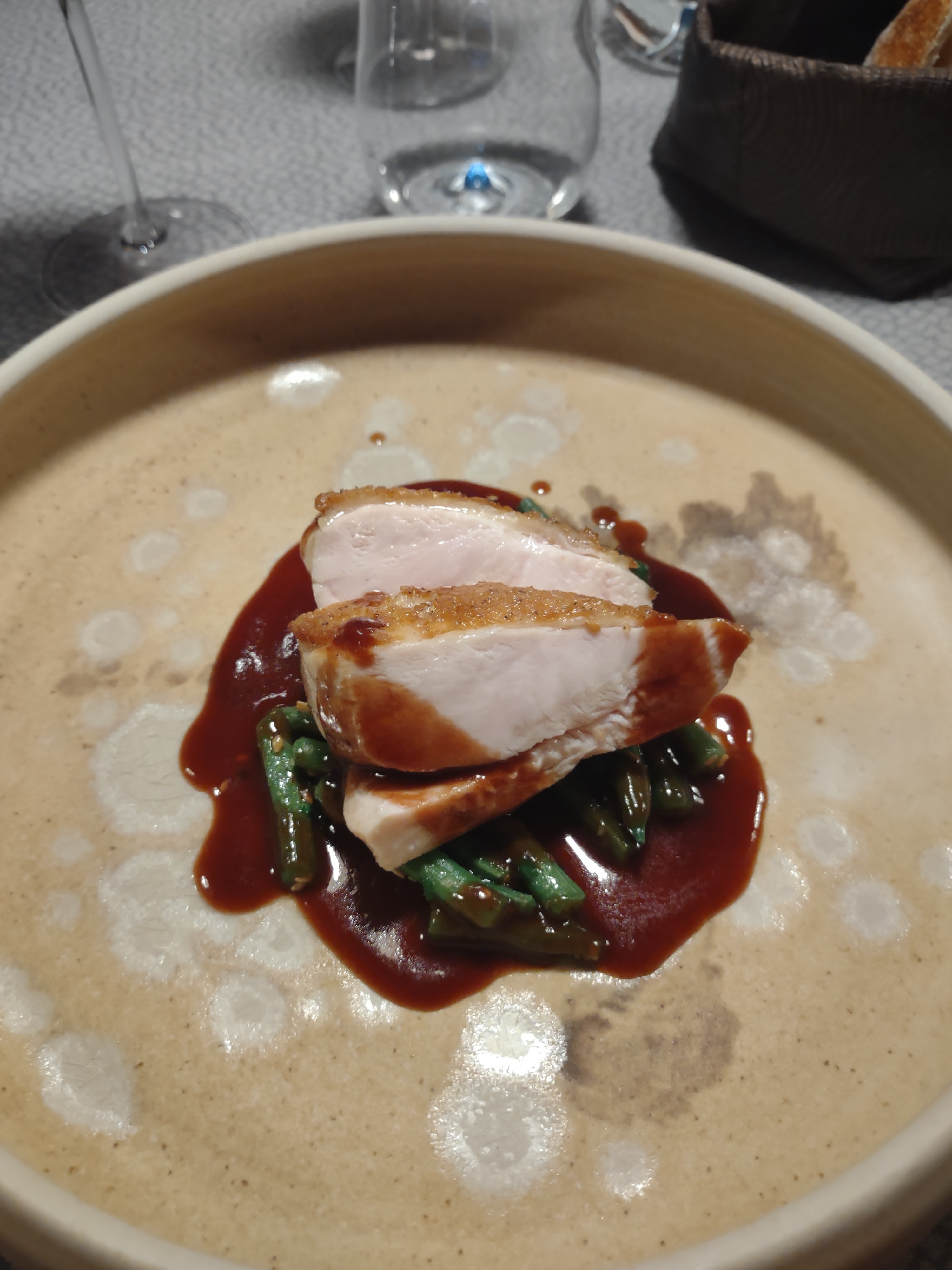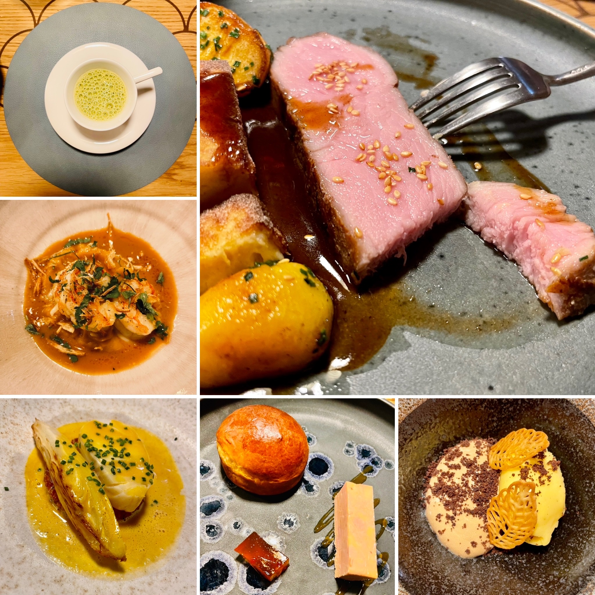 Une cuisine délicieuse. Des assiettes très bien présentées. Un service efficace. Un menu imposé en 5 plats (pas possible de choisir à la carte). Des tables trop proches les unes des autres surtout côté banquette. Dans la plupart des restaurants étoilés il y a le ballet des serveurs : une personne en charge de l’accueil, une autre en charge du vin, etc… cela amène un certain charme qu’on ne retrouve pas ici puisqu’il n’y a qu’une seule personne au service.