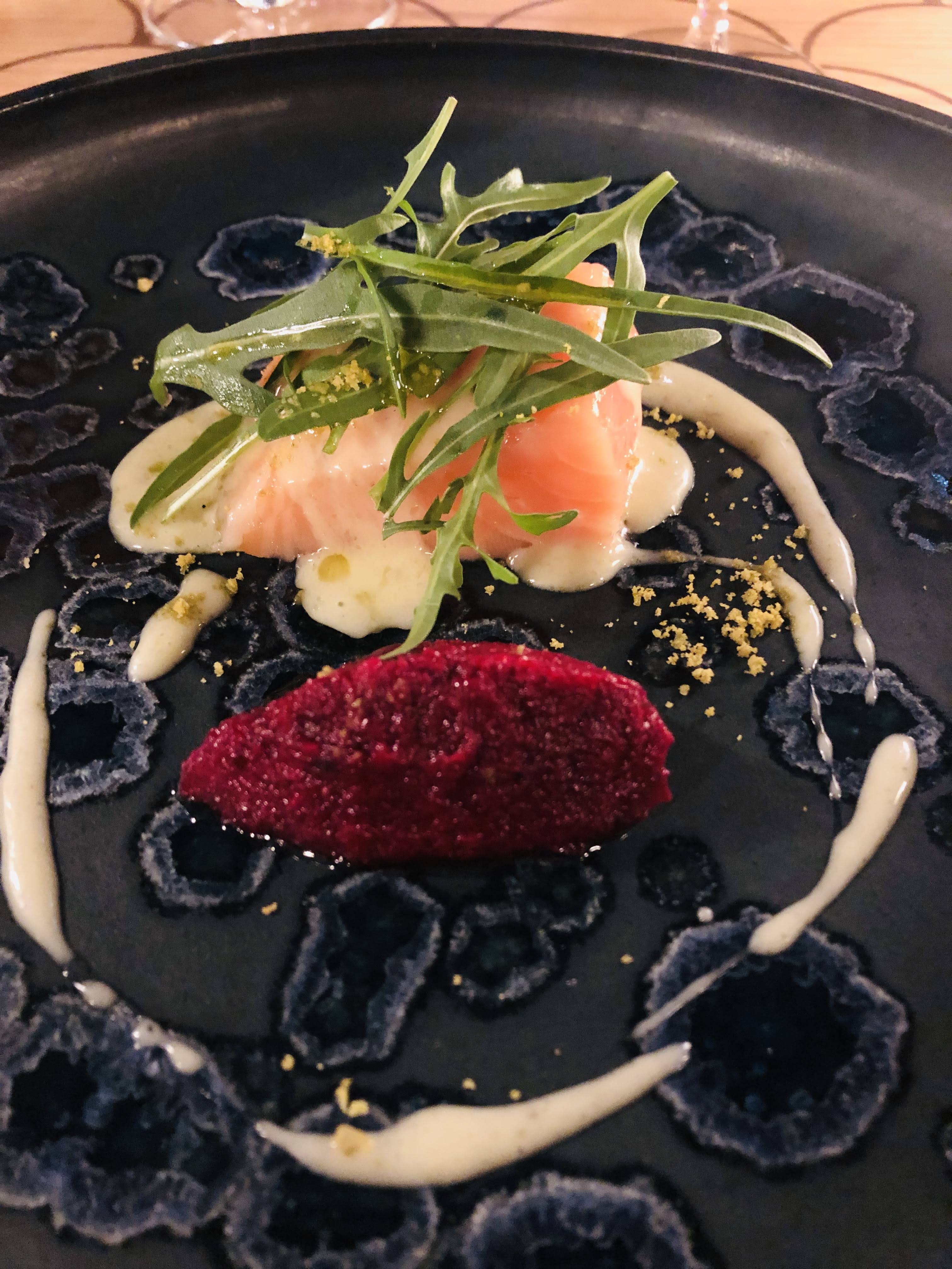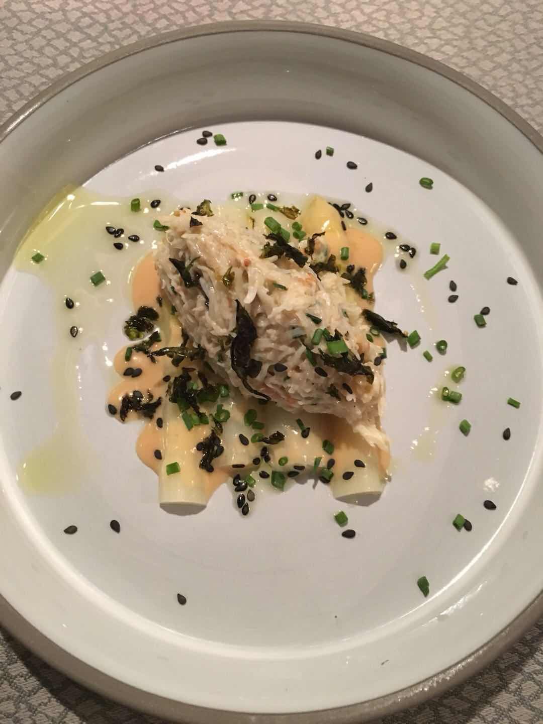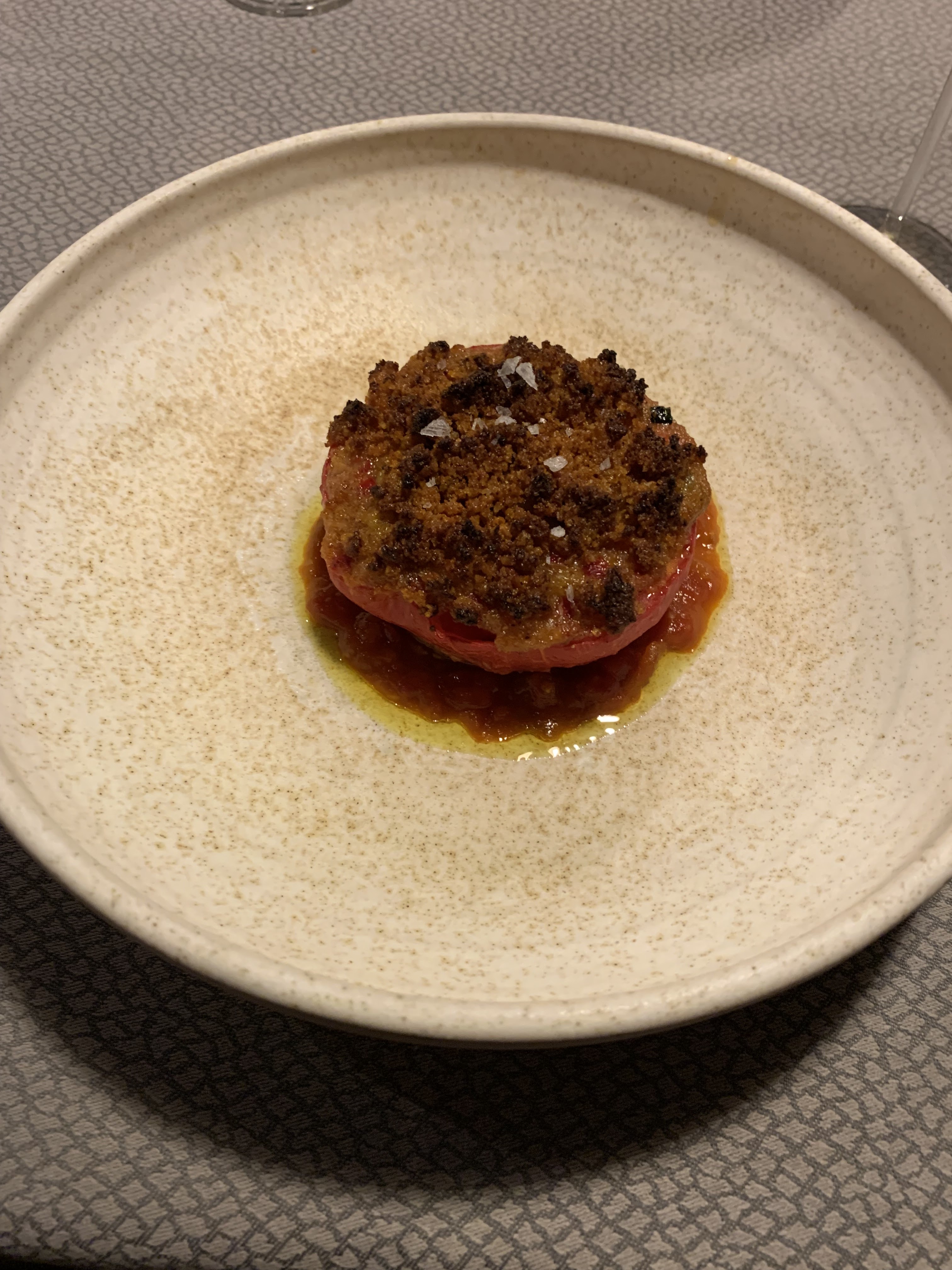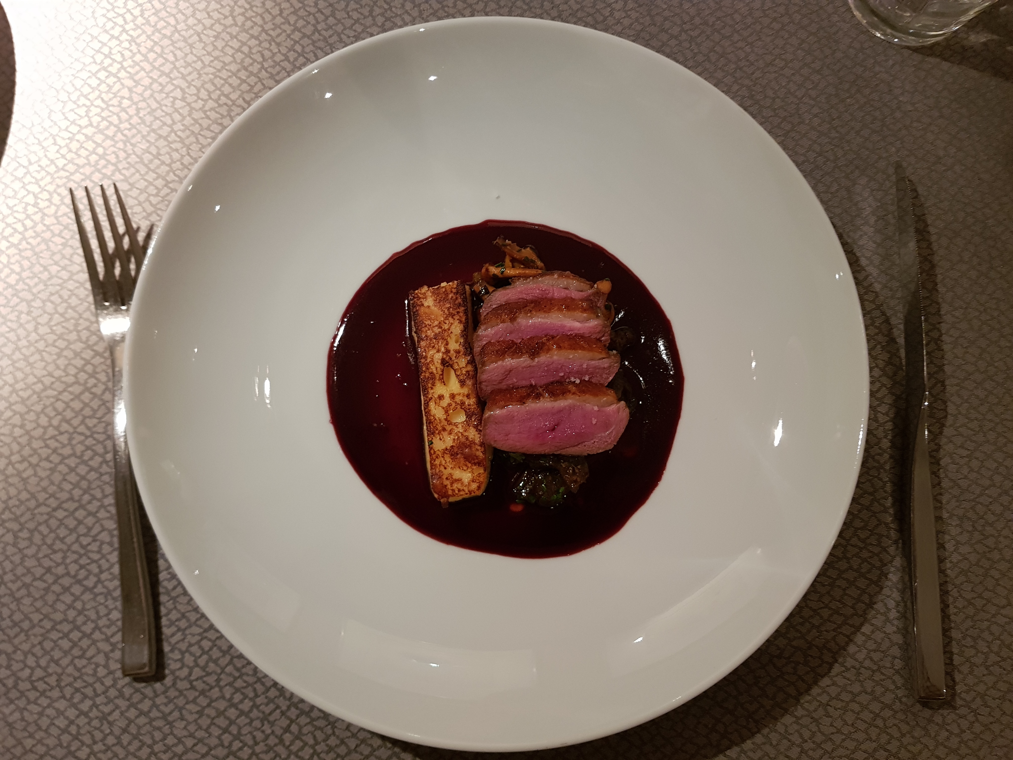 Une cuisine délicieuse. Des assiettes très bien présentées. Un service efficace. Un menu imposé en 5 plats (pas possible de choisir à la carte). Des tables trop proches les unes des autres surtout côté banquette. Dans la plupart des restaurants étoilés il y a le ballet des serveurs : une personne en charge de l’accueil, une autre en charge du vin, etc… cela amène un certain charme qu’on ne retrouve pas ici puisqu’il n’y a qu’une seule personne au service.