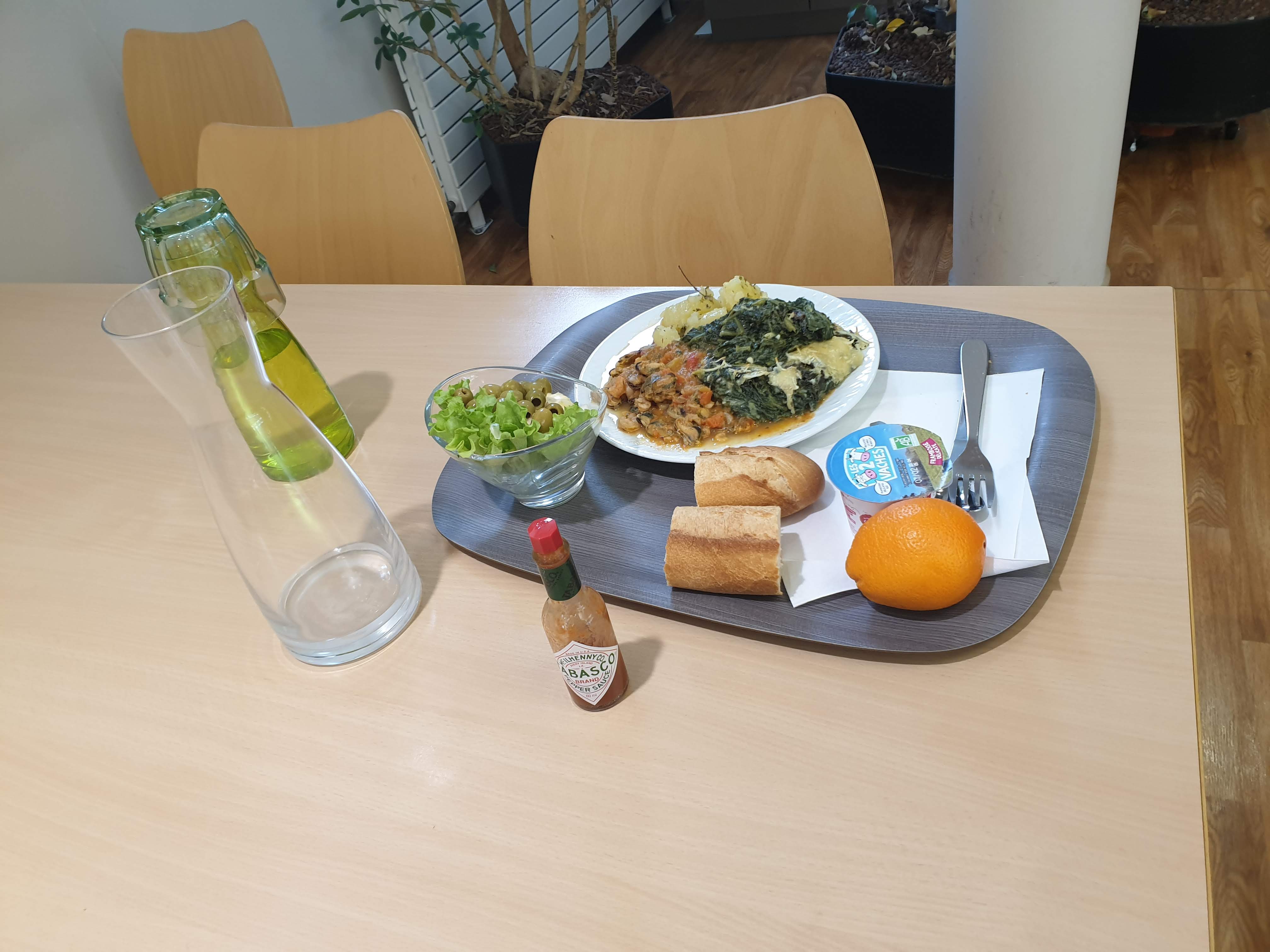 Ce restaurant est vraiment bon. Il propose généralement plusieurs entrées, desserts et fromages parmi lesquels choisir. Ensuite, le plat principal a tendance à être très bon et sain, avec une bonne quantité de légumes et de viande (si vous êtes végétarien, vous pouvez opter pour un menu végétarien, ou si vous avez une maladie qui ne vous permet pas de manger certains aliments, il y a toujours du poisson aussi). Cela vaut vraiment le coup car le menu coûte 3,3 euros. Le seul problème c'est qu'entre 11h50 et 12h15 il y a BEAUCOUP de monde, genre il faut faire la queue pendant 15 minutes pour manger.