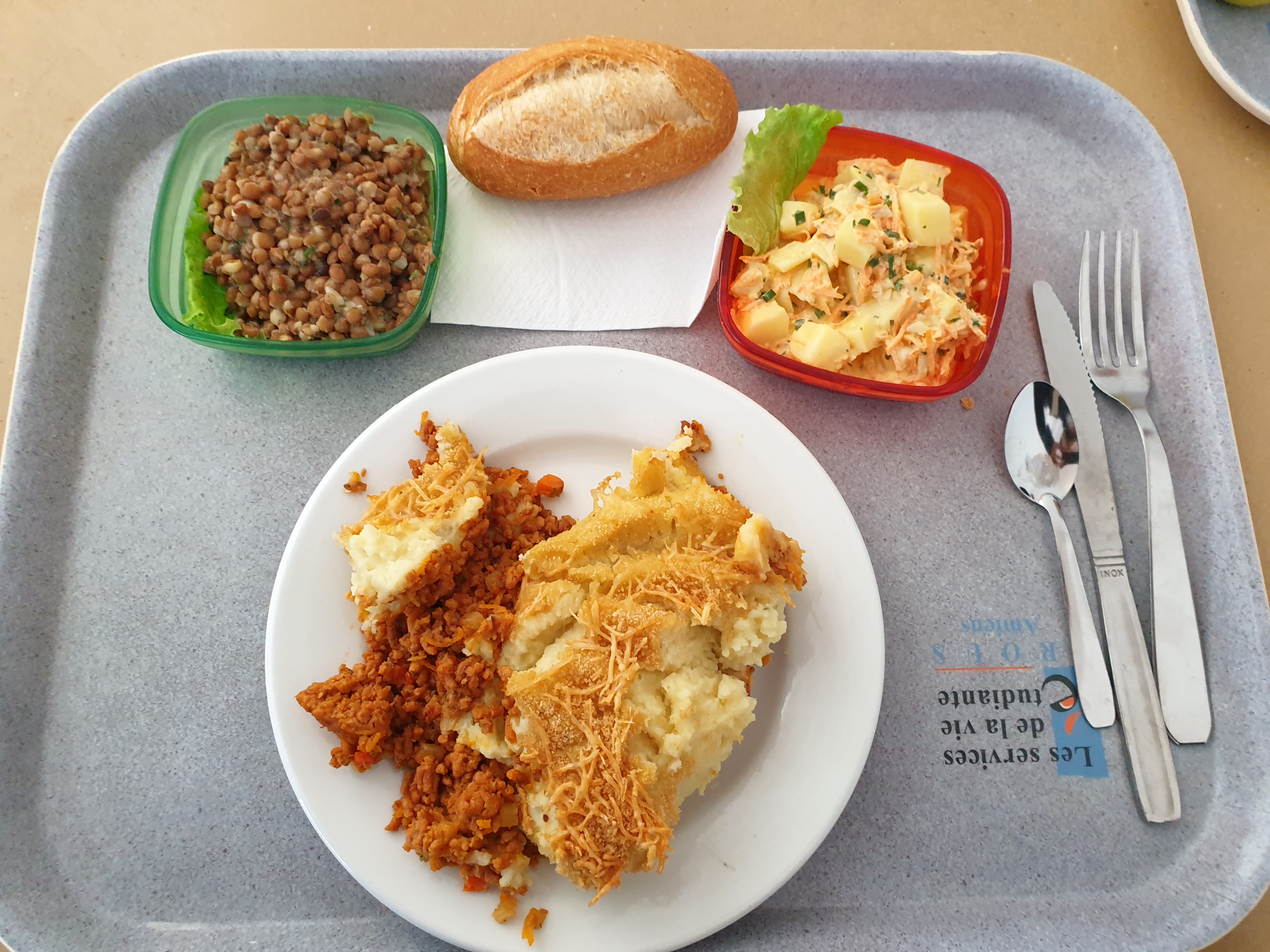 Repas bon et équilibré. Il ne manque plus que le sourire des personnes effectuant le service.