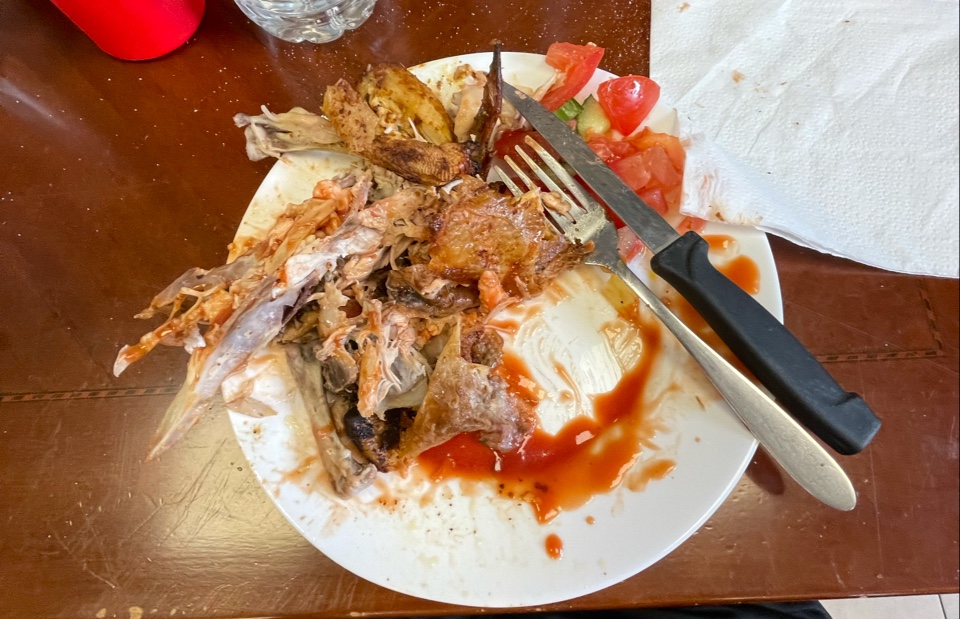 Les plus gros détritus que j'ai ordonné d'emporter. Les frites et le cevapcicu étaient oubliés et la salade était pratiquement inexistante, la viande était livrée sans sauce.
