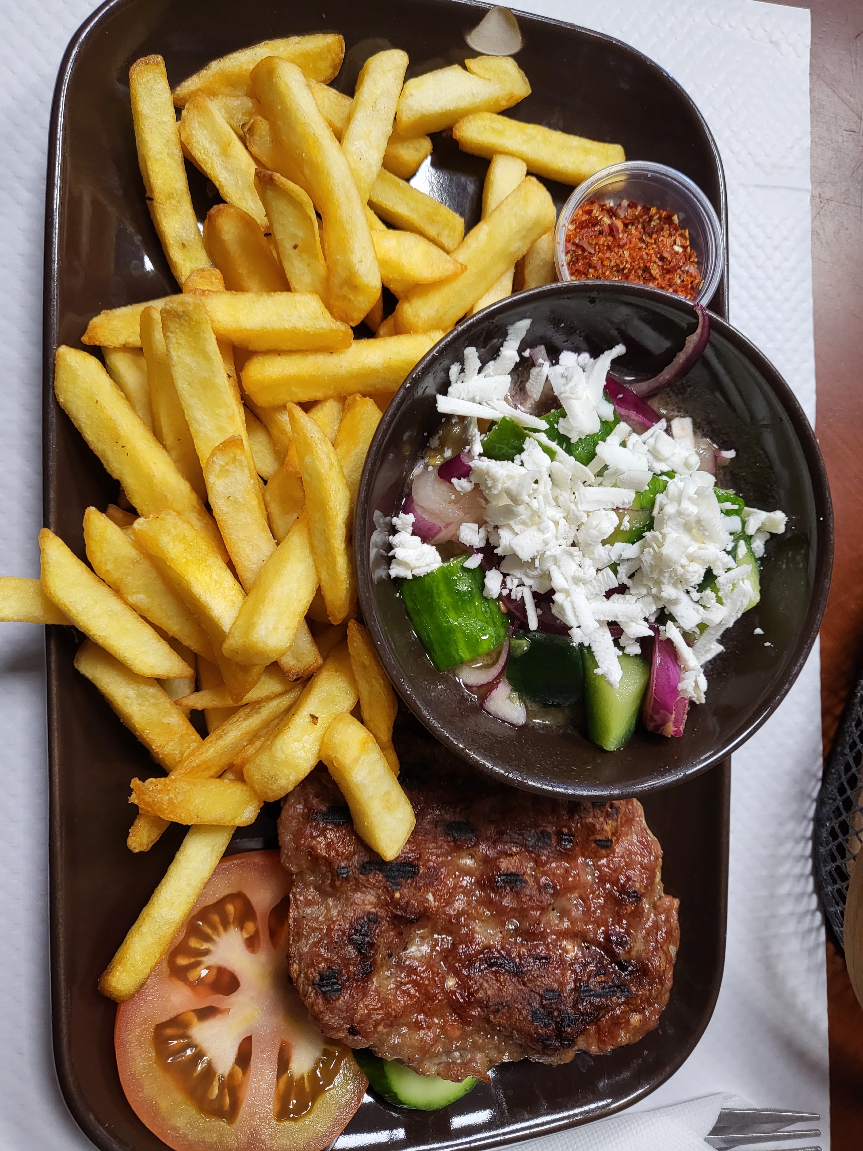 La nourriture était correcte. Les frites dans mon assiette étaient froides. La viande était trop sèche et n’avait pas assez de goût - j’ai déjà eu un Cevapcici bien meilleur auparavant. Ma mère a commandé un Pleskavica et il n'était pas complètement cuit. La salade était bonne, nettement meilleure que la viande et les frites froides. Visite globalement très décevante.