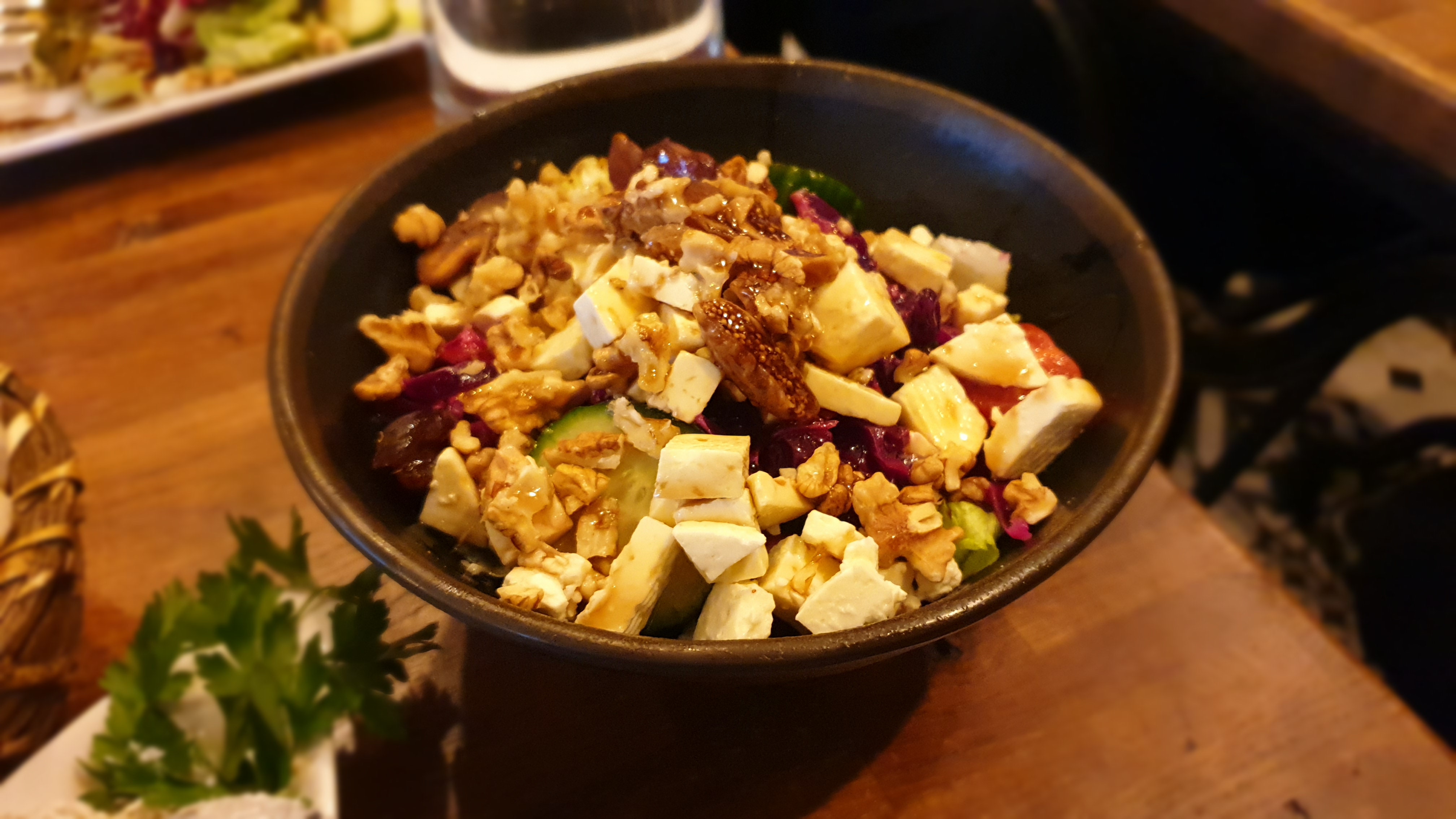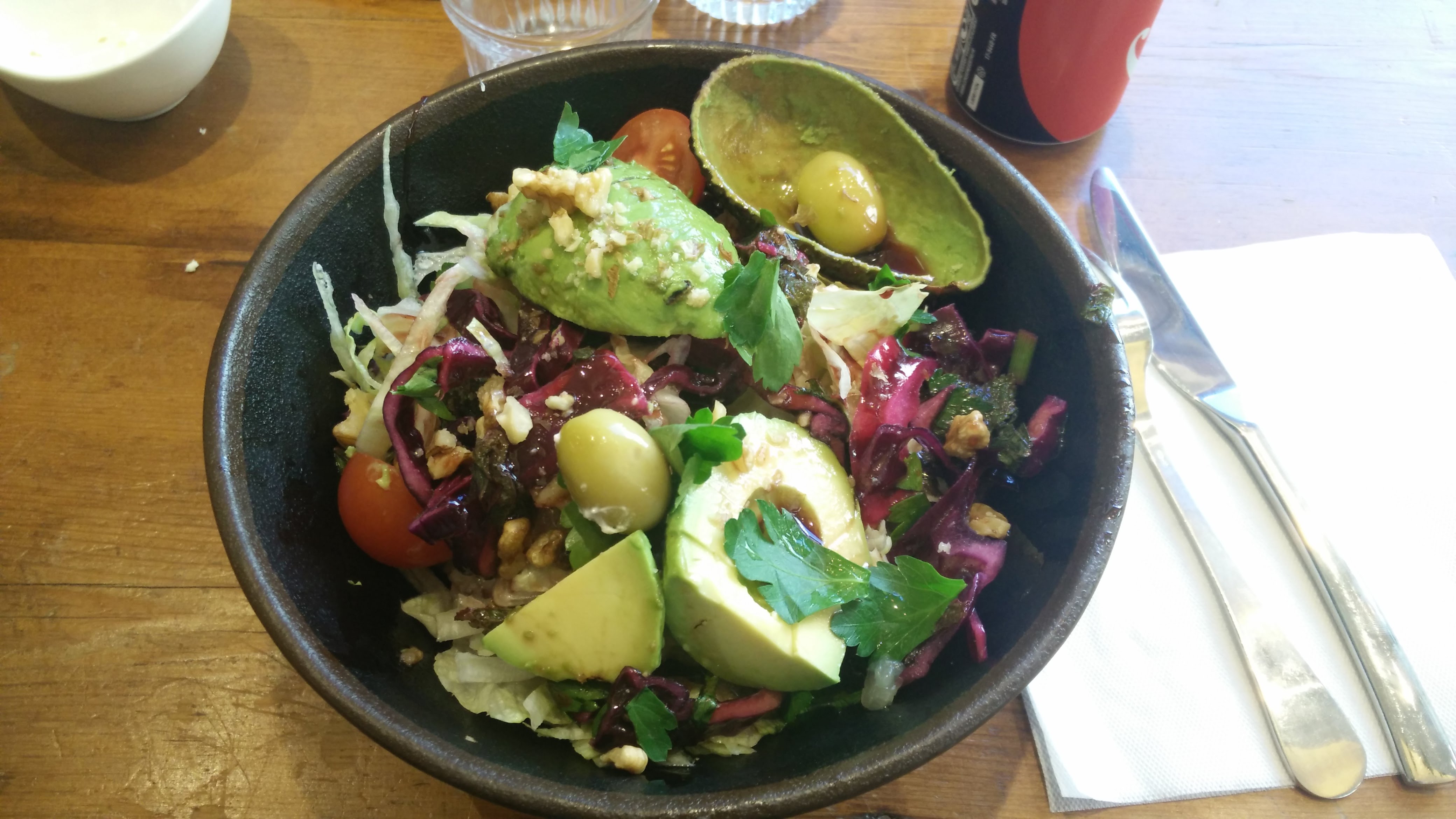 La salade mixte (noix, figue, avocat, salade, fromage, lentilles...) et le burger veggie étaient délicieux !