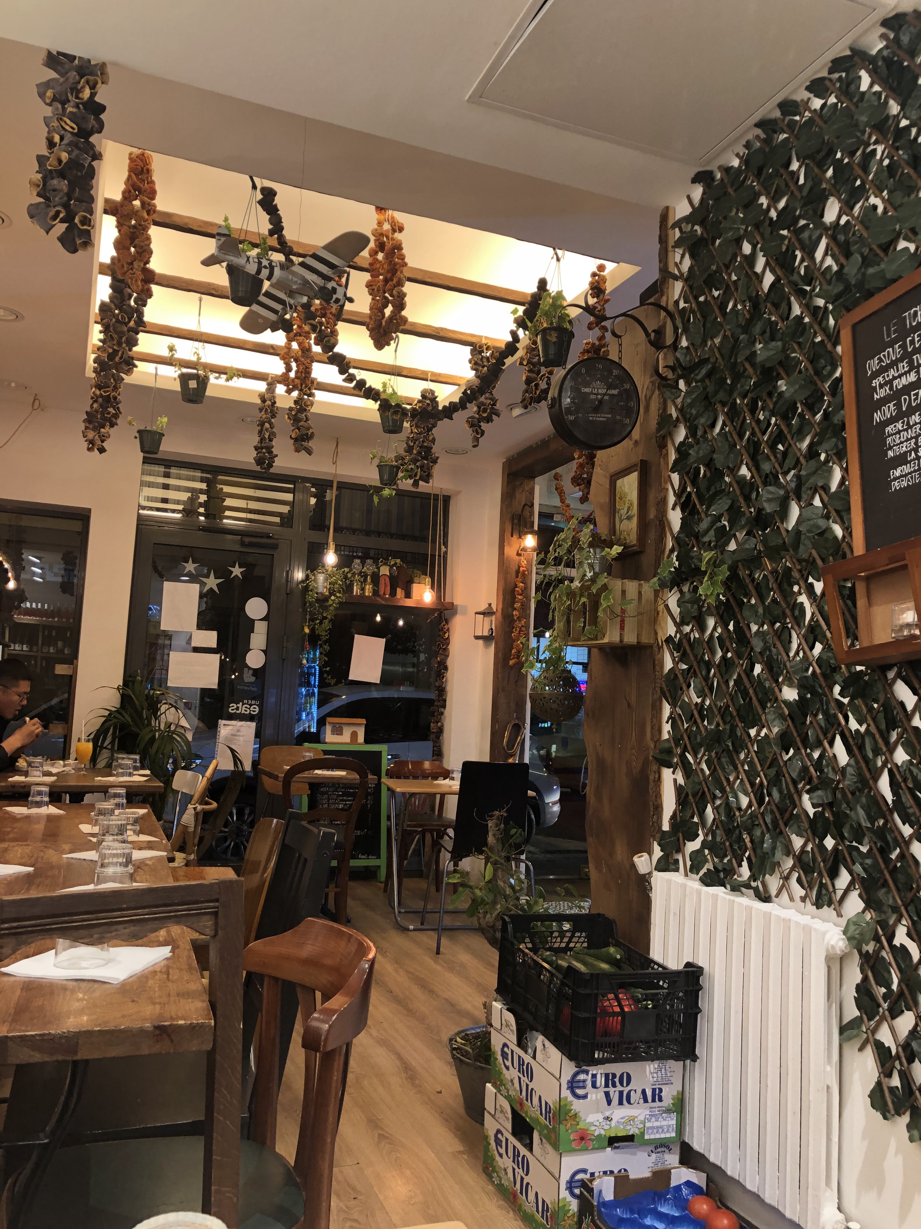 Ambiance 5 🌟 Nourriture 4 🌟 Il faut essayer une fois, si vous êtes à Paris. Localité paisible, bonne nourriture, à déguster avec du vin français. La découverte des restaurants végétariens m'a amené à cet endroit. Surtout la feta, l'ail et le persil.. 😋 4 étoiles car la carte de visite du restaurant ne justifie pas le lieu et la nourriture.