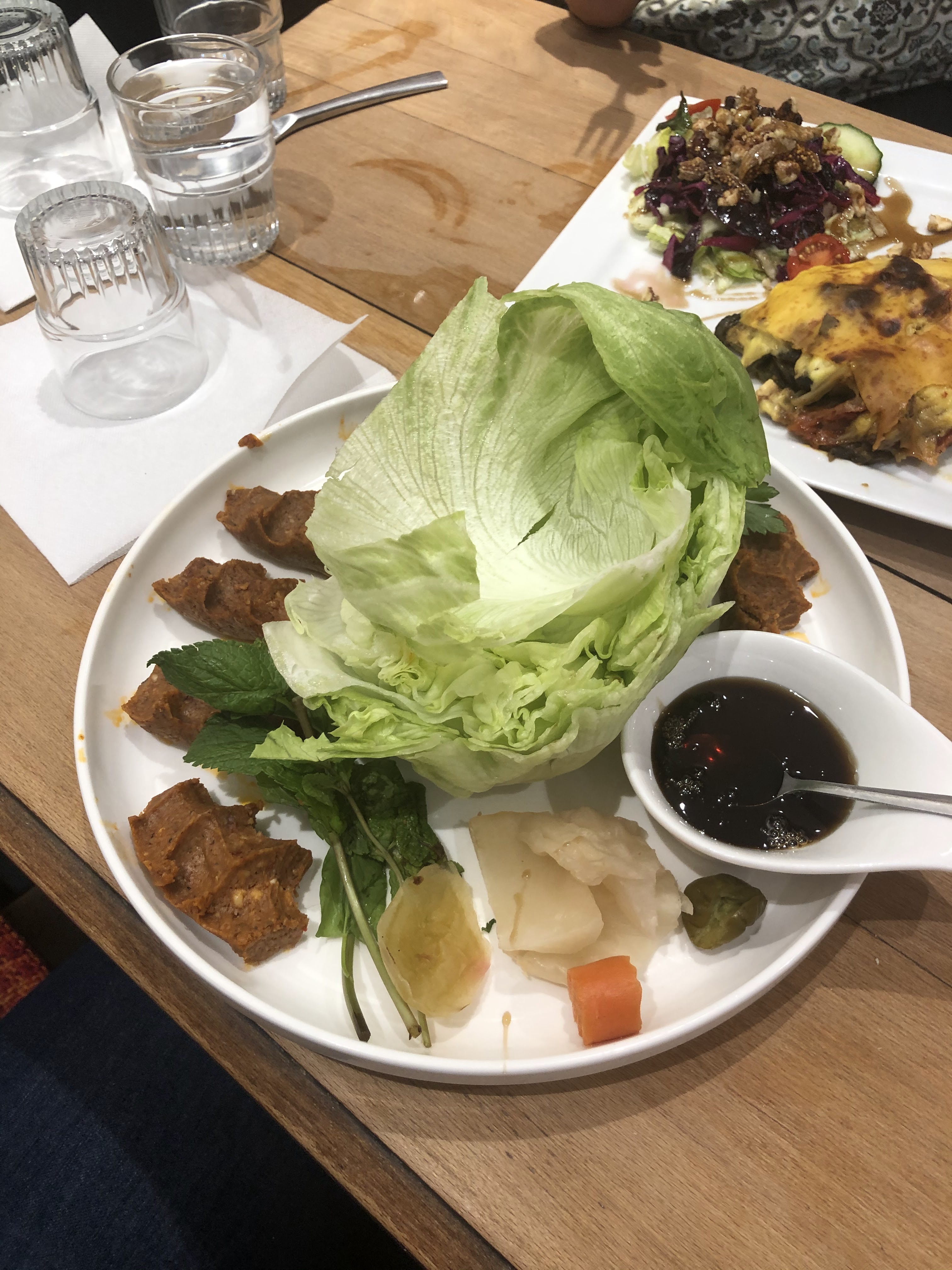 Bonne nourriture végétalienne et végétarienne, mélange de chaud et de froid, différent mais agréable. L'intérieur est superbe avec beaucoup de vraies plantes, je reviendrais !!