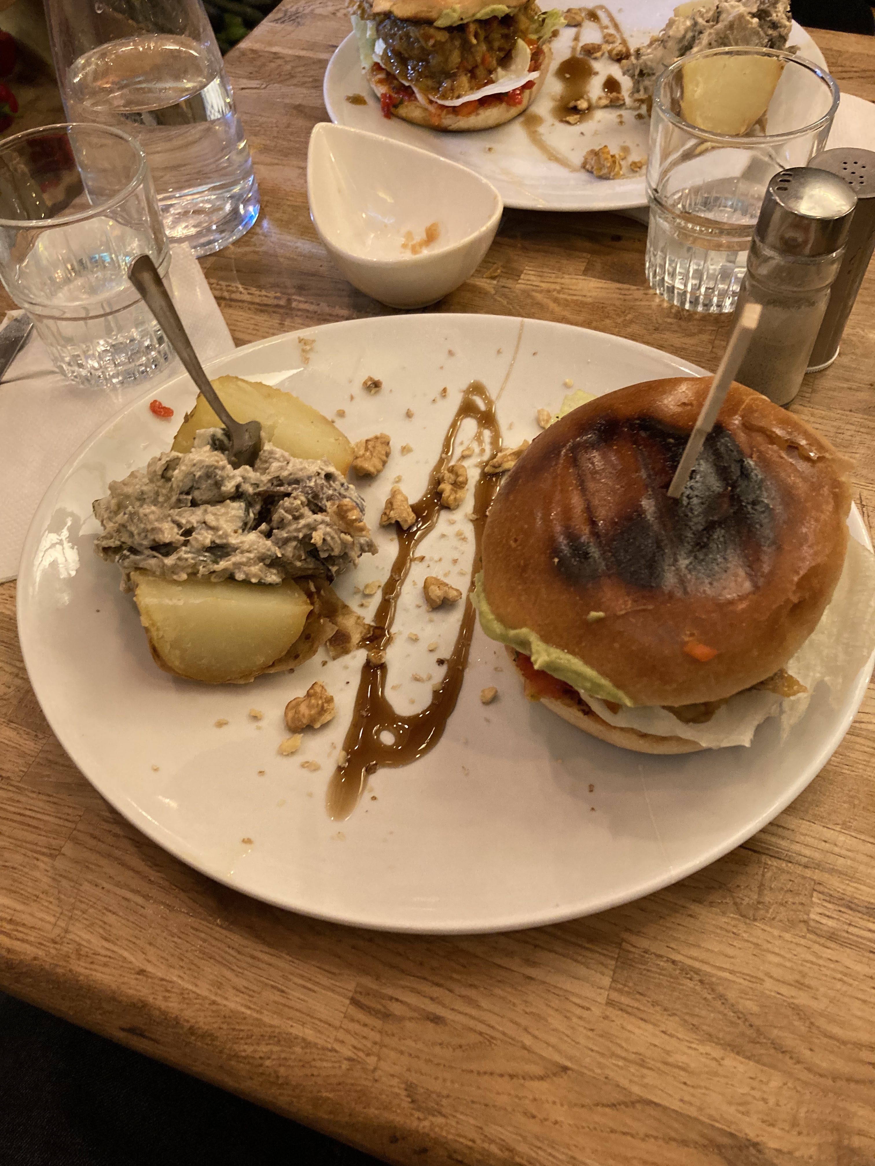 Très bon restaurant avec de délicieux plats. J'ai mangé le houmous en entrée avec sa pita croustillante délicieuse, ma compagne a pris des Tchi Kofte (spécialité turque) et j'ai pris le burger vegan accompagné de champignons marinés et d'une pomme de terre rôtie. En dessert, nous avons pris les baklava et les halva. Le tout était délicieux et frais, c'était une cuisine que nous n'avions pas l'habitude de goûter en tant qu'aficionados de nourriture vegan et ça change, c'est rafraîchissant !