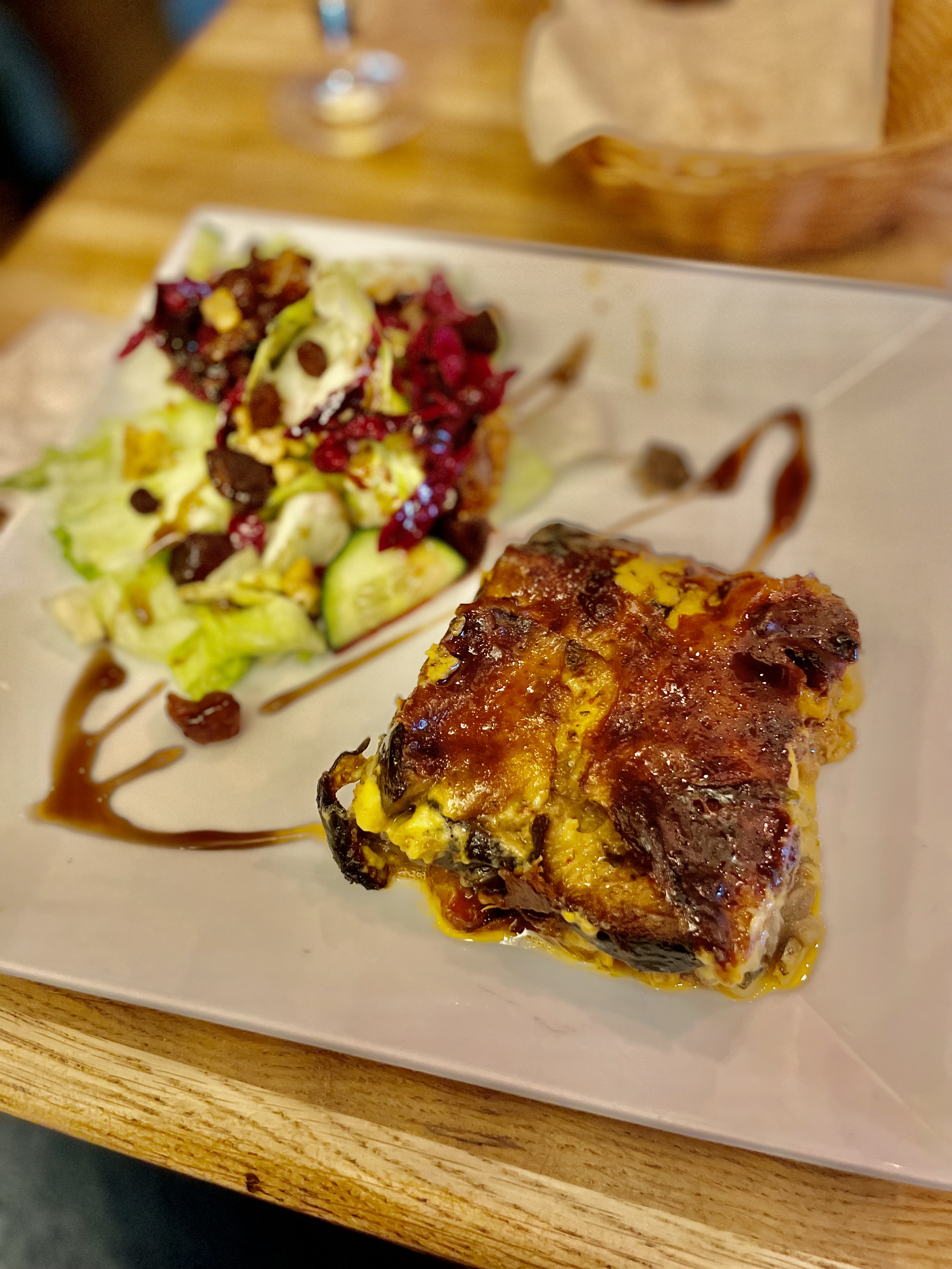 Nous avons été malades. Ce n’était pas assez frais. Nous avons commandé des feuilletés au fromage et un mantar en entrée et en plat un burger végé et une salade faladels. - Nous avons trouvé pour les feuilletés que la feta était fade - le mantar était bon et frais - pour le burger: on attendait une galette de pomme de terre, et une garniture chaude. Mais c’était une feuille de salade avec de l’aubergine et des tomates et de l’avocat… et de la feta qui était assez fade aussi - les falafels était froides, dures, et trop frites.