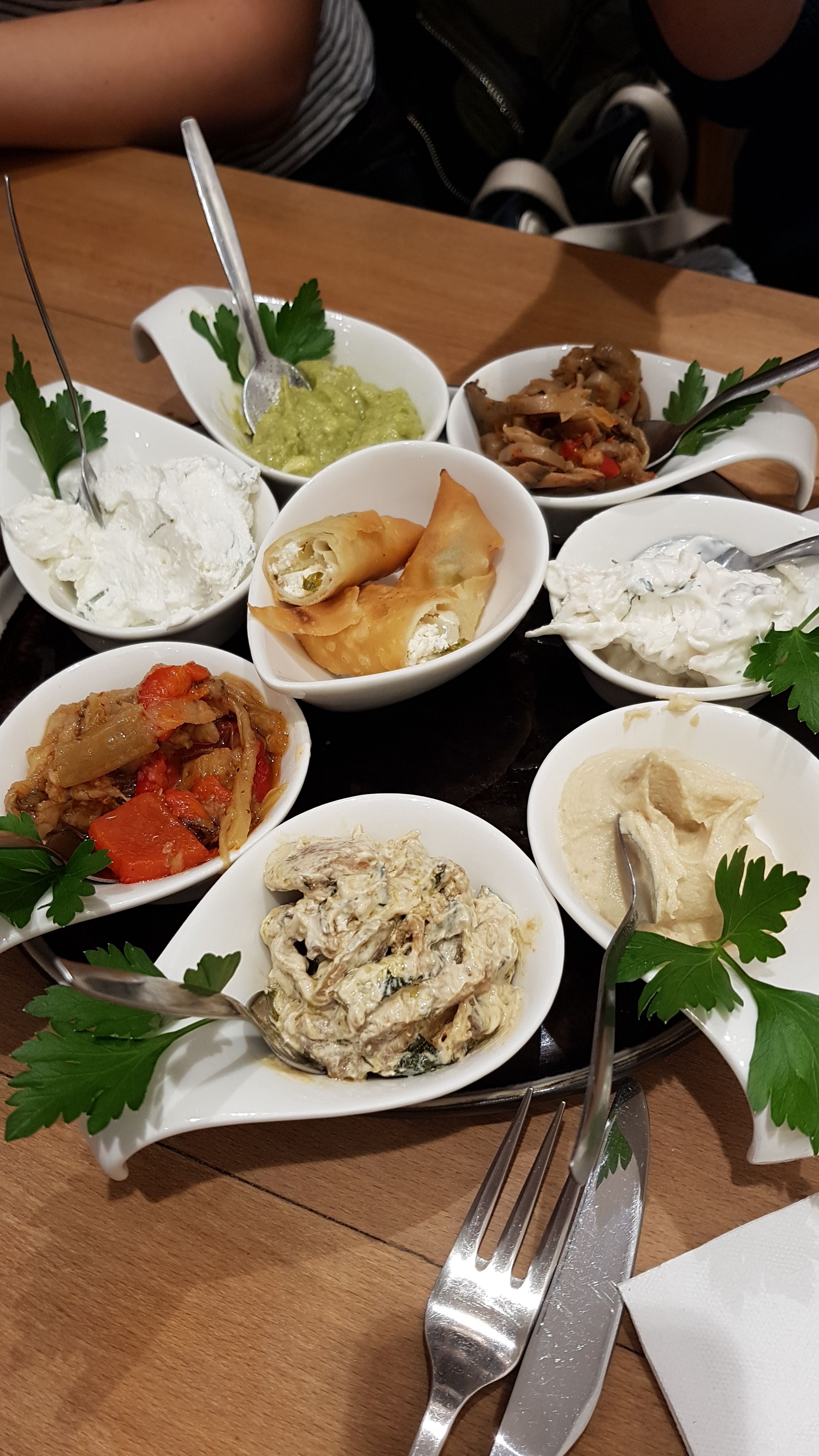 C'est un endroit plutôt correct, une ambiance agréable, le service était bon et le serveur parlait anglais. Cependant, j'ai déduit deux étoiles car la nourriture n'avait pas l'air très fraîche étant donné les prix et étant donné que c'était un samedi soir - le houmous n'avait pas beaucoup de saveur, la moussaka avait l'impression d'avoir été cuite pendant 7 heures et le Tchi Kefte Il faisait assez froid (je sais que c'est un plat frais/froid mais un peu de chaleur pour le Kefte aurait été bien).
