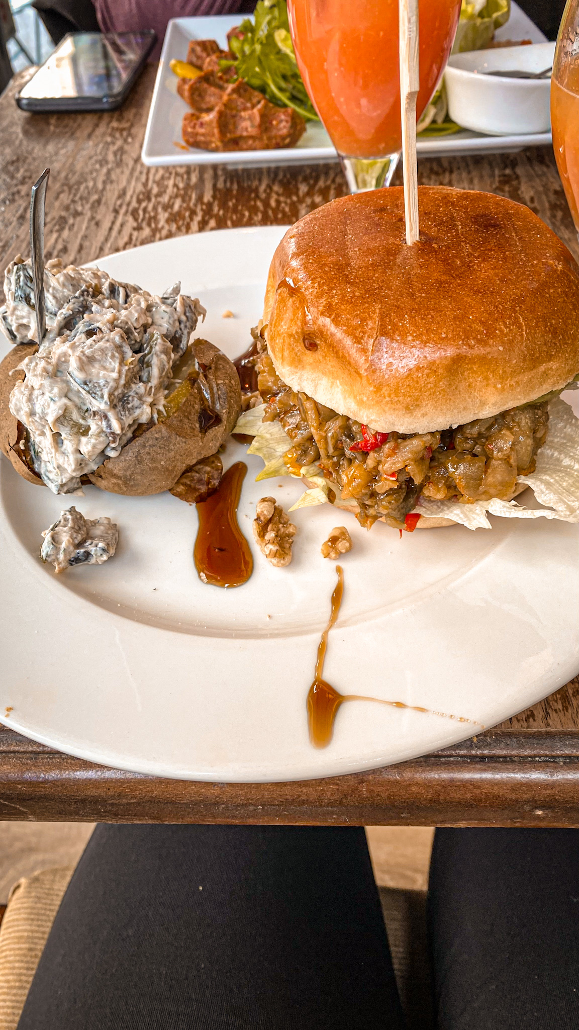Endroit charmant et excellent service mais pas un grand fan de la nourriture. Beaucoup de plats froids qui auraient été bons s'il faisait plus chaud dehors. Mais déroutant quant à ce qui était végétalien ou végétarien. Aucune option de dessert végétalien. Bon choix de boissons et de plats frais.