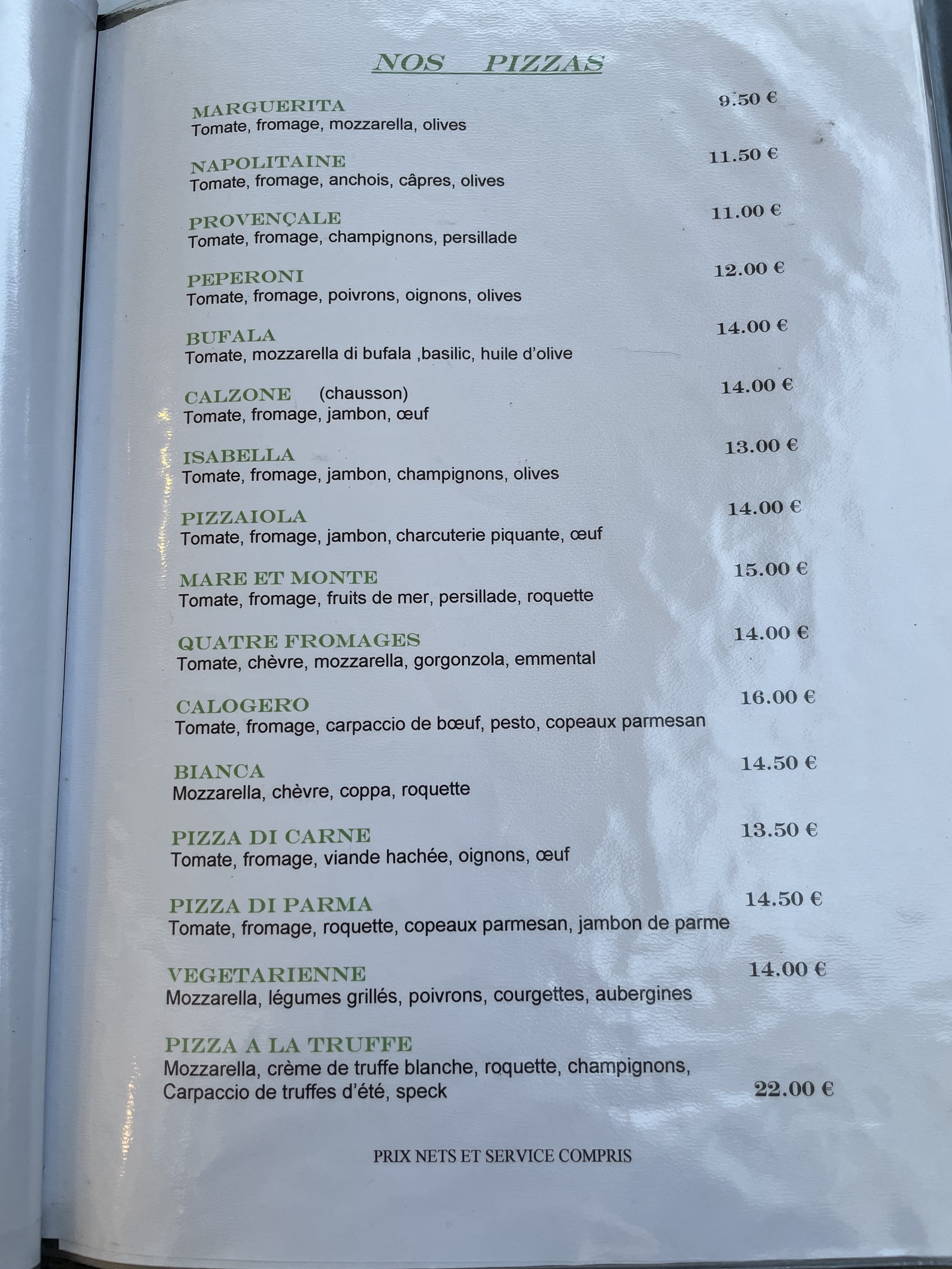 Une bonne pizza en terre de France avec un service sympathique même s'il est un peu lent. Prix en adéquation avec la région, c'est-à-dire élevés. Si vous êtes en manque de pizza, c'est une adresse à recommander