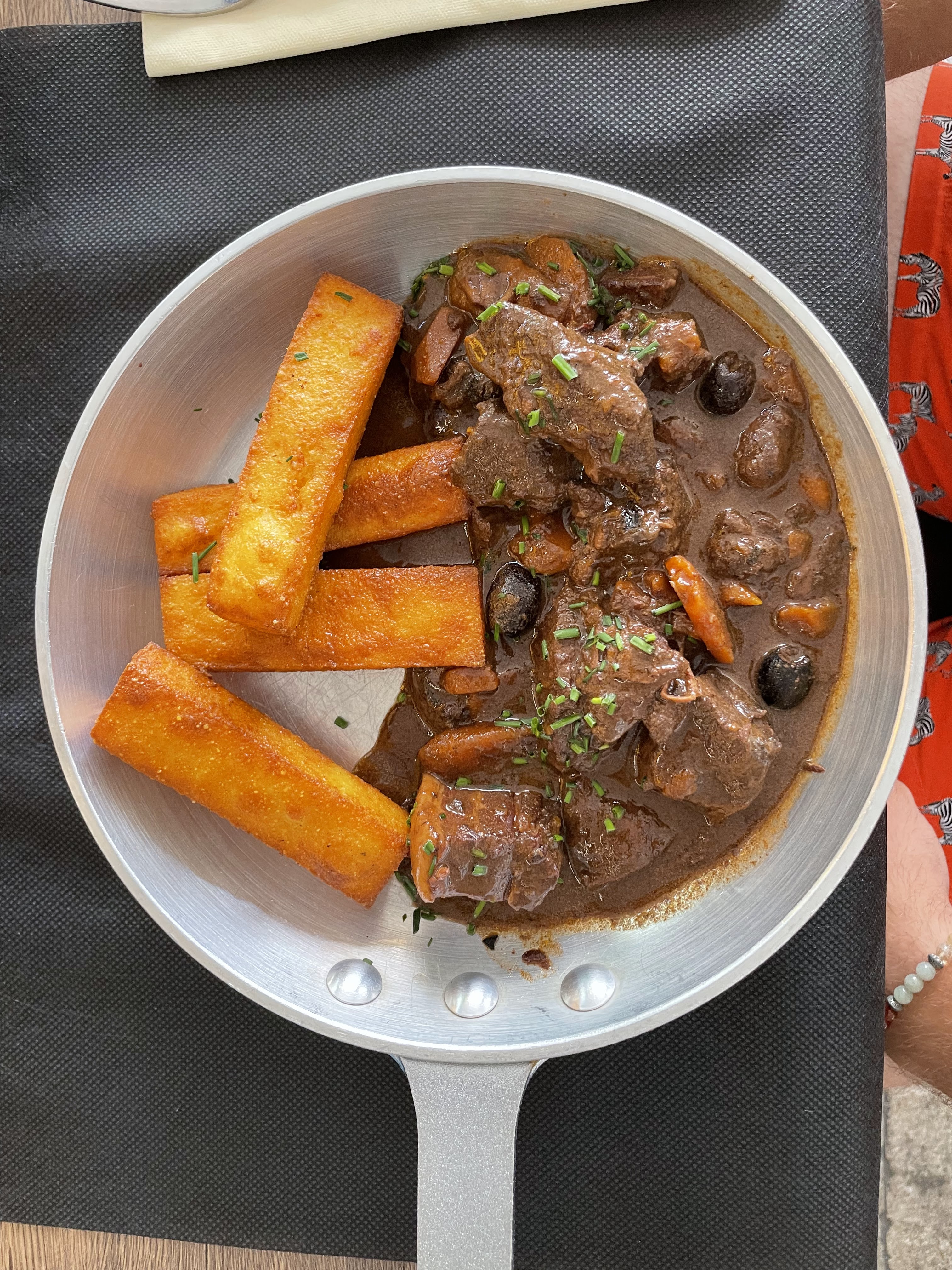 Personnel très gentil mais on nous laisse même pas le temps de manger. Nous avons commander un apéritif et le plat est arrivé littéralement 30sec après. À peine celui-ci terminé que l’on nous enlevait les assiettes pour passer à la suite. Le sanglier est très bon mais la polenta n’a malheureusement aucun goût. L’idée est là mais le business plan derrière le restaurant est celui d’un attrape-touriste. À noter : éviter de manger à l’intérieur. On ne s’entend pas du tout.