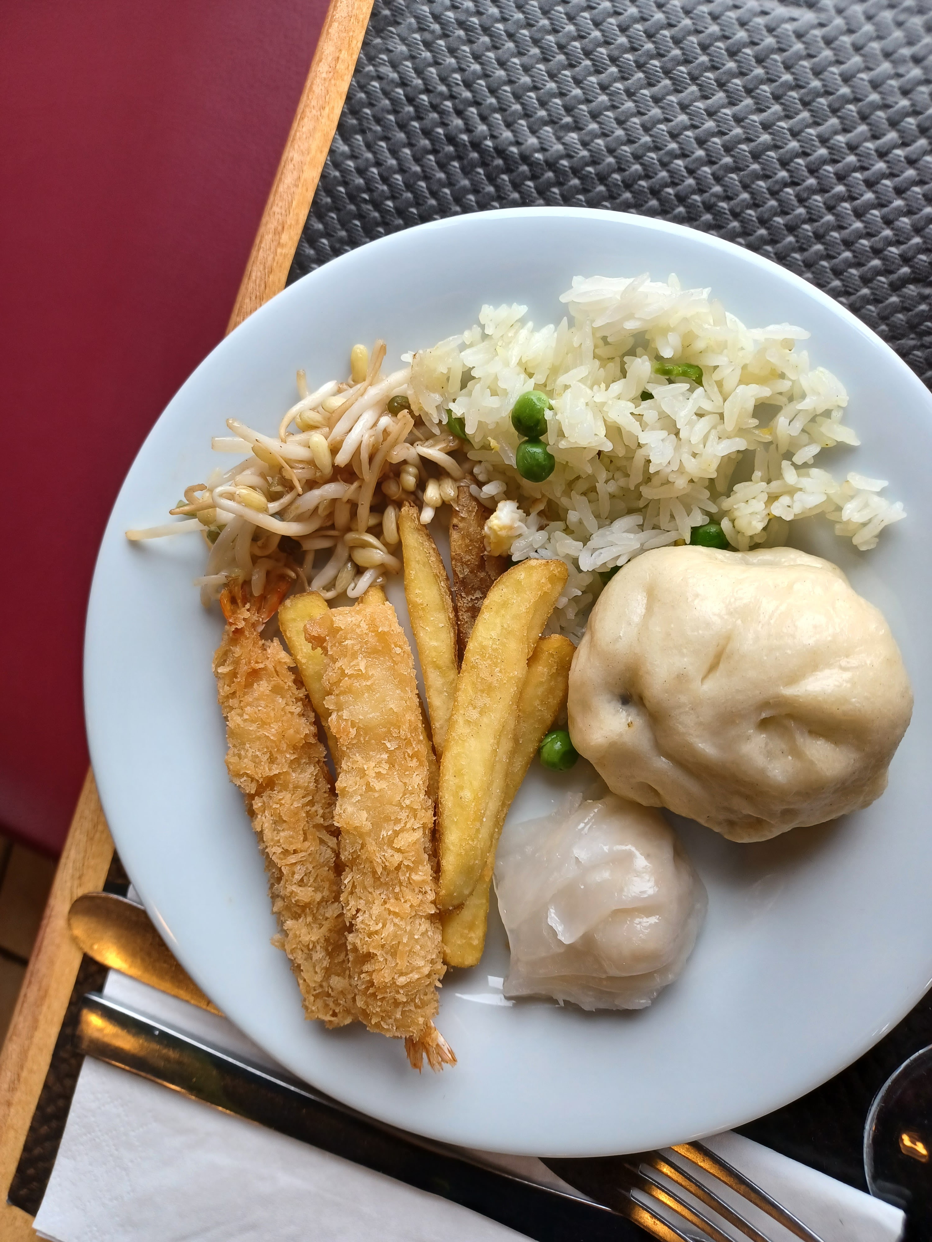 Petit buffet à volonté, bon pour les petites comme les grosses faims. N'hésitez pas à demander les BôBun qui ne sont pas directement sur le buffet, ils valent vraiment le détour ! Côte buffet, je recommande le poulet curry coco, après c'est du classique. Le midi c'est 13.90 à volonté ! La responsable est très gentille et souriante, aux ptits soin pour le service. Merci !