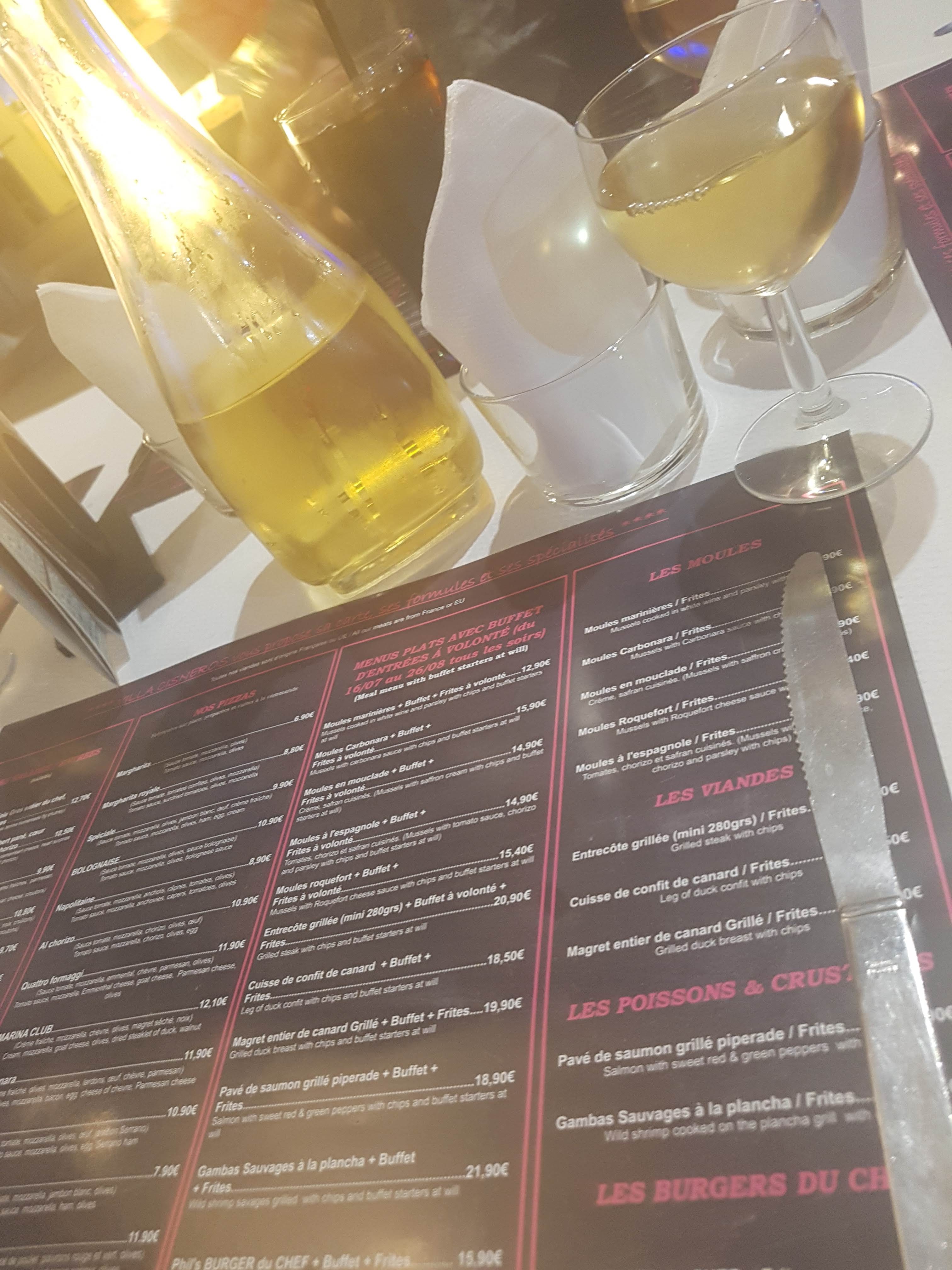 Petite brasserie dans le camping, on y mange a quatre, le serveur apporte les menus, il est 21h et nous annonce plus de plat du jour, ils nous restent les pizzas, la commande est passée, 3 de la table sont servis et le quatrième manges quand les autres ont fini. Le dessert glace avec plein de chantilly, veut on cacher quelques choses.a l addition on nous propose gentiment un rhum arrangé, d ou sort élixir me donne peut confiance, a vous de voir.🤔🤔