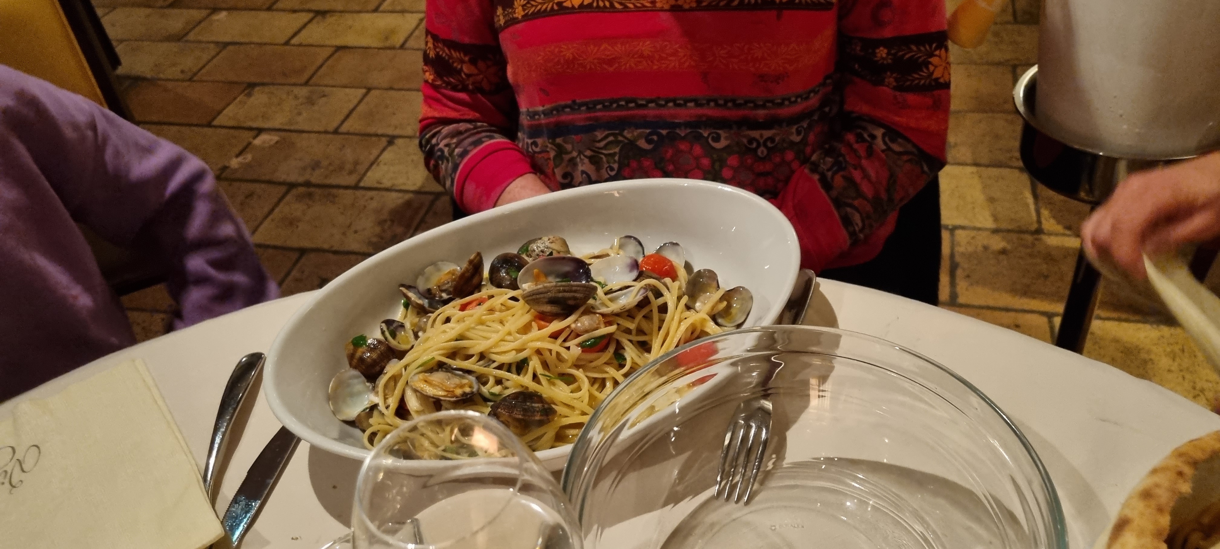 Service plutôt moyen Plusieurs palourdes non ouverte , donc pas cuites De plus les palourdes ont été peu ou pas du tout rincer , du coup beaucoup de sable en bouche Nous n’avons pas fini nos assiettes et le serveur ne s’en ai meme pas inquiété Peut etre une Habitude … nous n’y retournerons plus