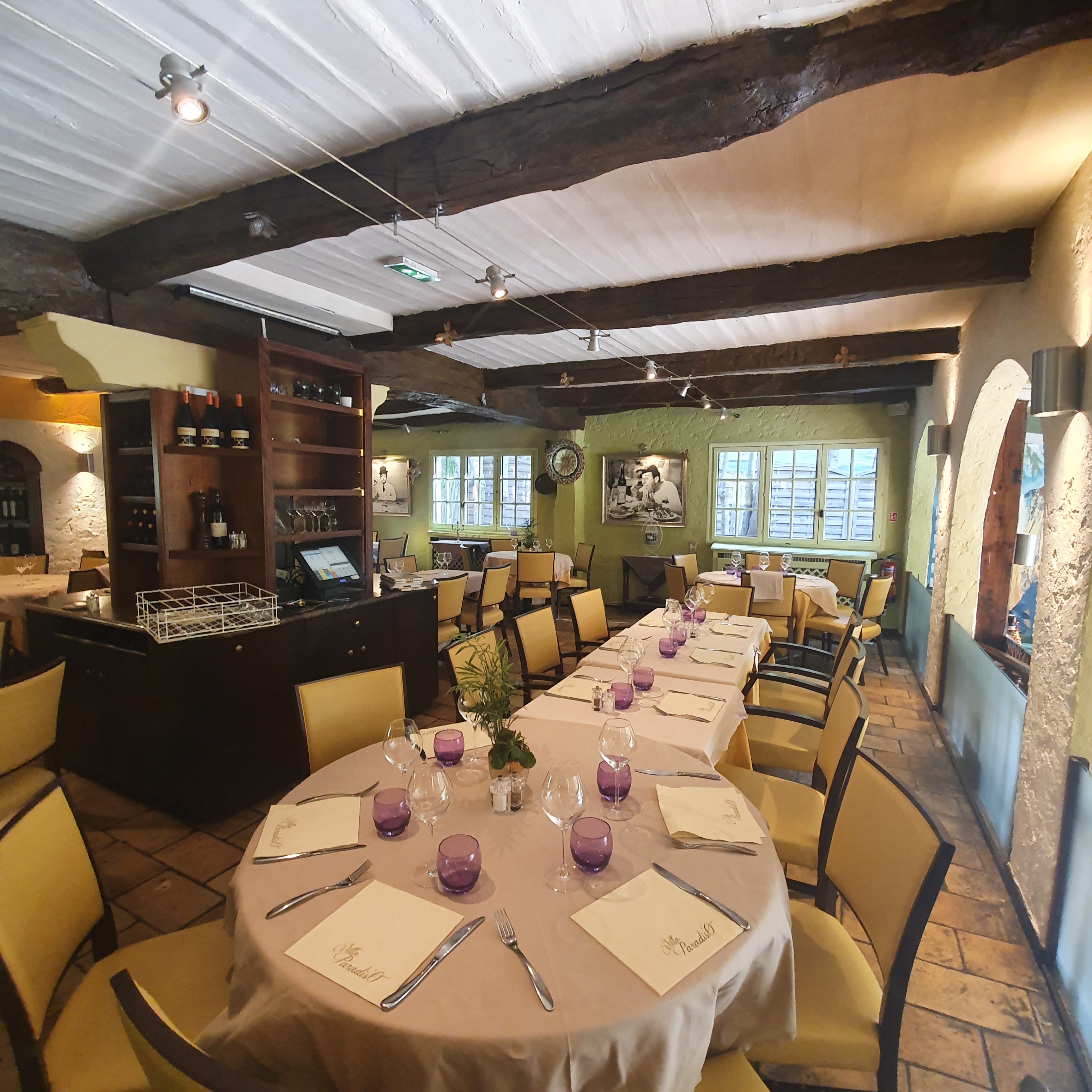 On nous a installé de suite dans une salle intimiste avec poutres et pierres apparentes alors que nous sommes arrivés un samedi soir au dernier moment sans réservation. Nous avons passé une excellente soirée autour d'un repas excellent. Service et serveuses au Top