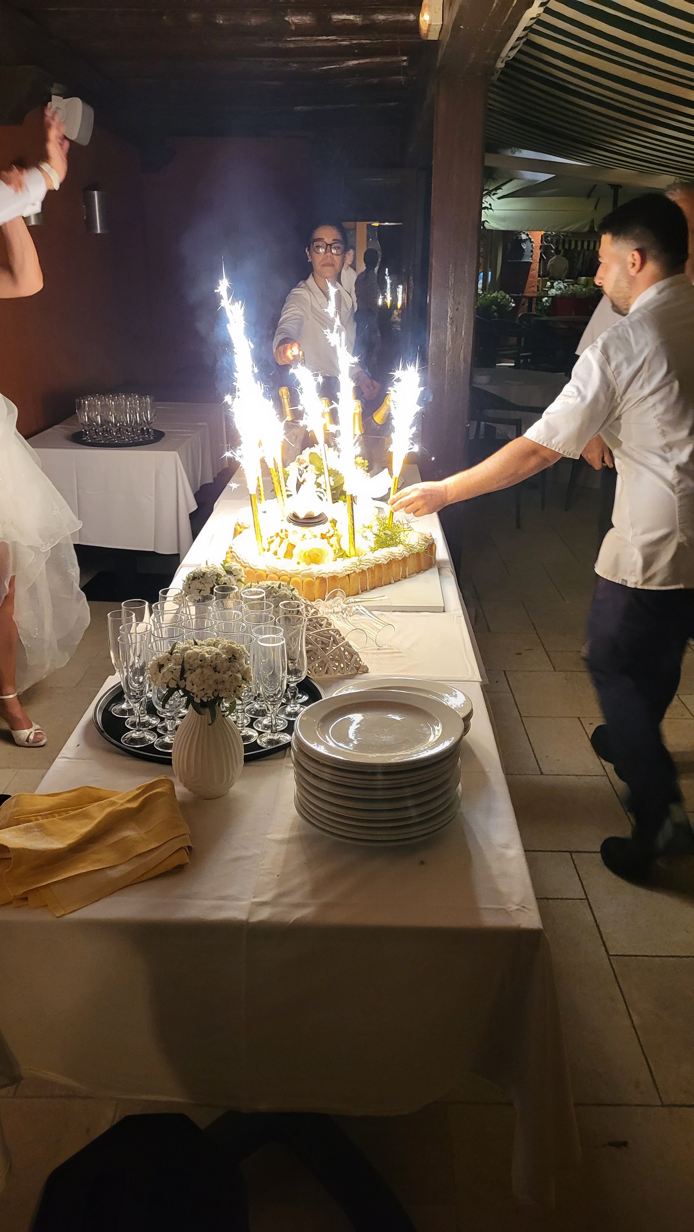 Nous y somme allés pour un repas de mariage, on avais la salle du fond bien séparée des autres clients. En ce qui concerne le cadre, vous trouverez un coins tranquille avec parking privé le tout entouré de verdures. Le repas était excellent. Je tiens à féliciter les cuisines pour avoir, en plus des 52 repas pour nous, réussi à satisfaire les autres clients qui étaient nombreux. Le service était impeccable, le serveur ainsi que la serveuse était présent lorsque l'on avais besoin de quelque chose. Si vous cherché un endroit alliant repas et détente à l’italienne, je vous recommande ce restaurant. ENCORE UN GRAND MERCI A TOUTE L’EQUIPES .