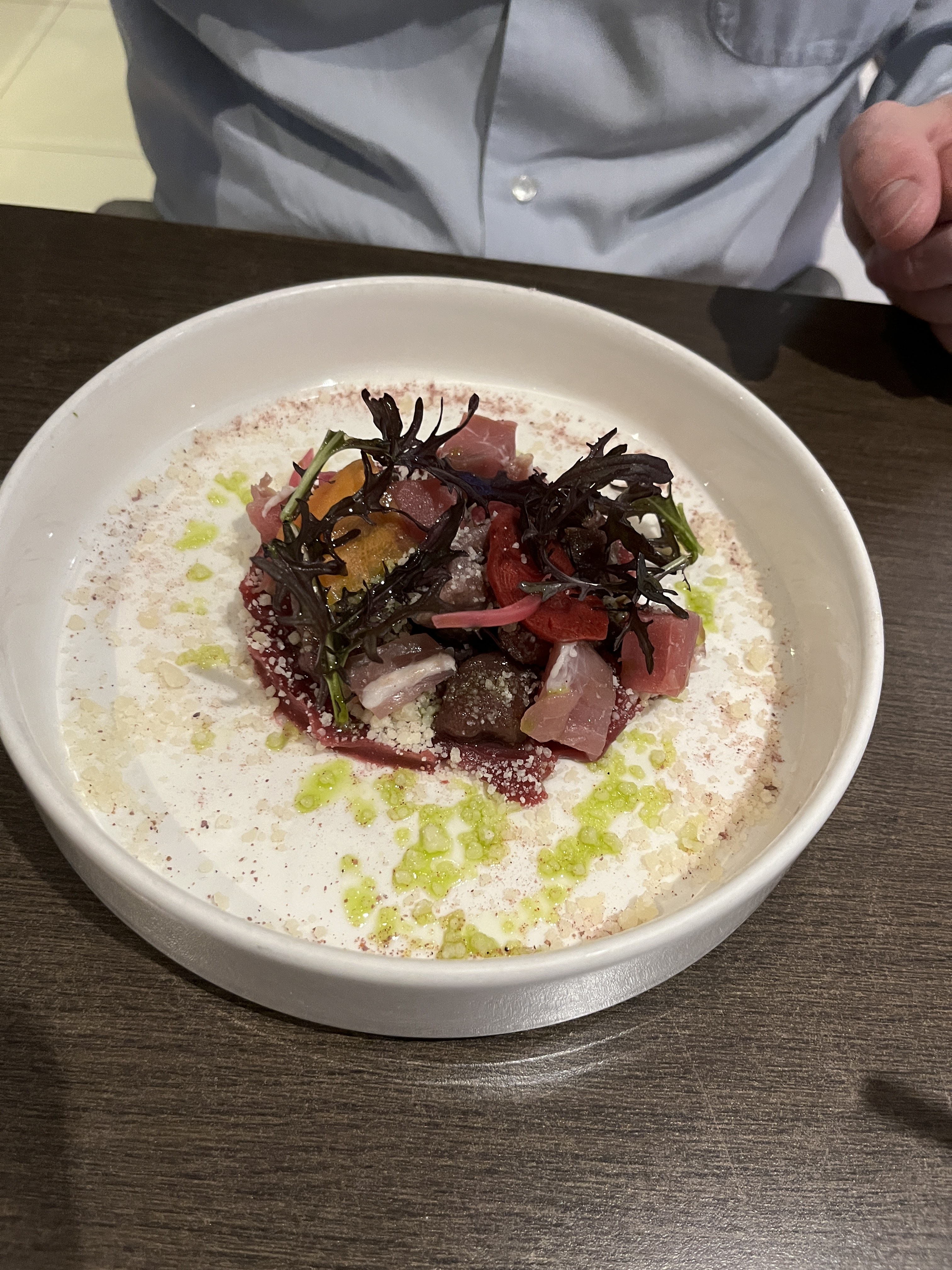 Plats très rafines et magnifiquement présentés et copieux bravo au chef quel régal. l'équipe de service est très bien et présente bien le descriptif des plats Merci à tous. Nous avons passé un excellent moment et reviendrons vous voir de Honfleur Les Normands de Honfleur en ballade