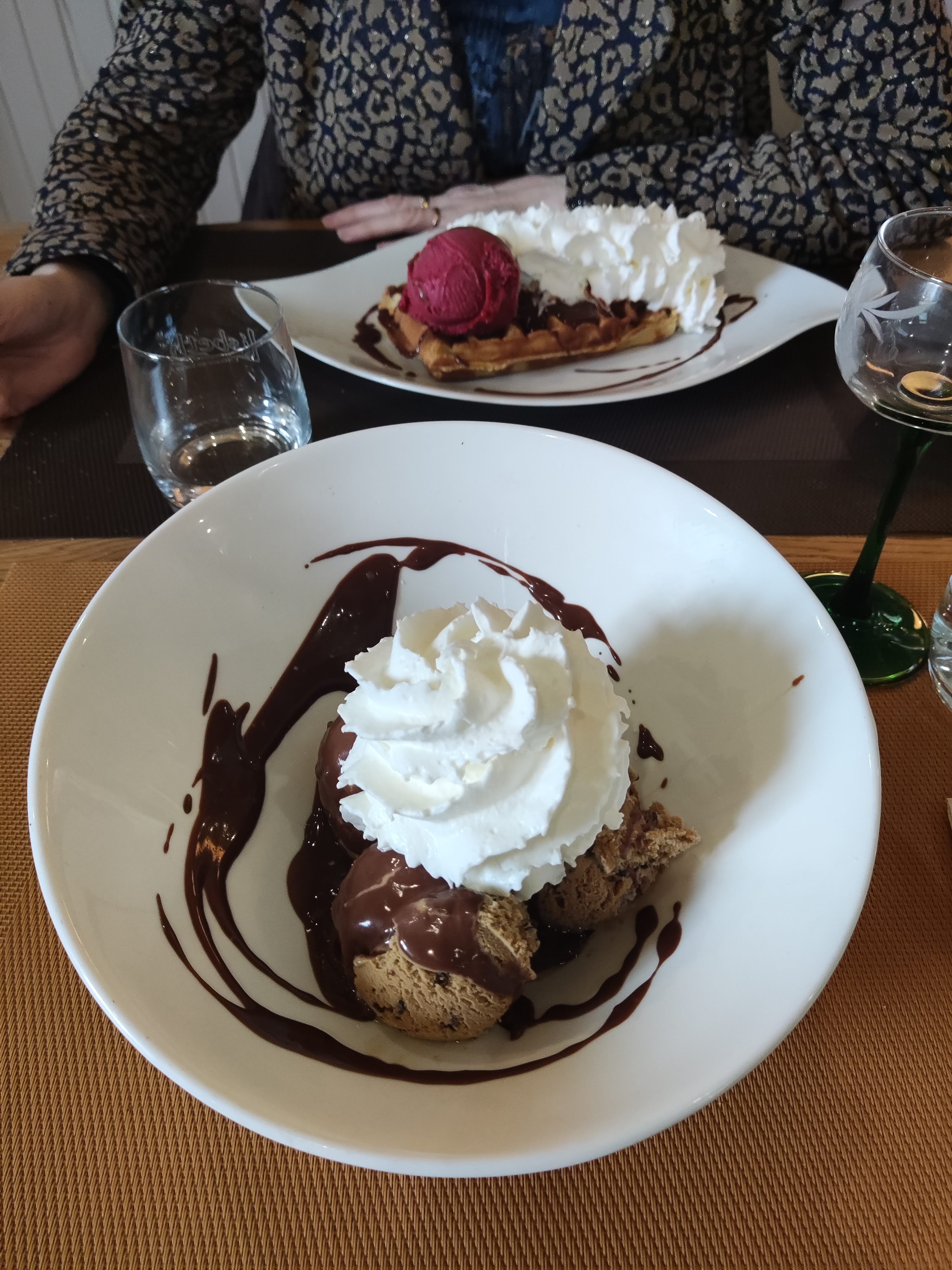 Très décevant rapport qualité prix. Galettes de pommes de terre dur et trop salé, le fromage blanc trop d’ail et trop salé. La glace vanille n’a aucun goût, et les gaufres réchauffés ne sont pas bonnes du tout. Dommage parce que le cadre est bien refait.