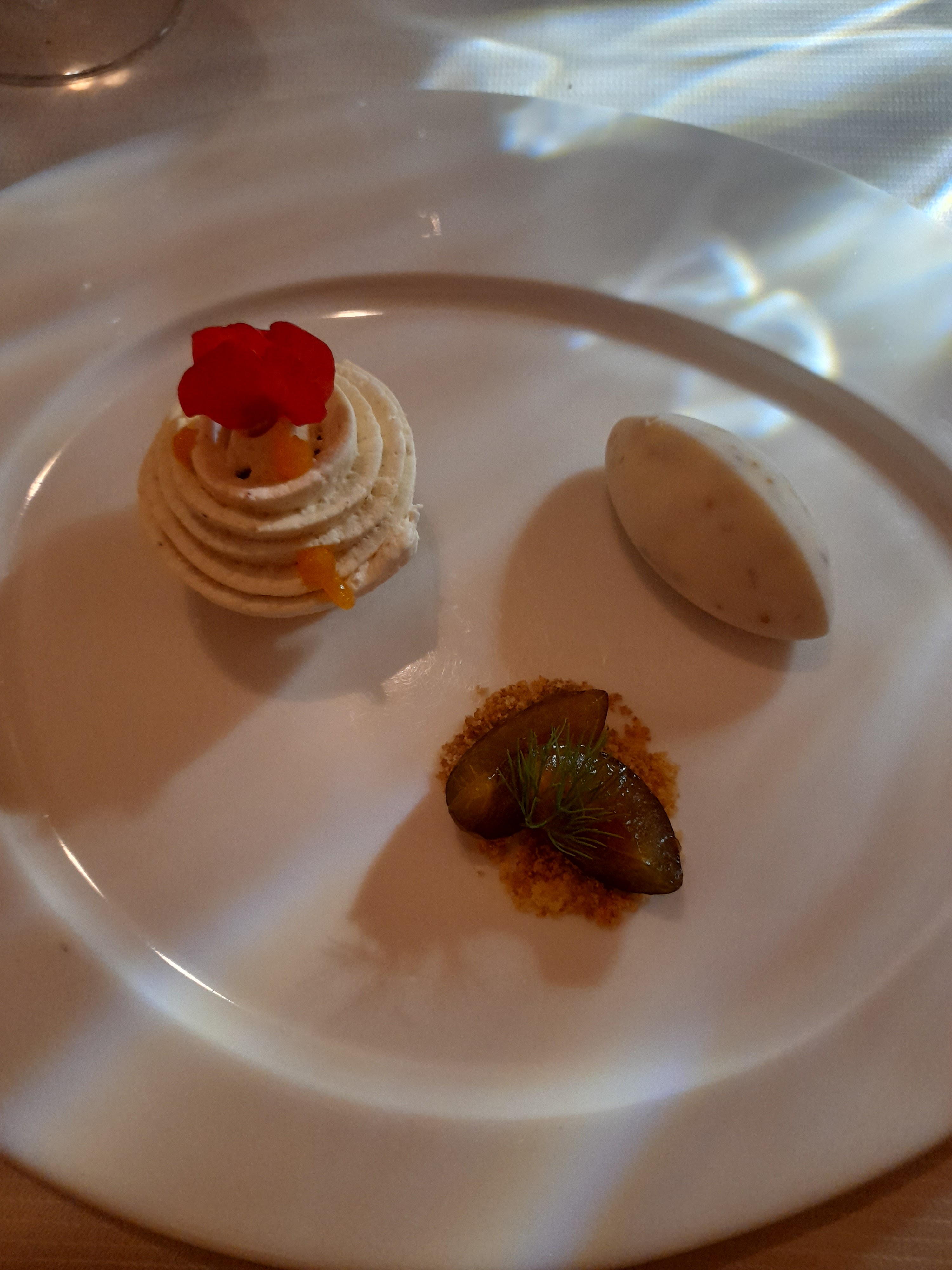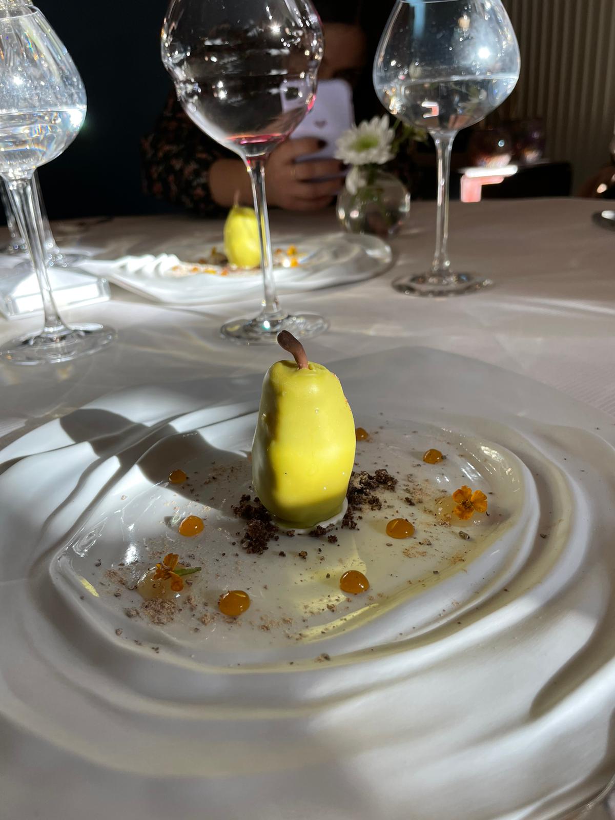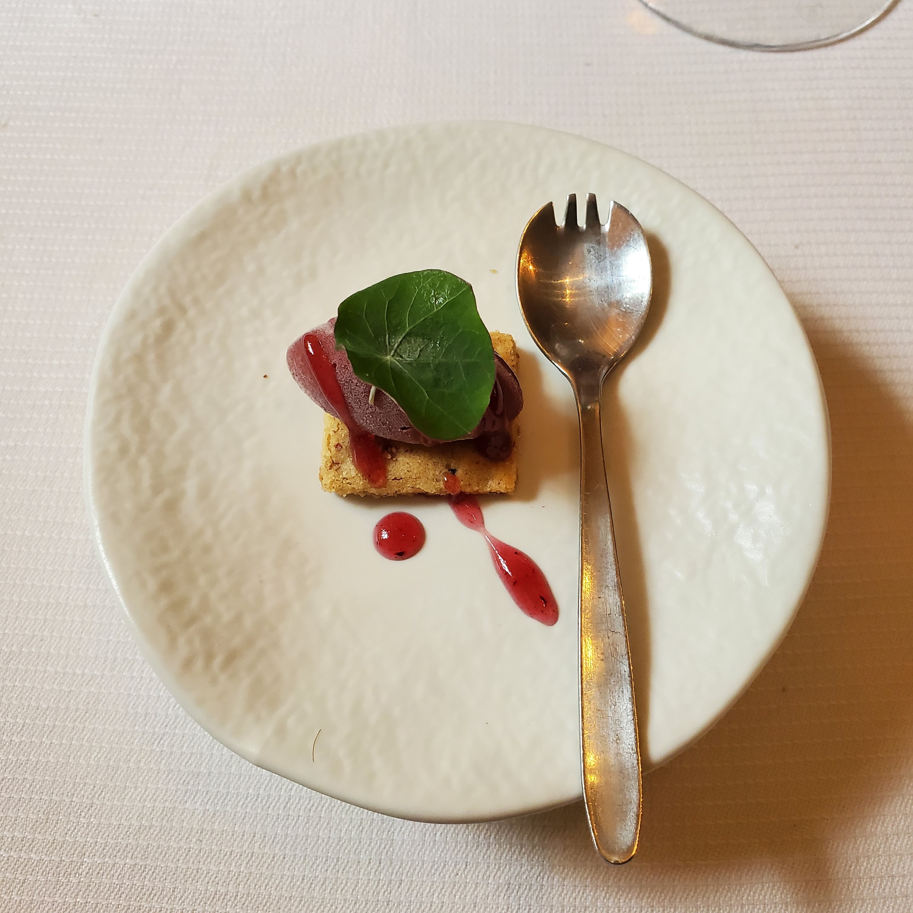 Association de saveurs inattendue mais qui laisse une agréable surprise. Le service impeccable, belle salle, belle présentation, le plaisir est aussi bien pour la vue que pour le goût ! Je recommande vivement. Nous avons fait le voyage à 8 services et les plats proposés par le chef étaient sublimes. Derrière cette petite porte d'entrée, dans une coin en retrait, se cache un vrai paradis culinaire ! Merci chef !