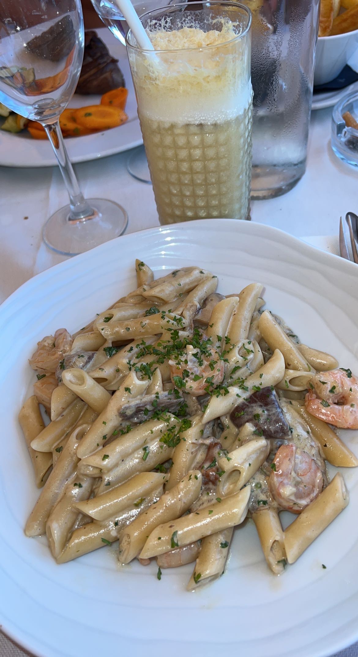 Les pâtes toujours excellentes ! En revanche très déçu du cocktail qui n'avait pas de goût sauf le goût de la crème... Et dessert un fraisier très bon mais mega petite part pour le prix....j'avais eu un meilleur souvenir de ce restaurant.