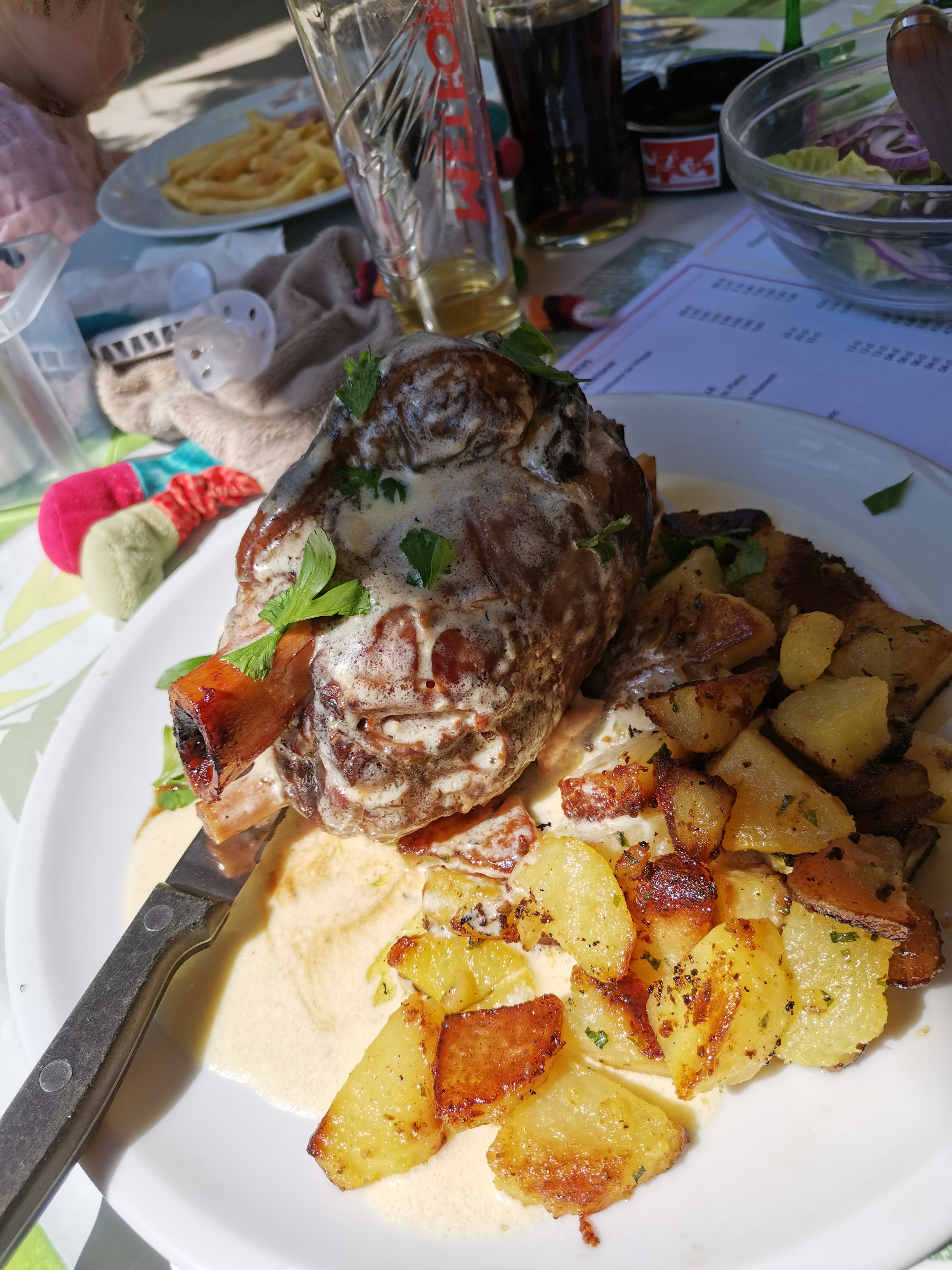 Restaurant très bon et personnel très agréable ! idéal avec des enfants car il y a des jeux dehors(balançoire, toboggan et trampoline) des chaises hautes et table a langer !je recommande !de plus nous avons pu satisfaire les végétariens et les sans porc! parfait