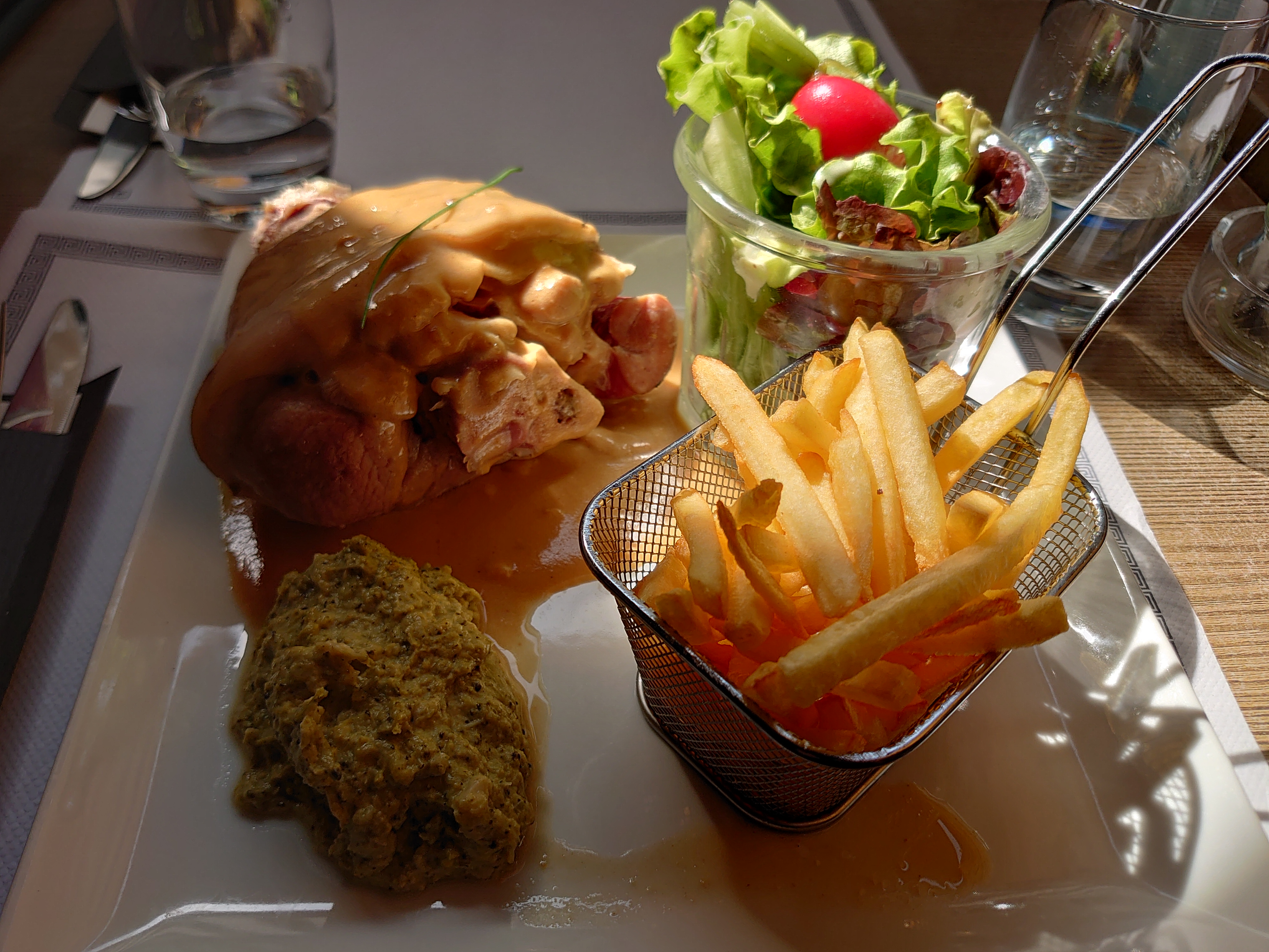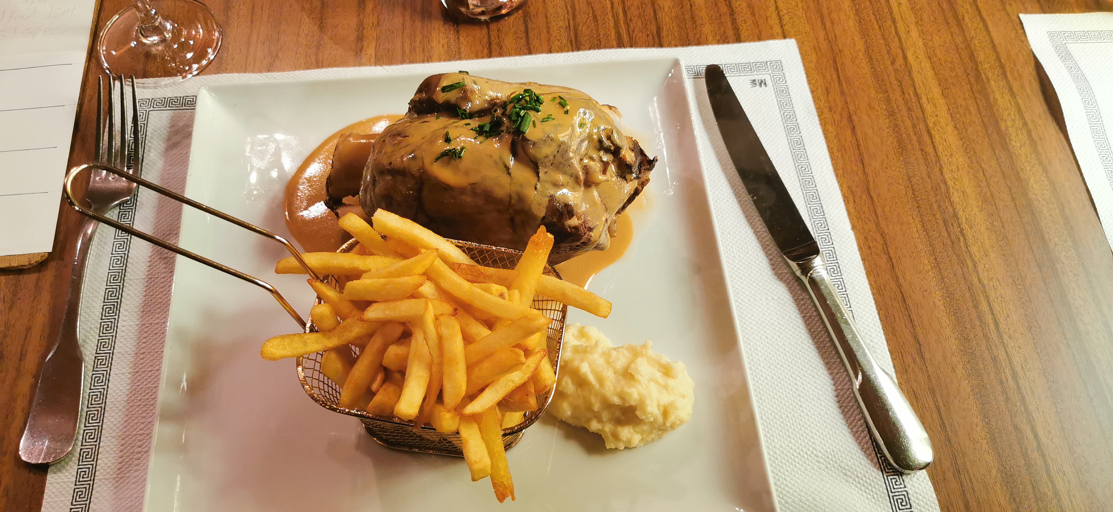 Ressemble plus à une brasserie qu’à un restaurant. Repas pas exceptionnel très bien pour manger vite fait.Manque de faits maison notamment pour les sauces et un petit bémol sur les frites frites trop cuite.