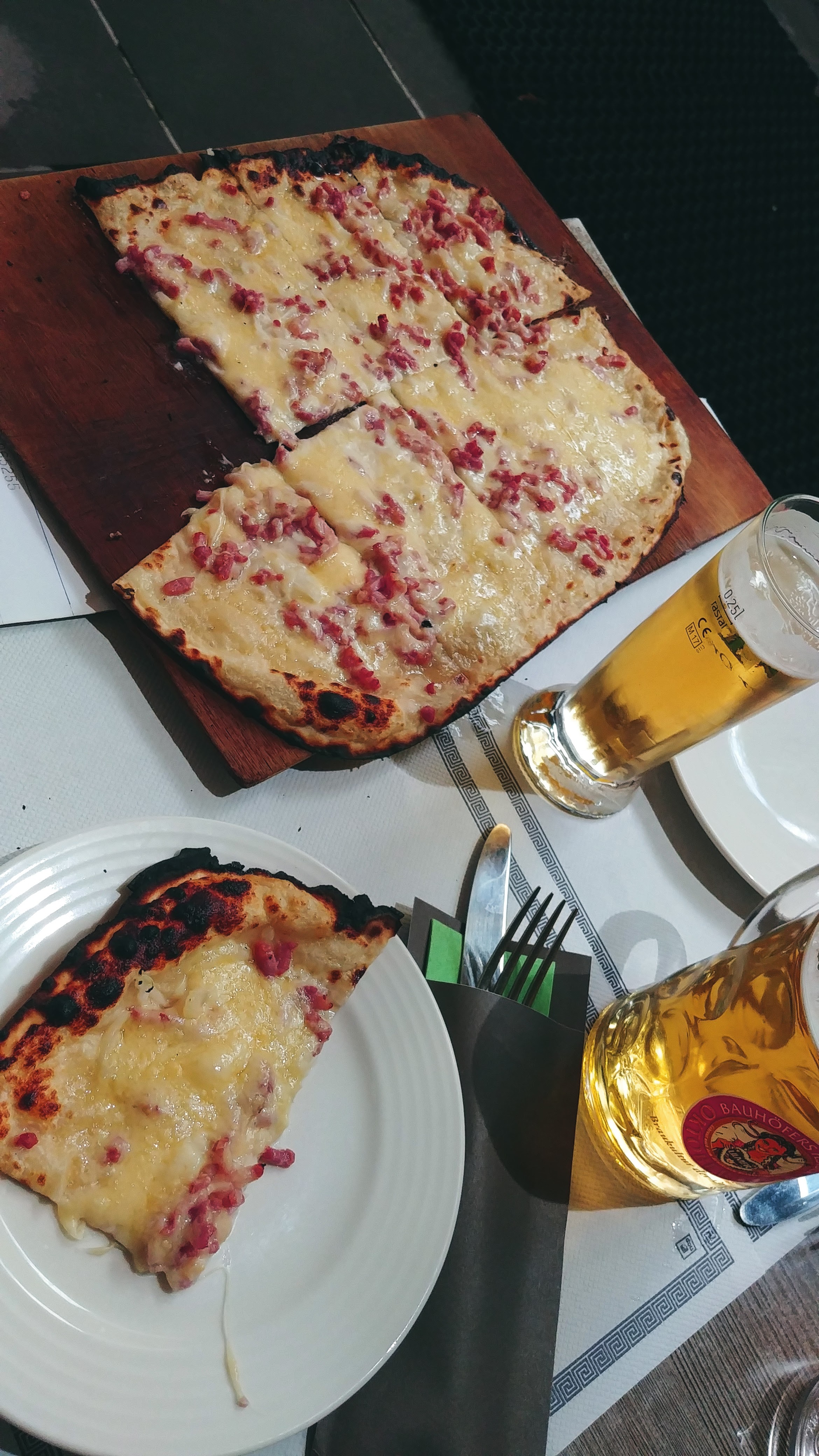Nous avons mangé des tartes flambées pas assez cuites et moins bonnes que dans le passé Dommage !!!