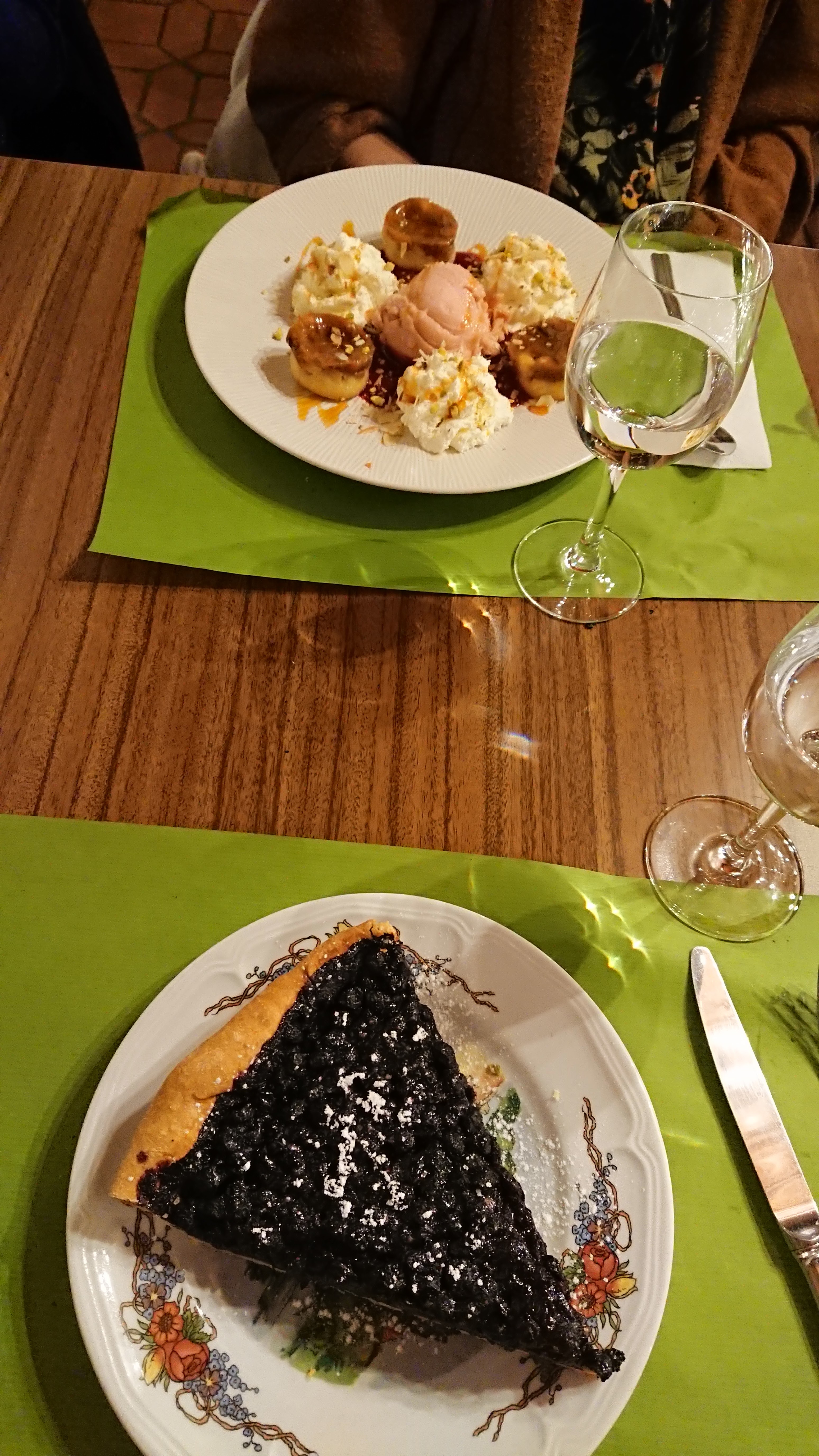 Nous avons dîner un soir de semaine. Les tartes flambées étaient excellentes, tout comme la tarte aux myrtilles. Nous avons passé une bonne soirée